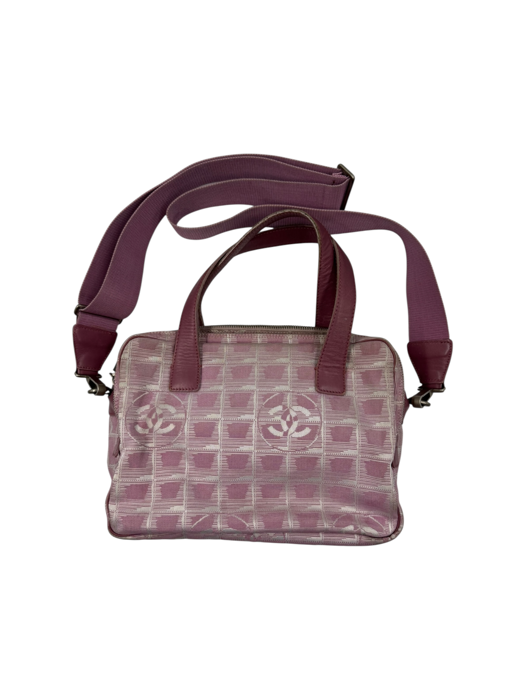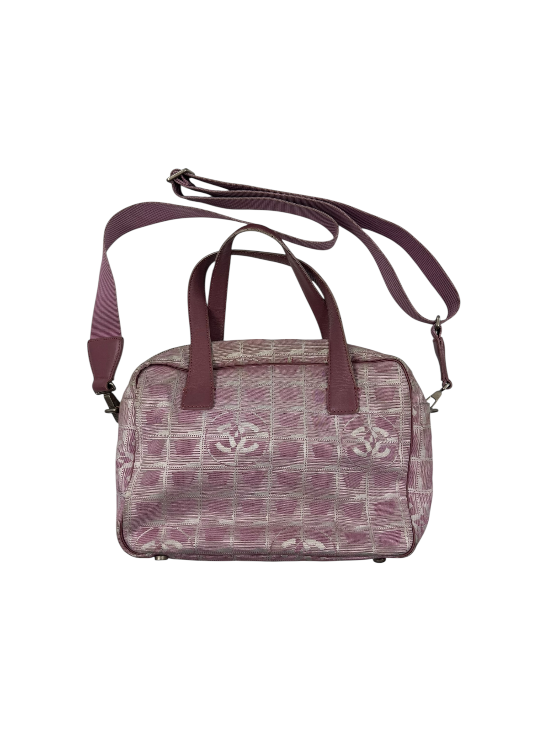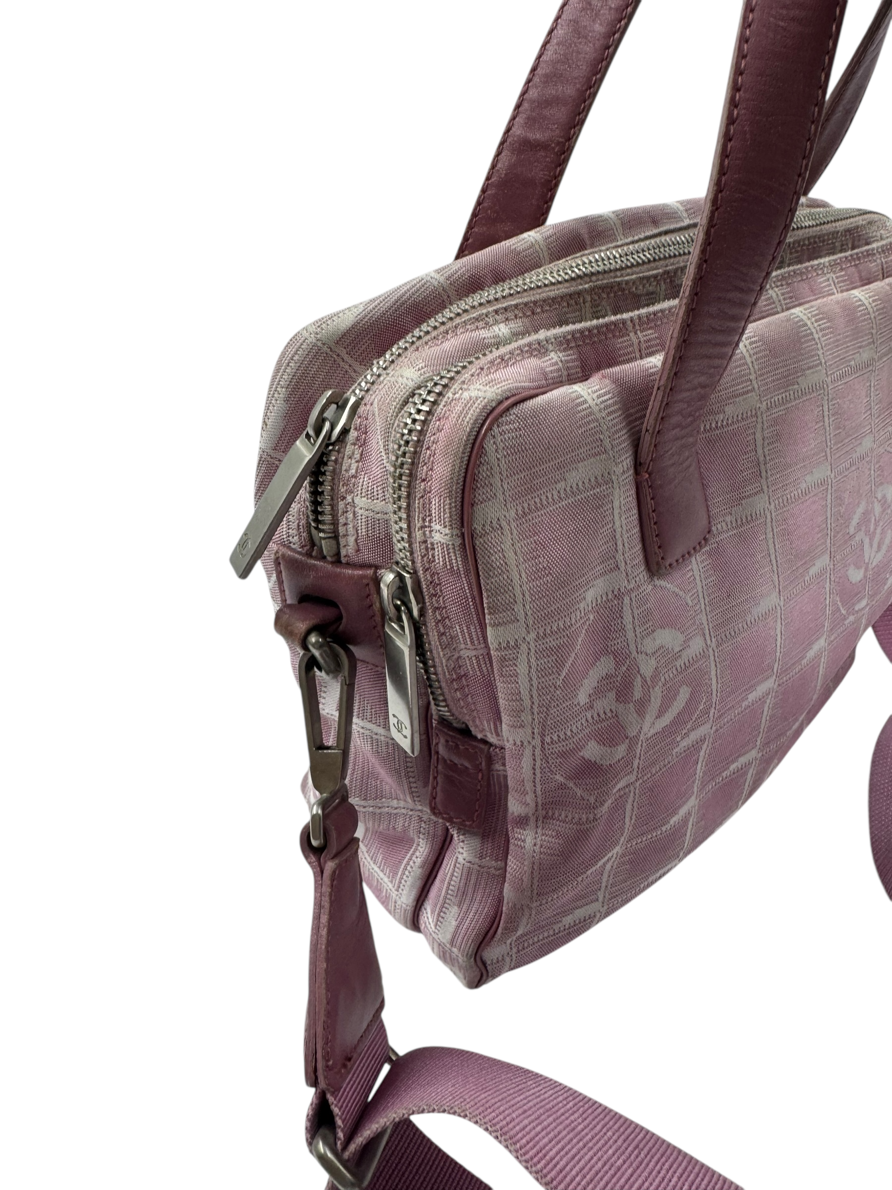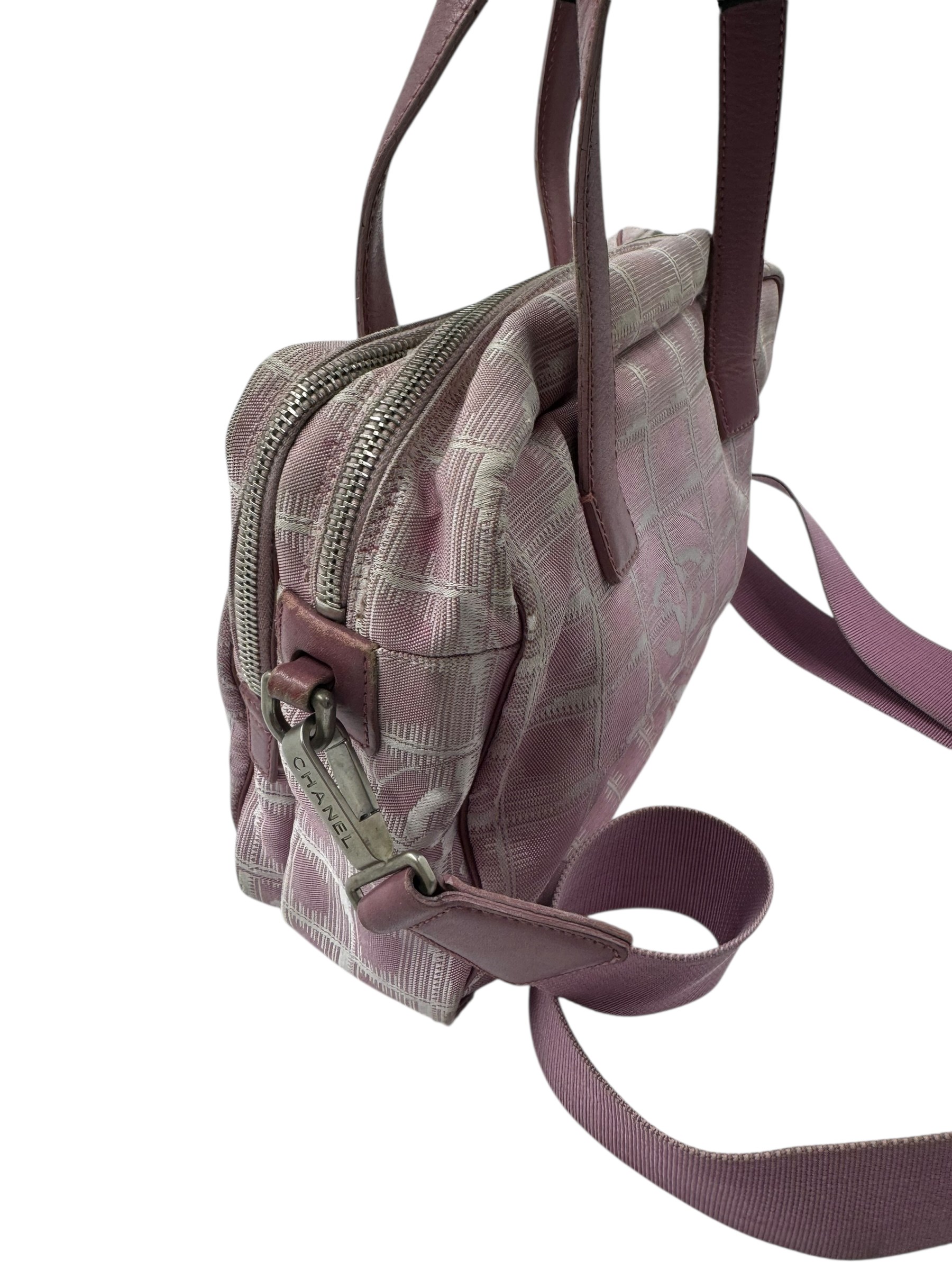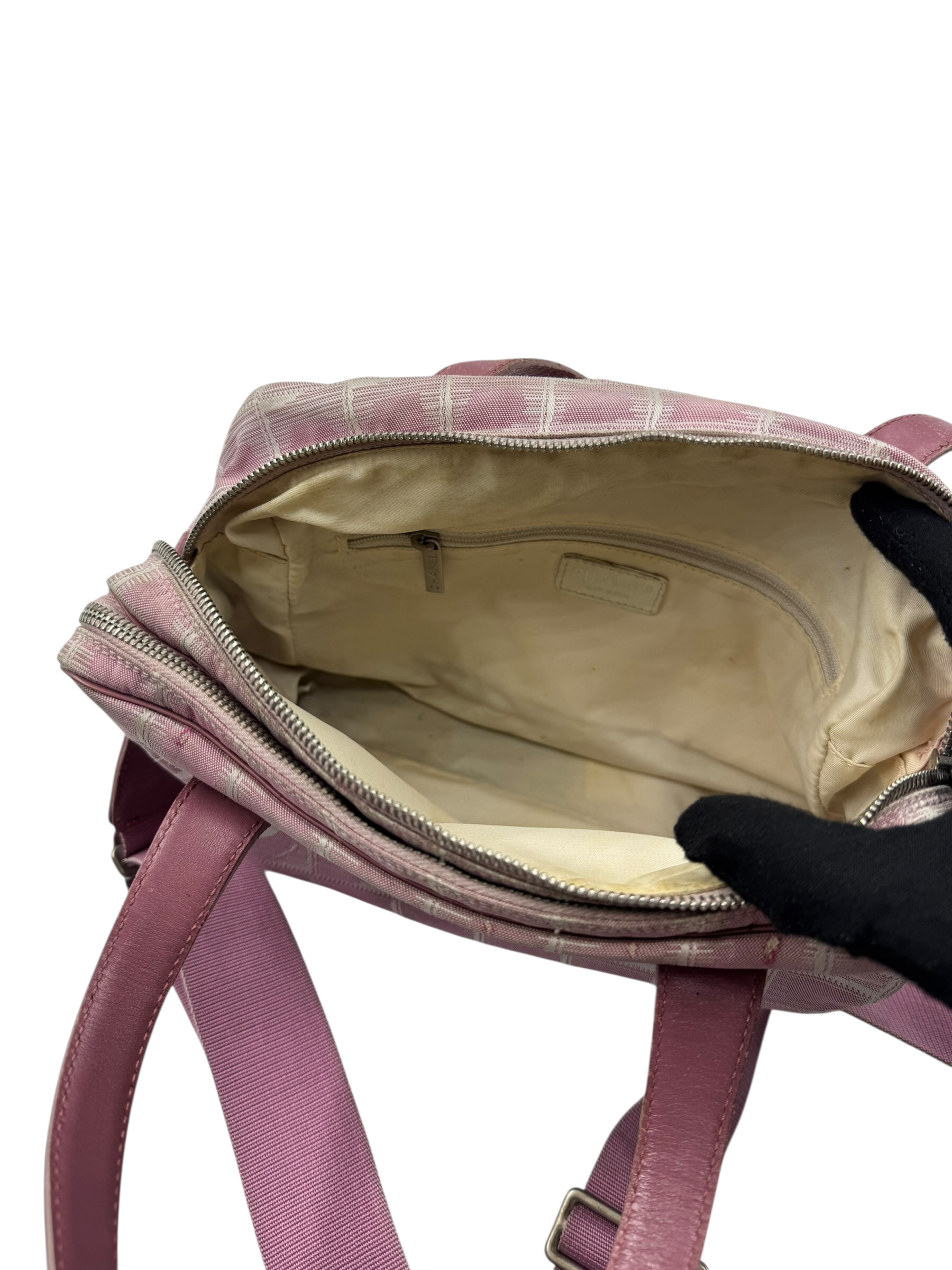 AUTHENTIC CHANEL PINK CANVAS JACQUARD SHOULDER BAG: