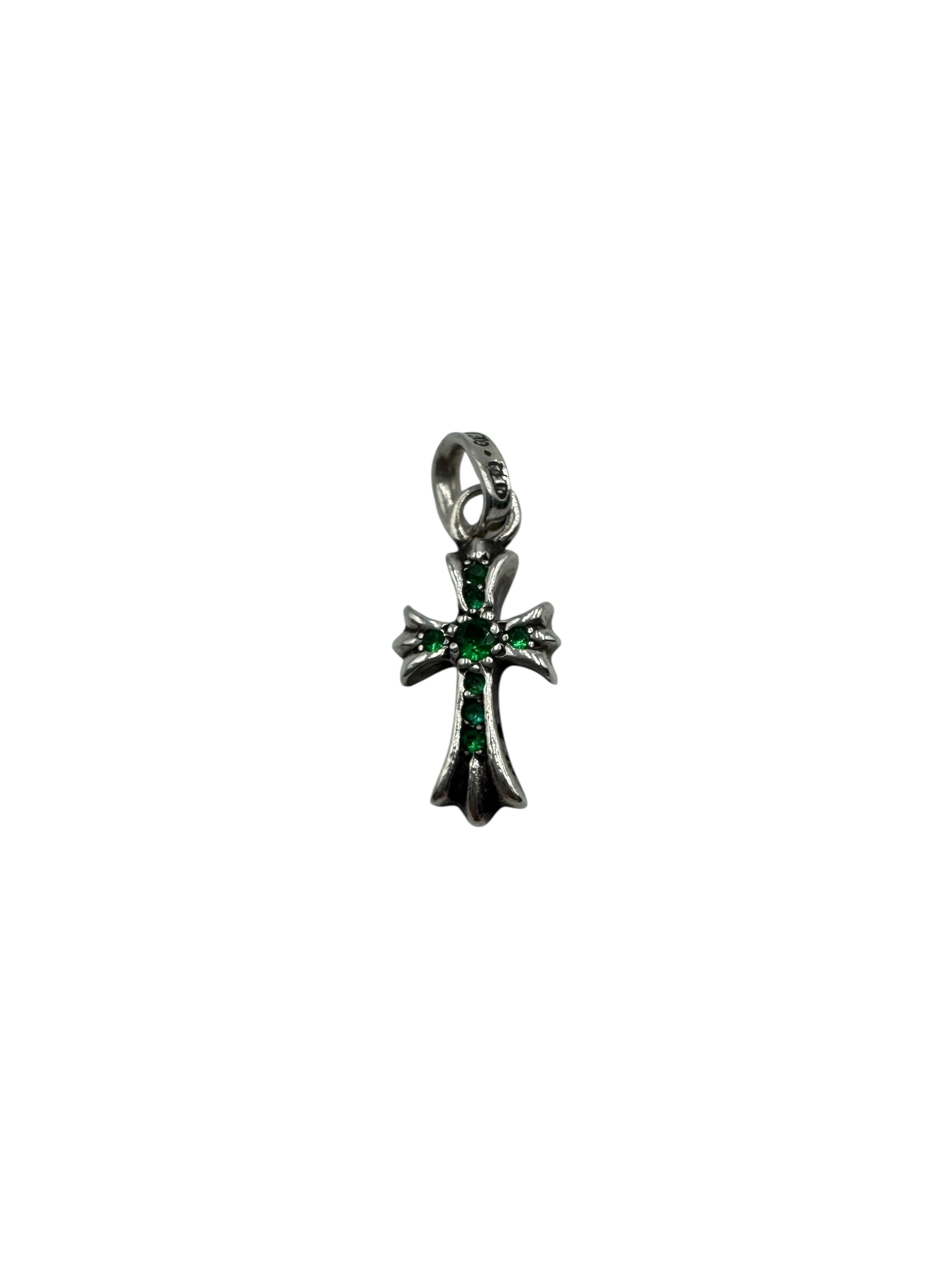 AUTHENTIC CHROME HEARTS BABY FAT CROSS EMERALD PENDANT