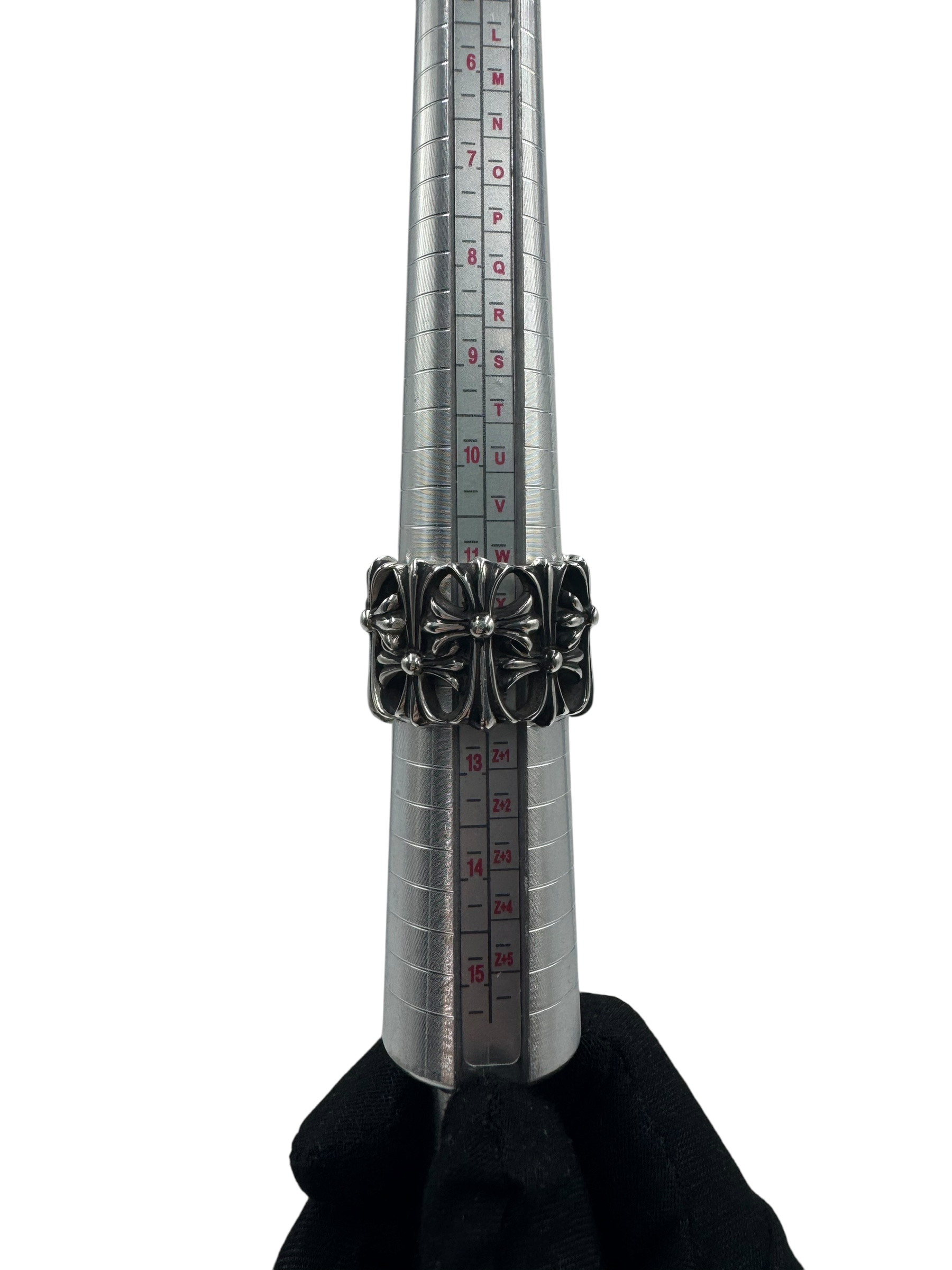 Classic Chrome Hearts Cemetery design in sterling silver, bold cross engravings, structured band (solid, thick, gothic styling)