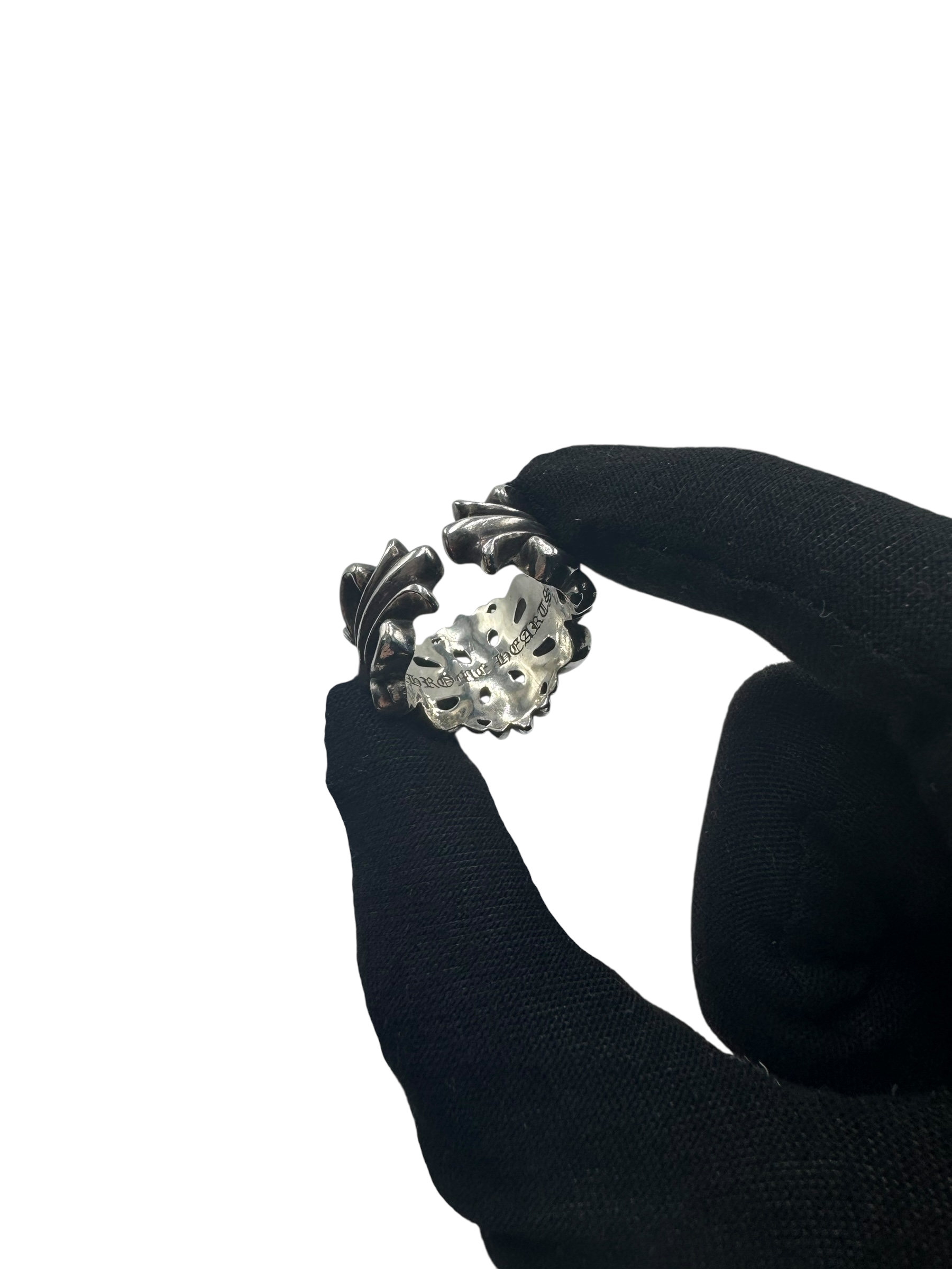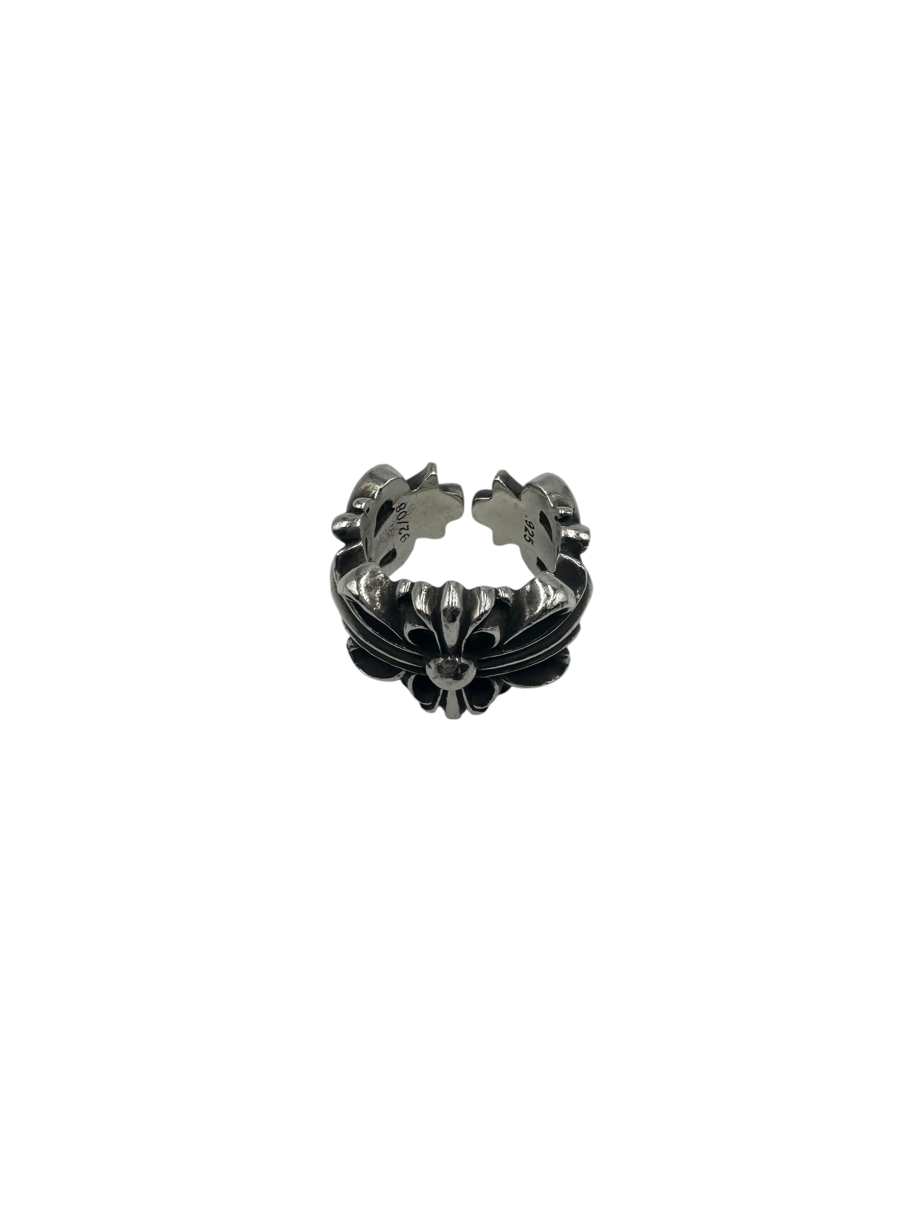 AUTHENTIC CHROME HEARTS DOUBLE FLORAL SILVER RING