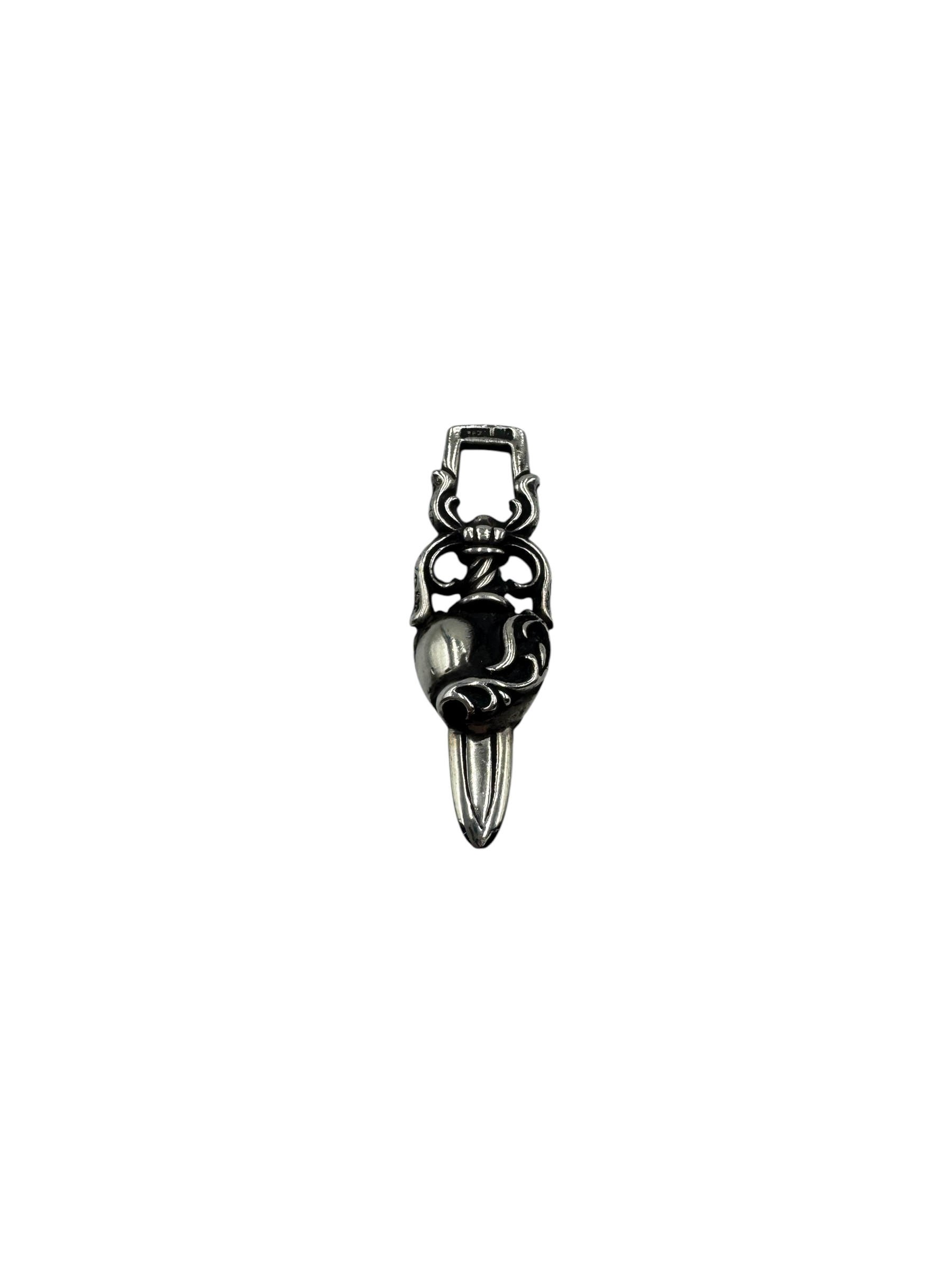 Chrome Hearts Heart Dagger design crafted in sterling silver, originally used as a zipper pull or charm