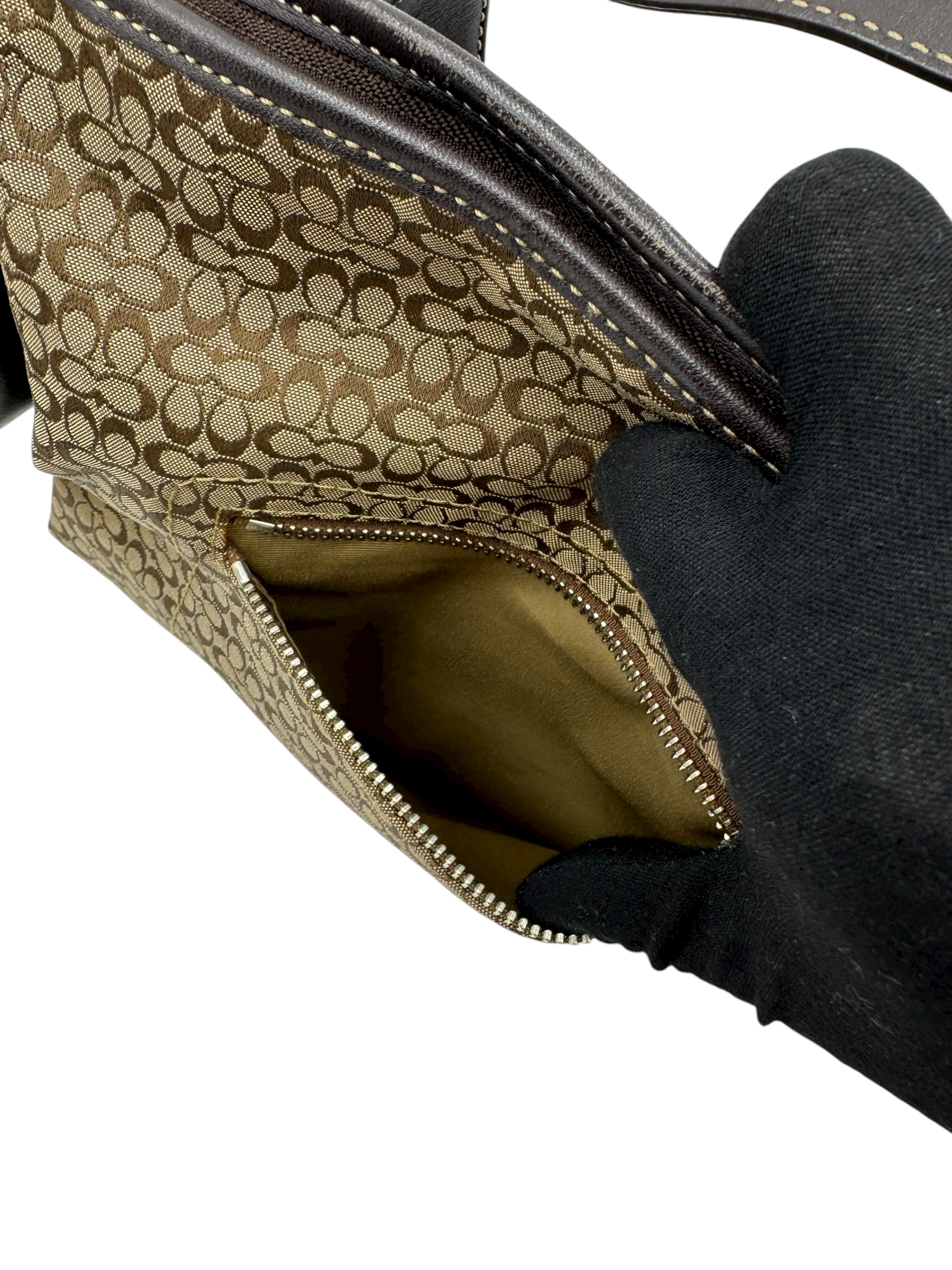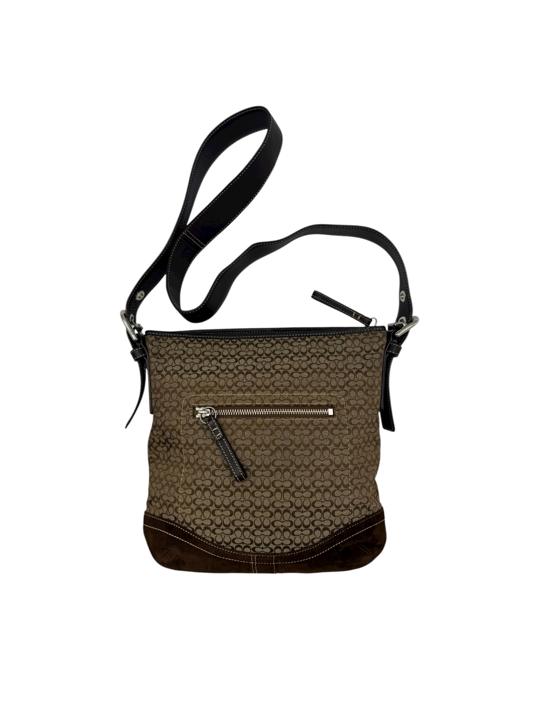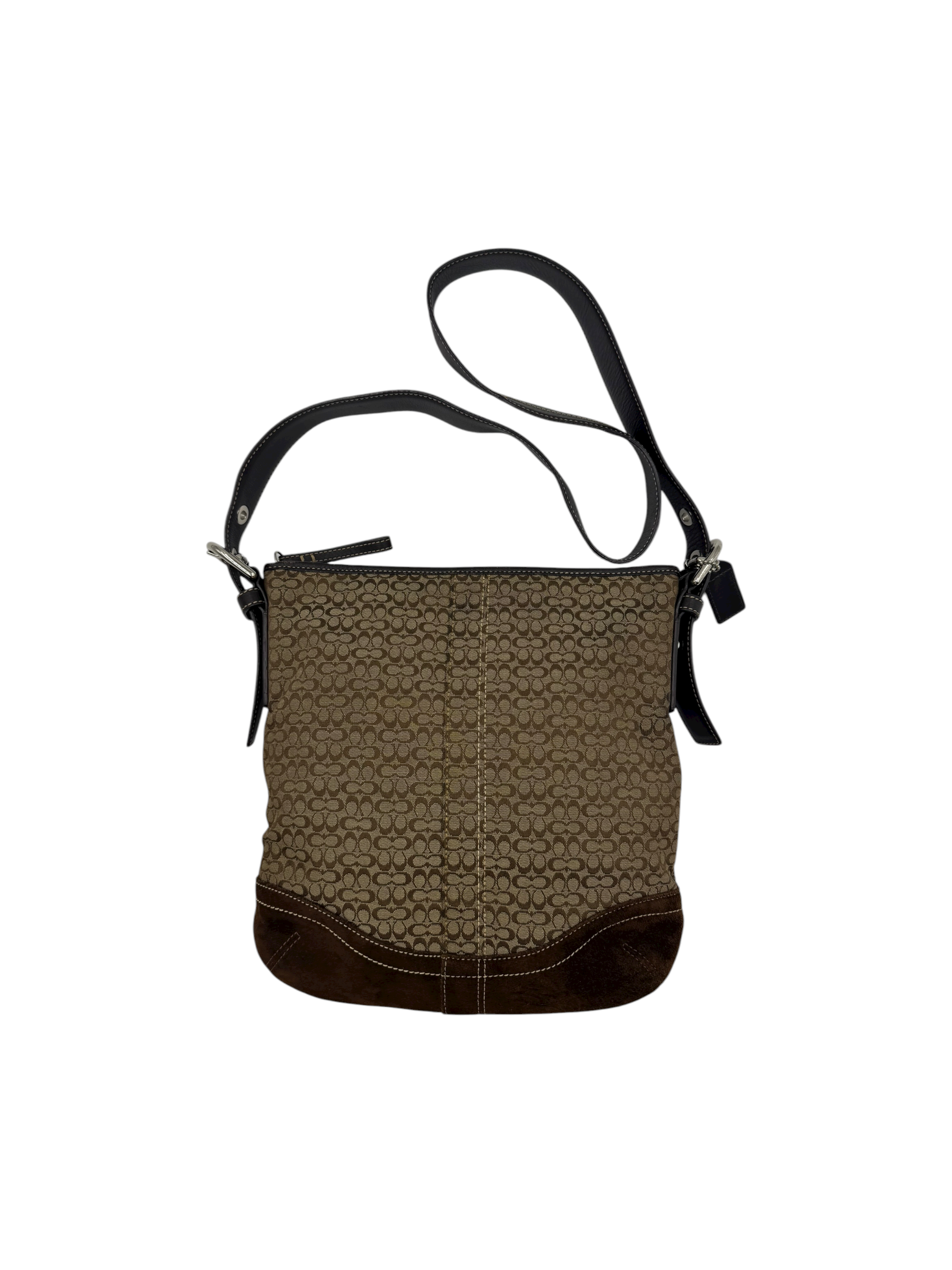 COACH SIGNATURE BROWN SUEDE TRIM CROSSBODY BAG