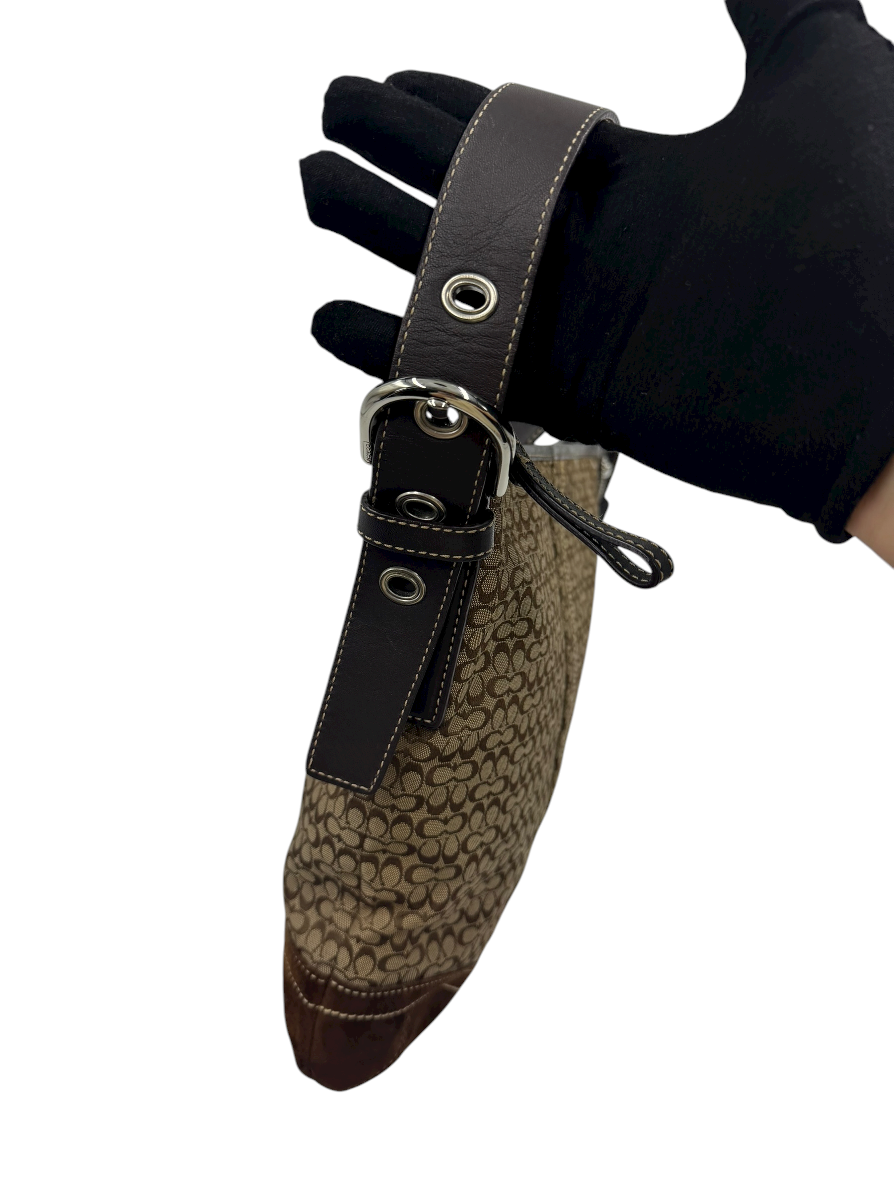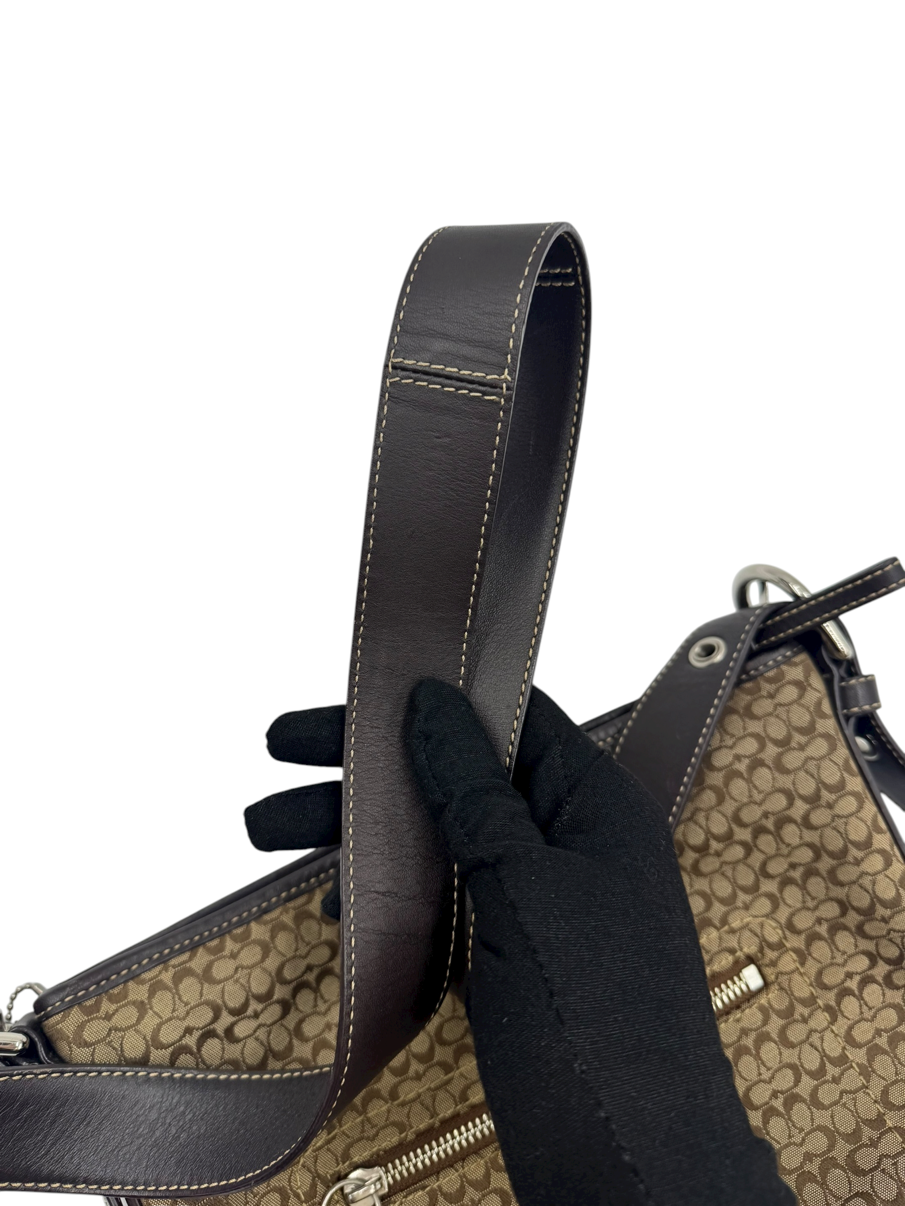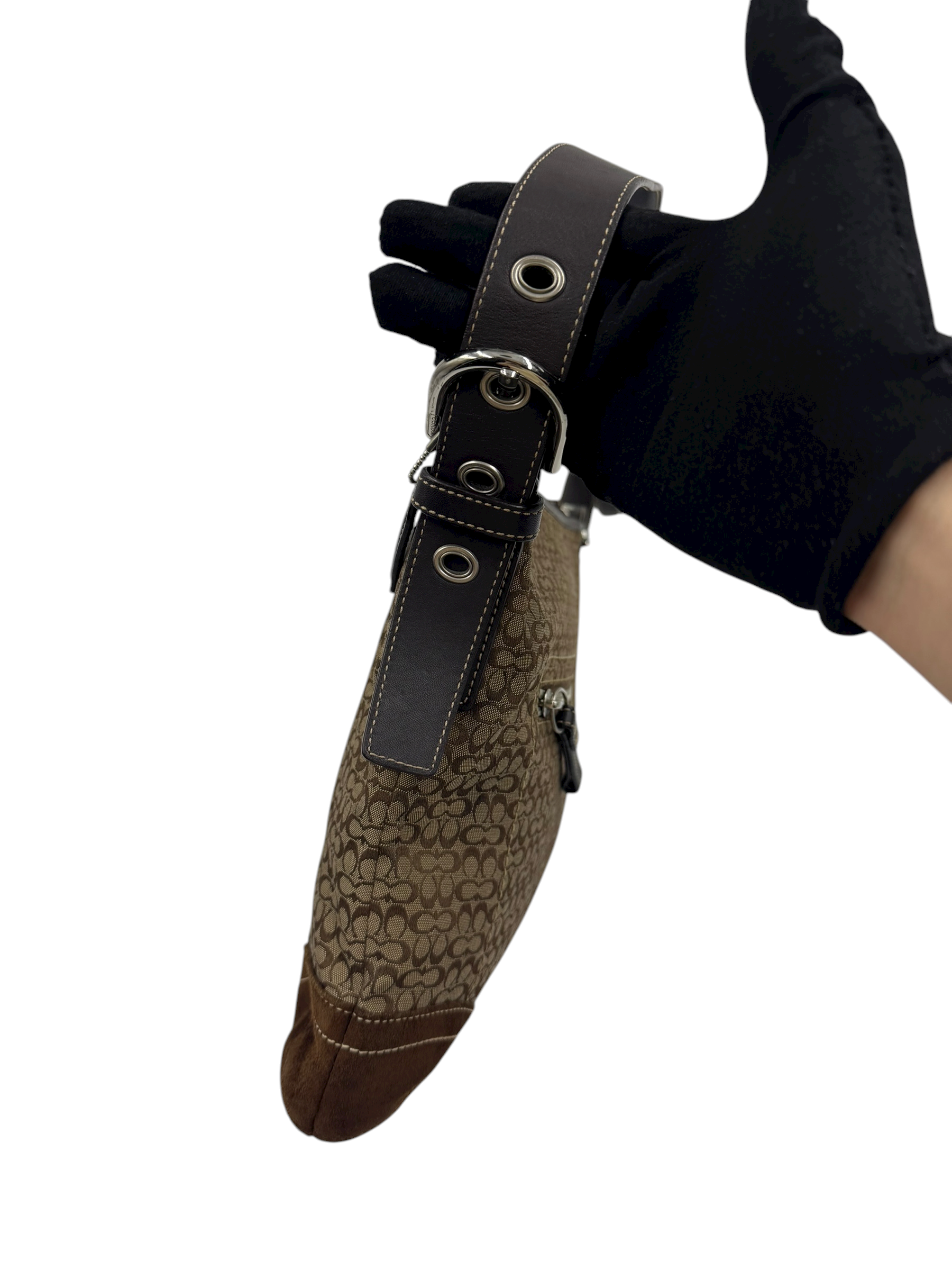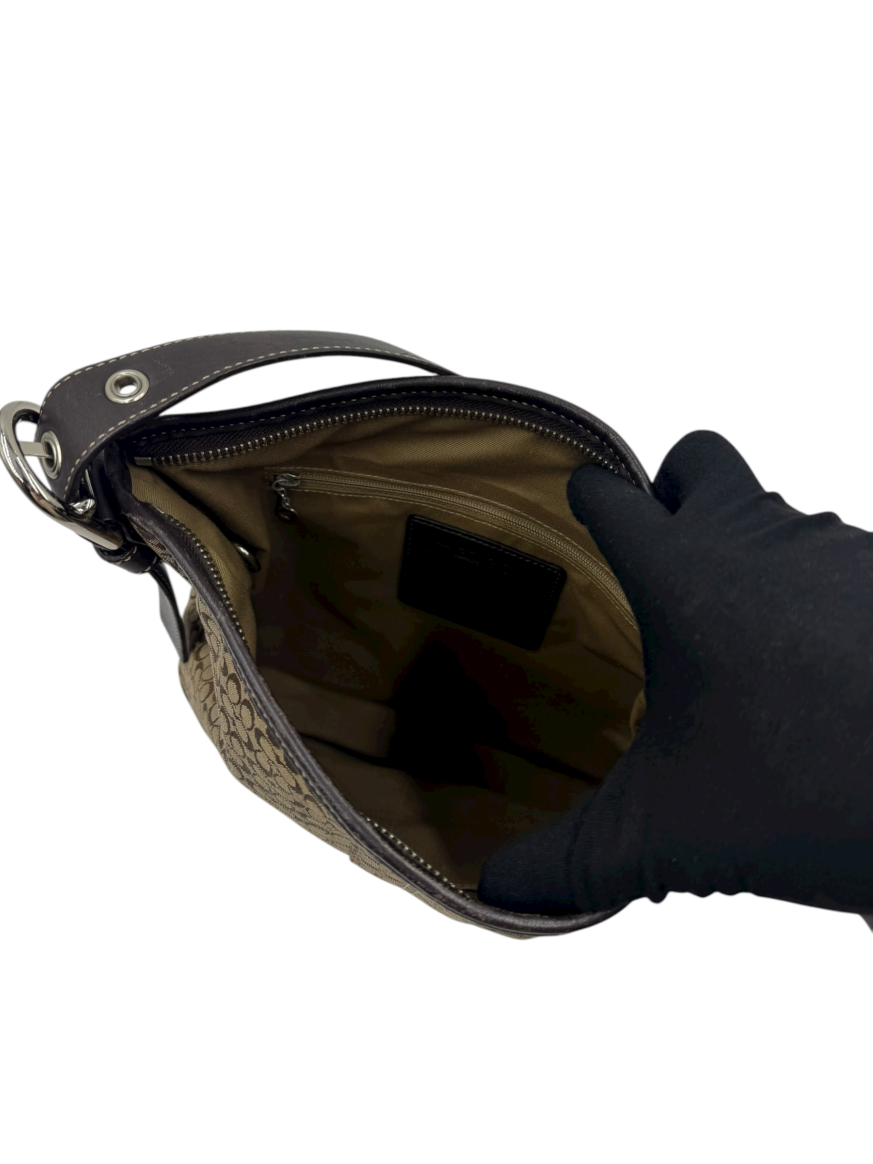 COACH SIGNATURE BROWN SUEDE TRIM CROSSBODY BAG