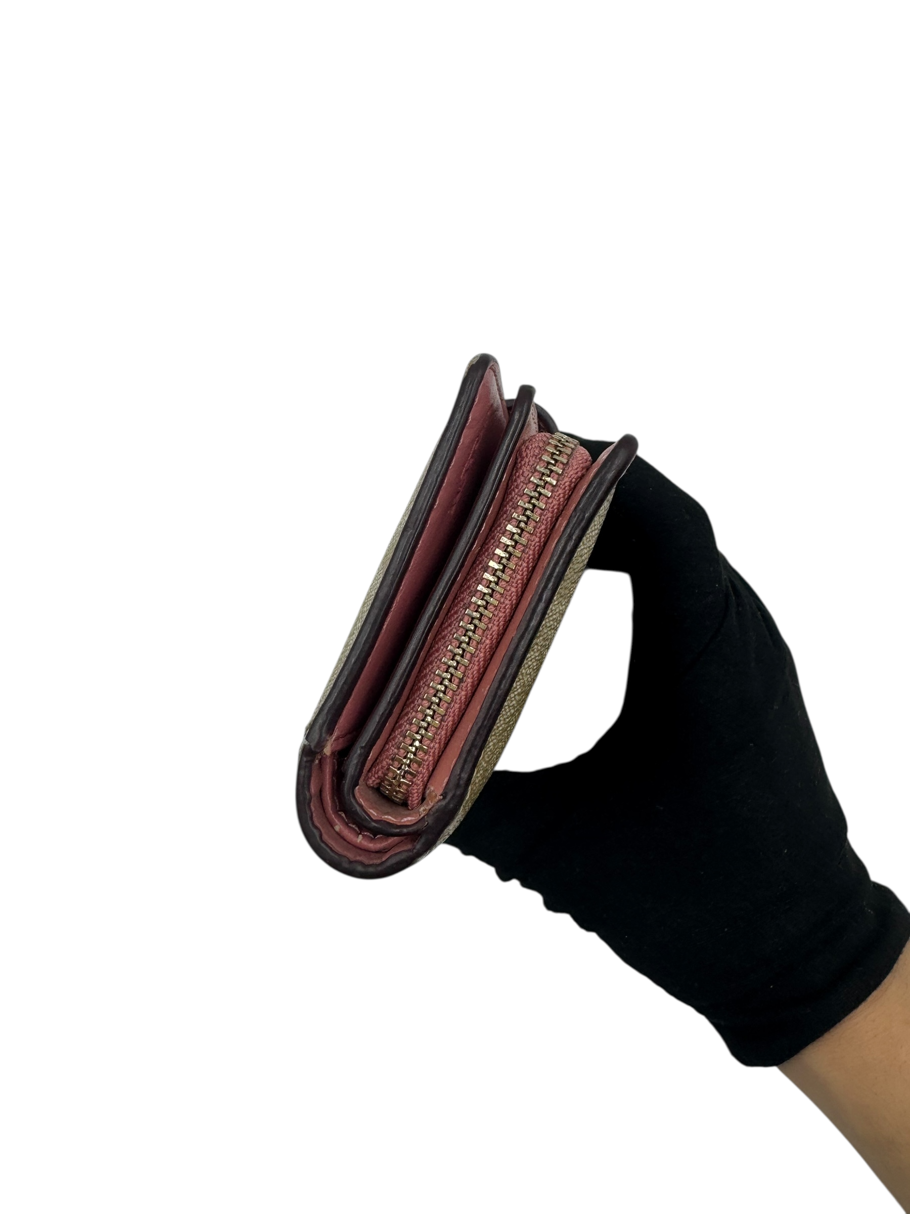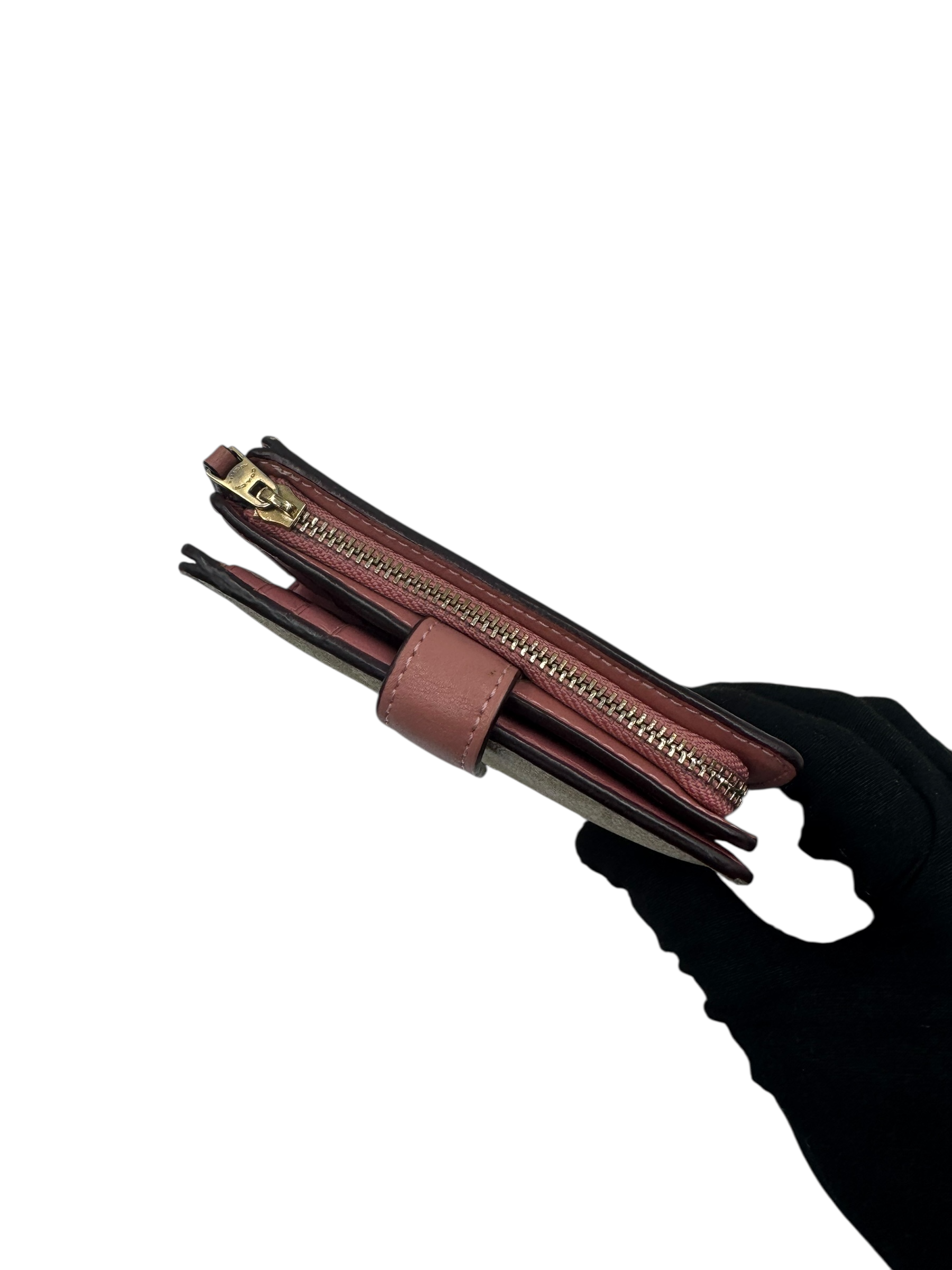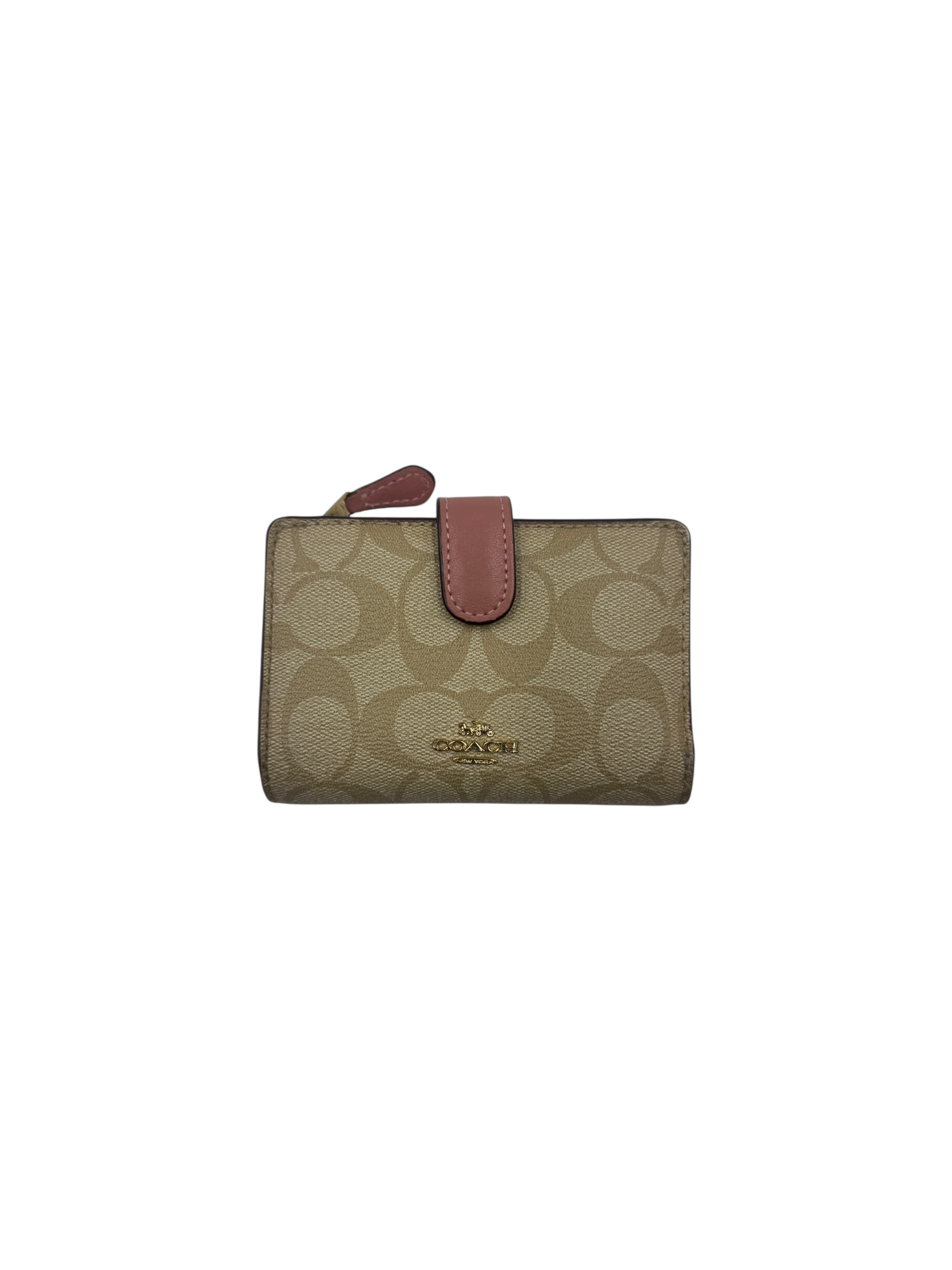 COACH SIGNATURE KHAKI & BLUSH SMALL WALLET