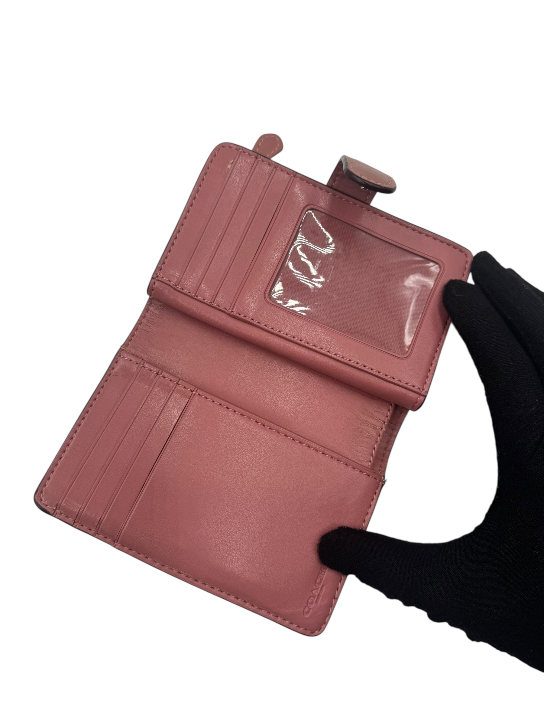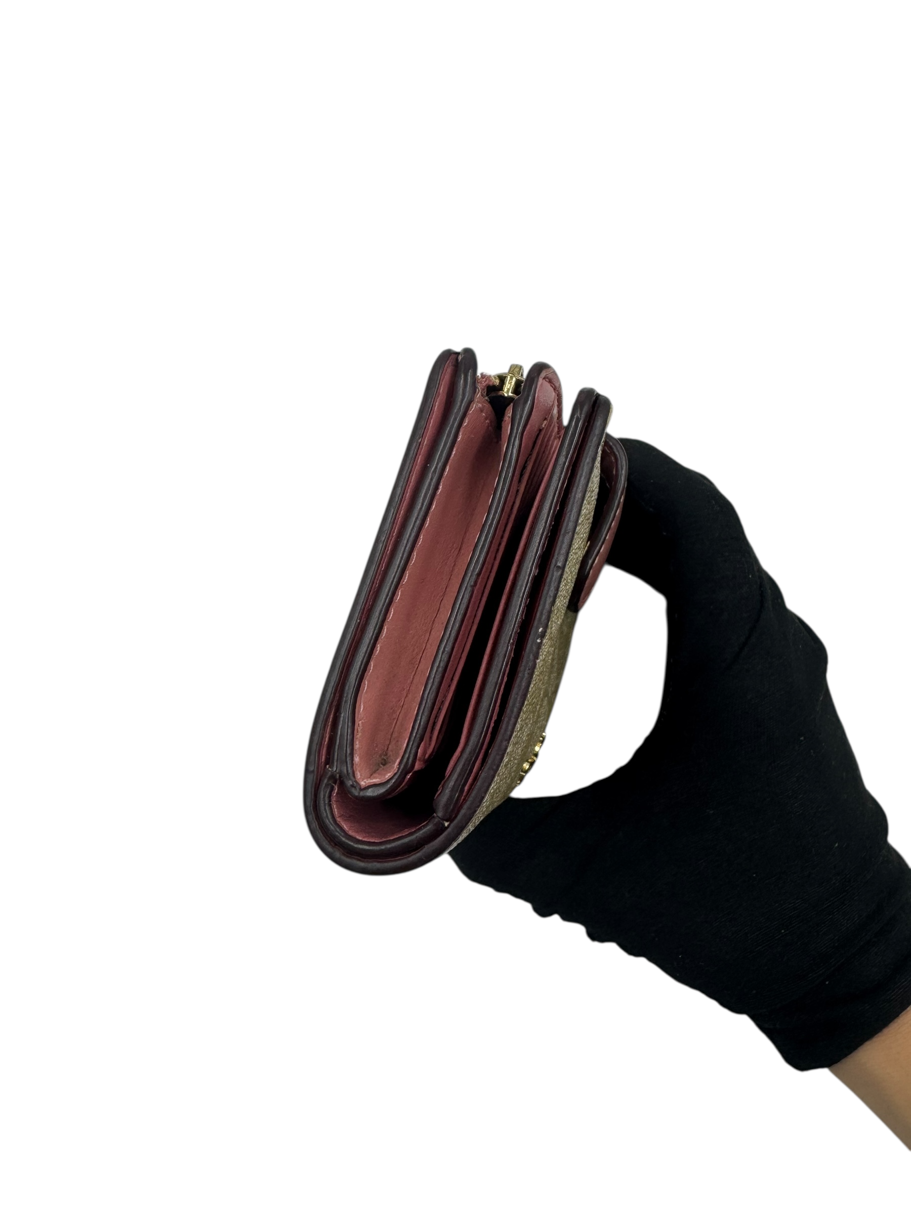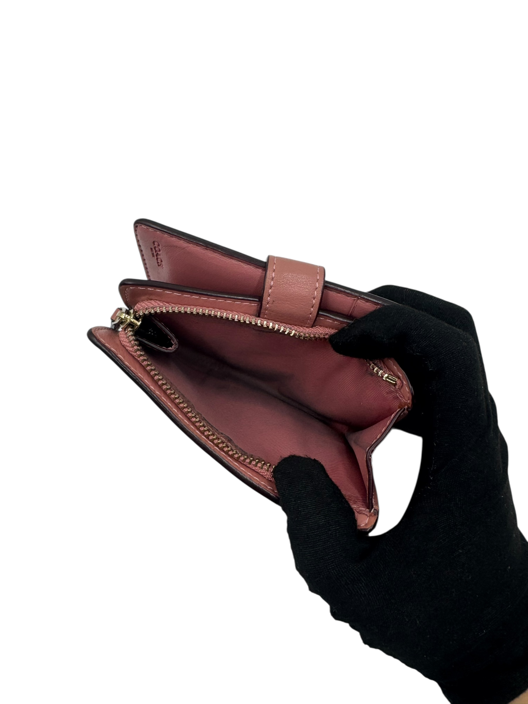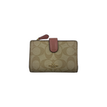 COACH SIGNATURE KHAKI & BLUSH SMALL WALLET