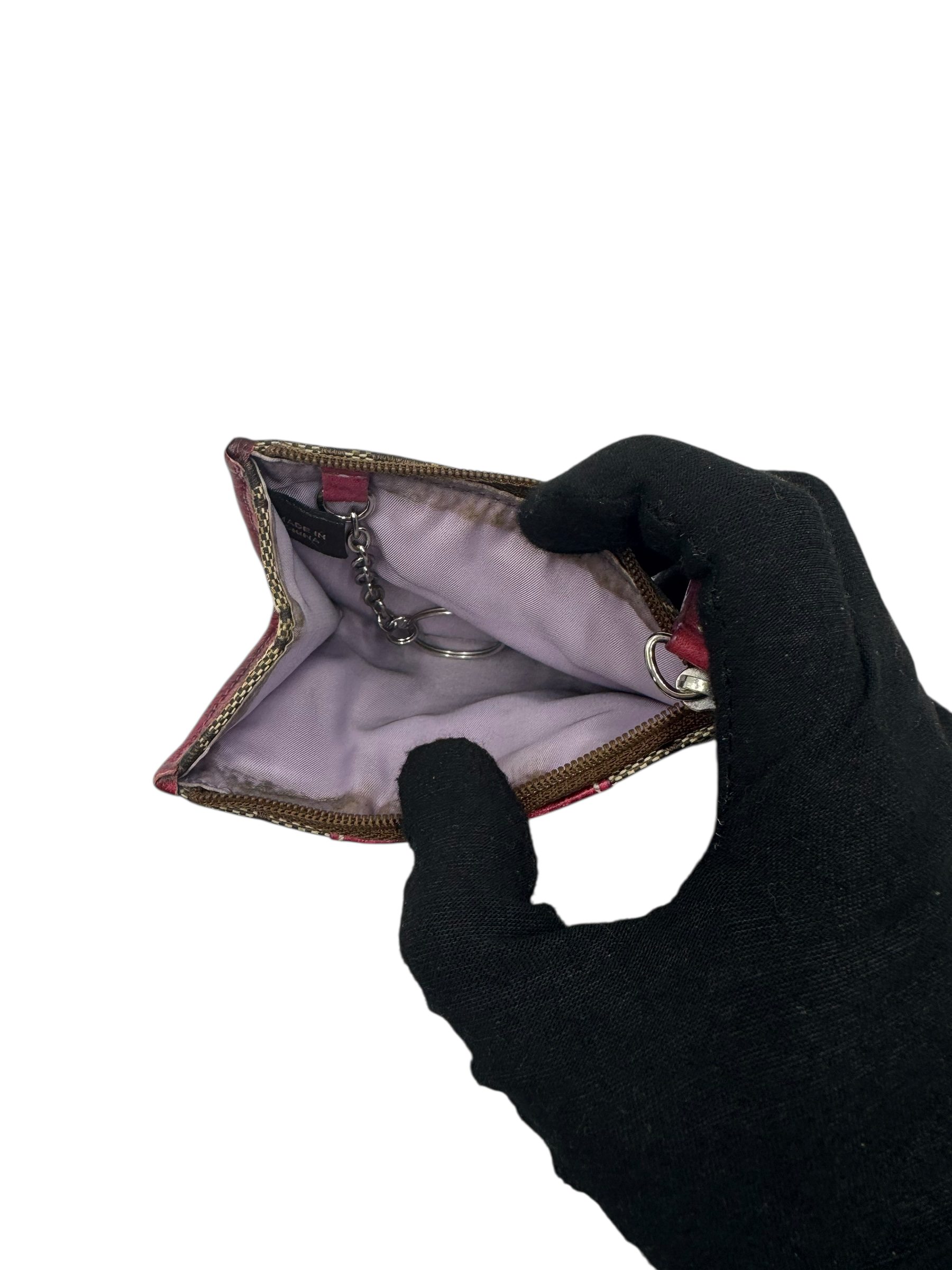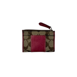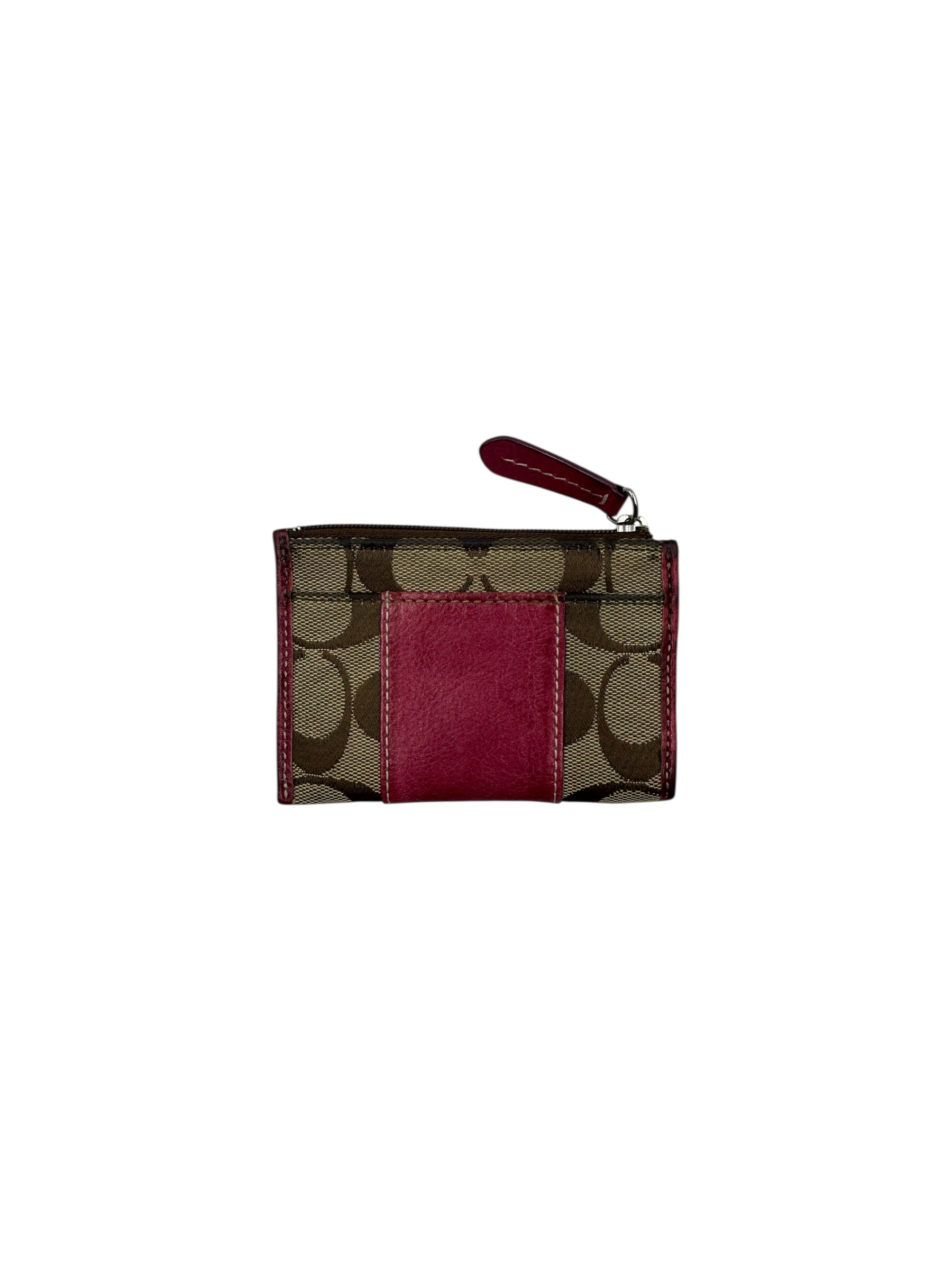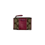 COACH SIGNATURE KHAKI & BURGUNDY CARD CASE