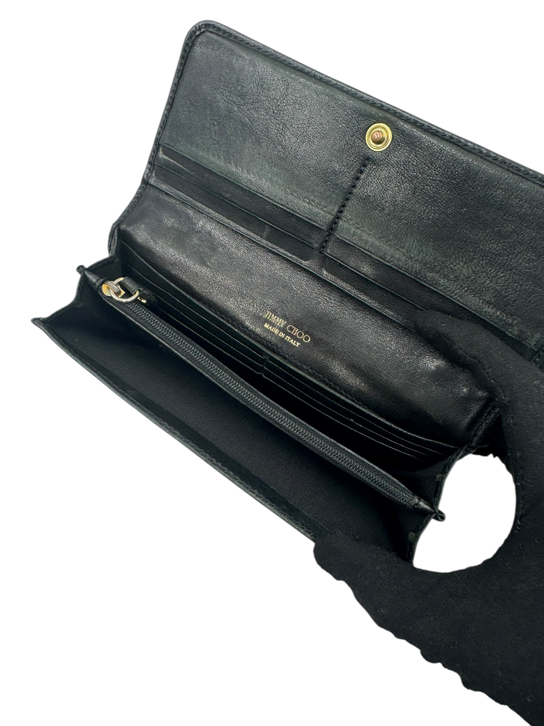 JIMMY CHOO BLACK STAR-STUDDED LEATHER WALLET