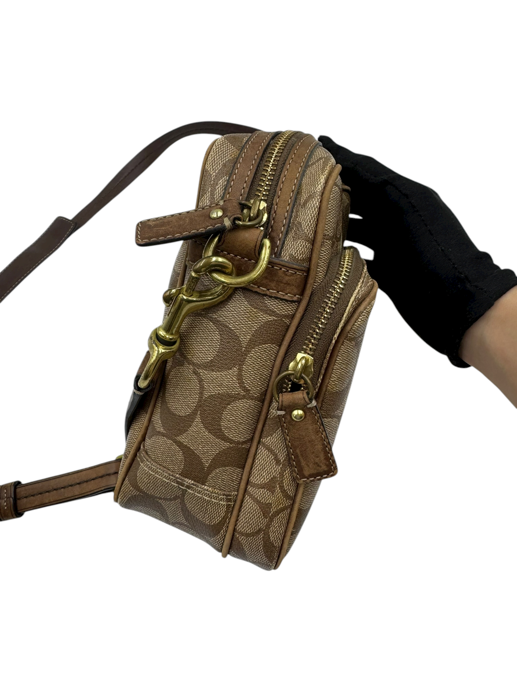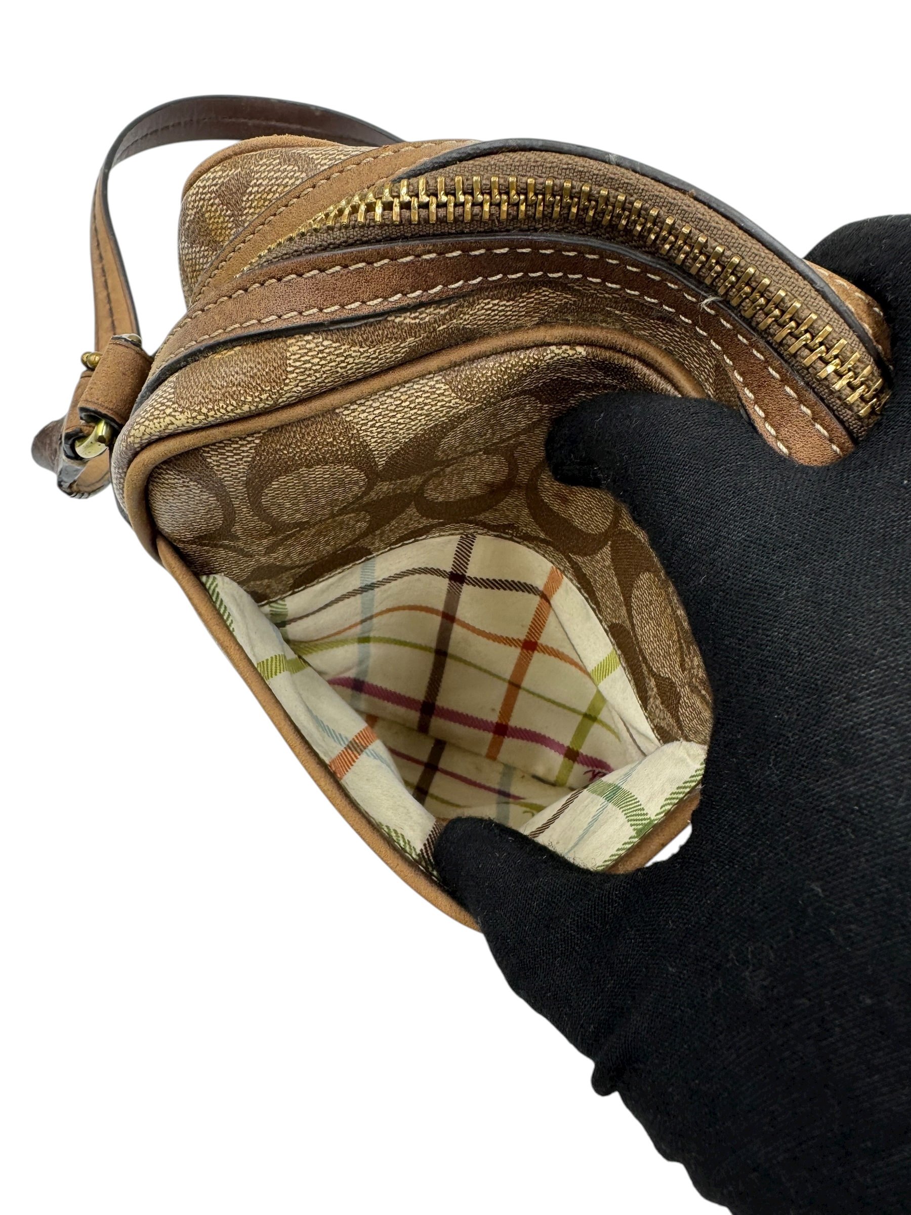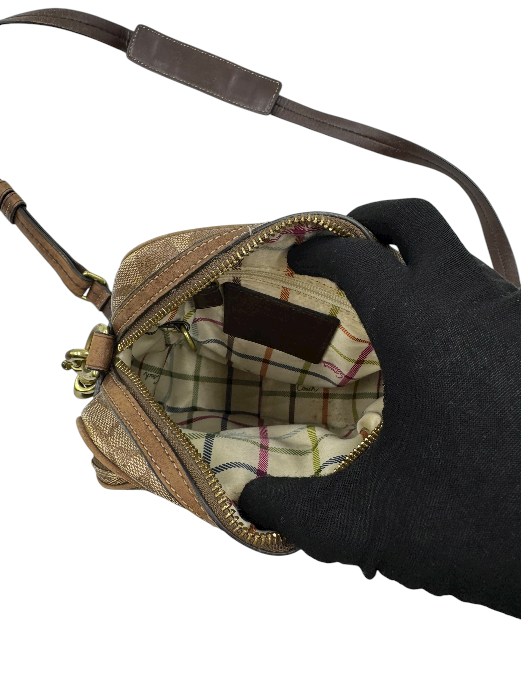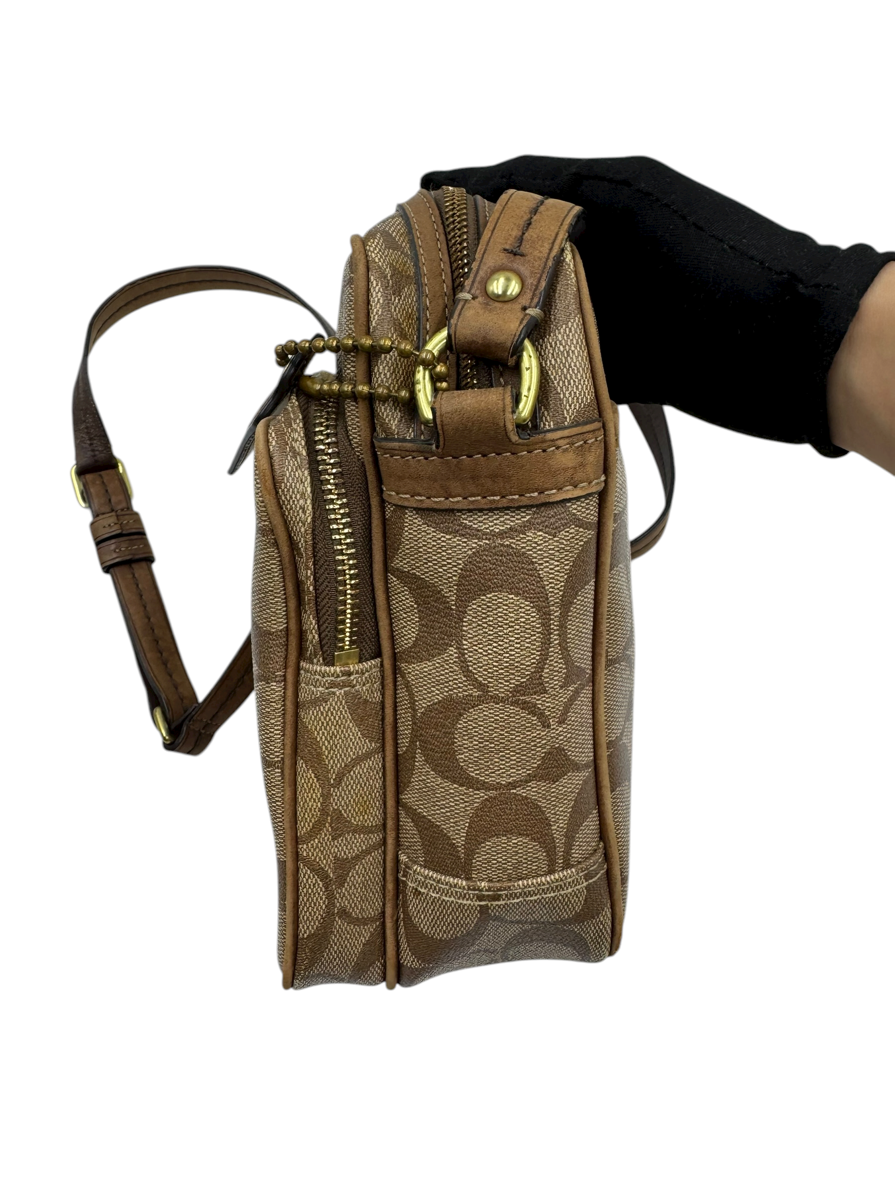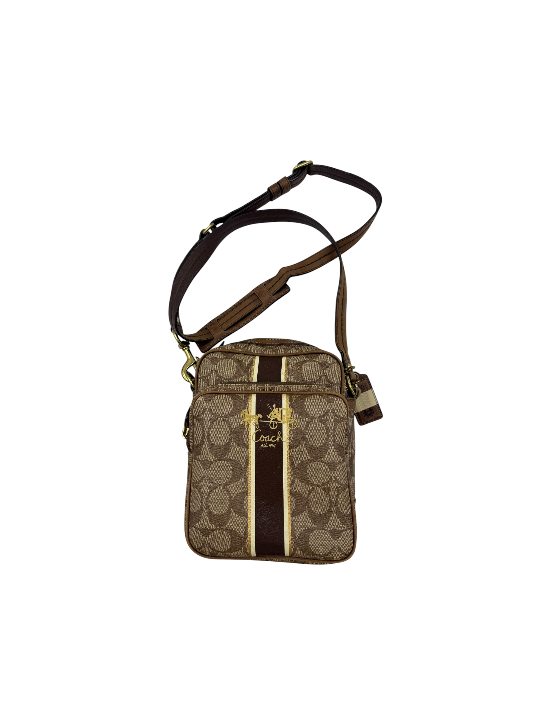 COACH SIGNATURE STRIPE BROWN CROSSBODY BAG