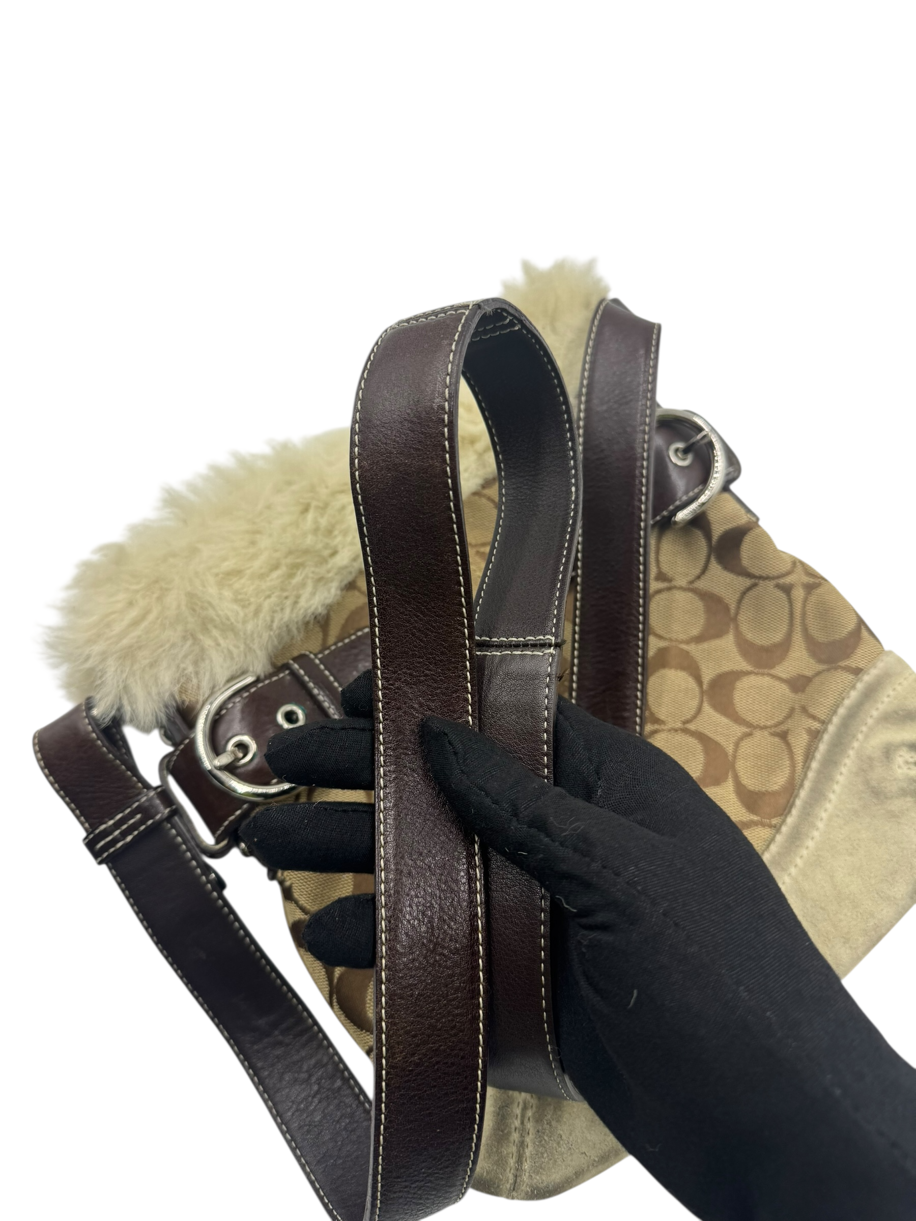 COACH FUR SIGNATURE CANVAS SHOULDER BAG