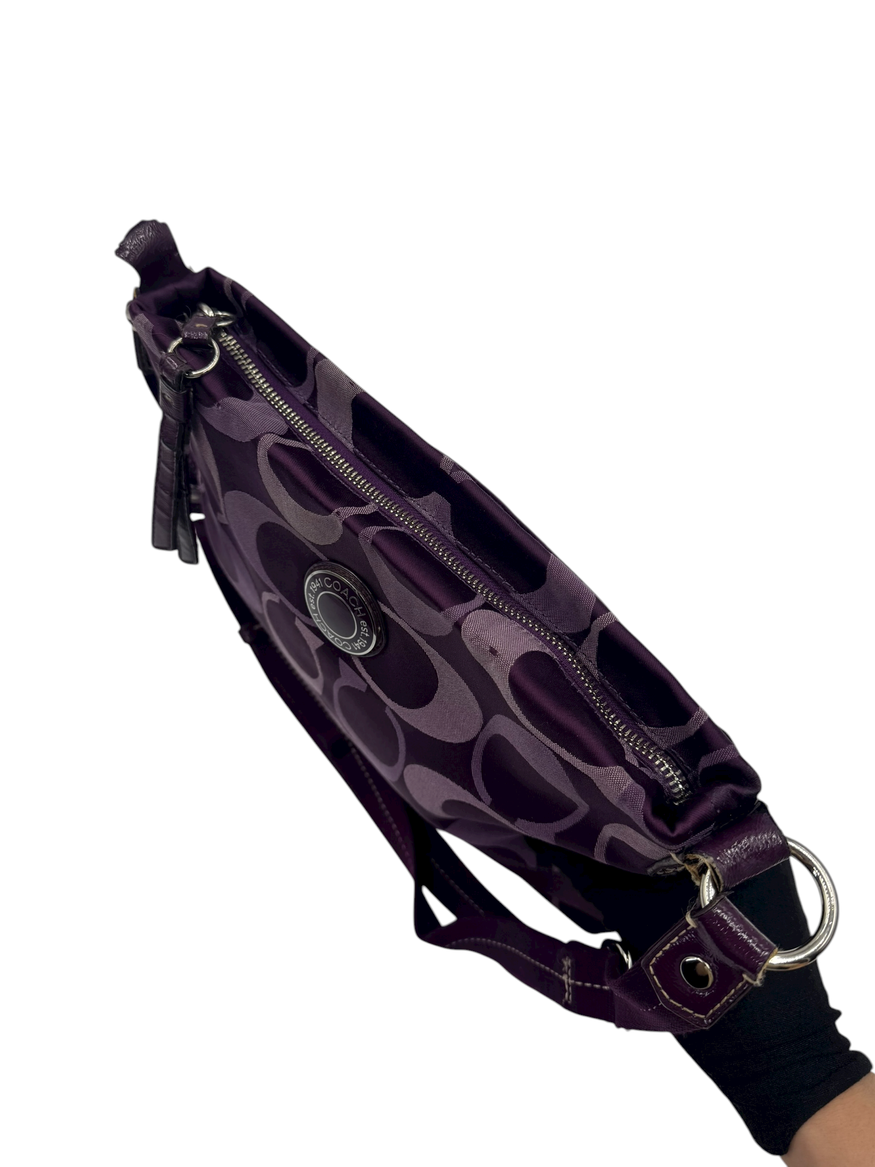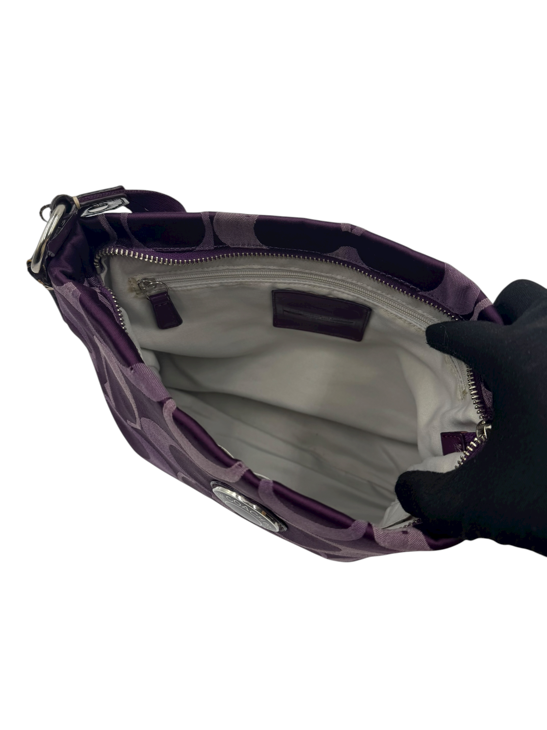 COACH SIGNATURE STRIPE PURPLE CROSSBODY BAG