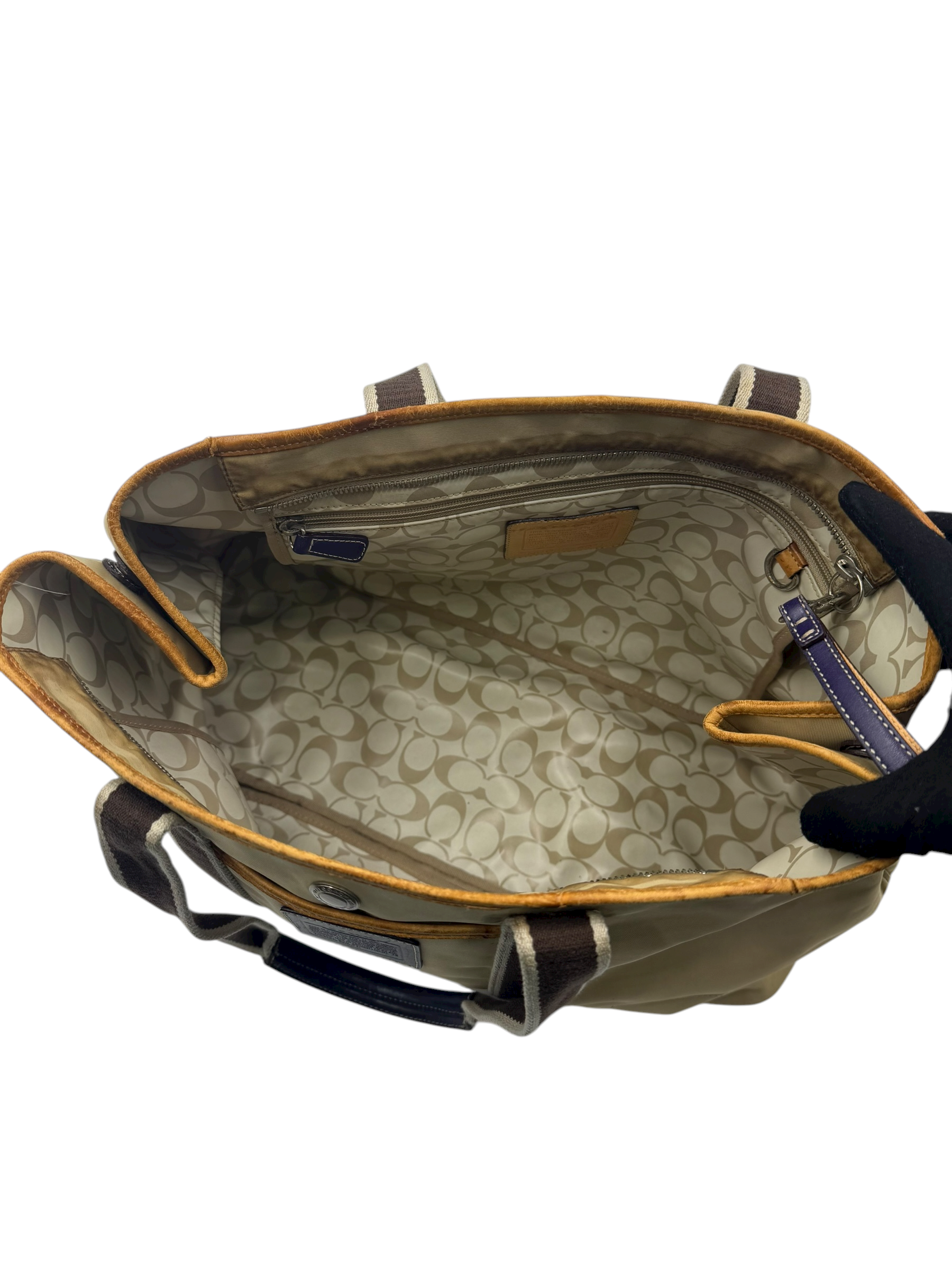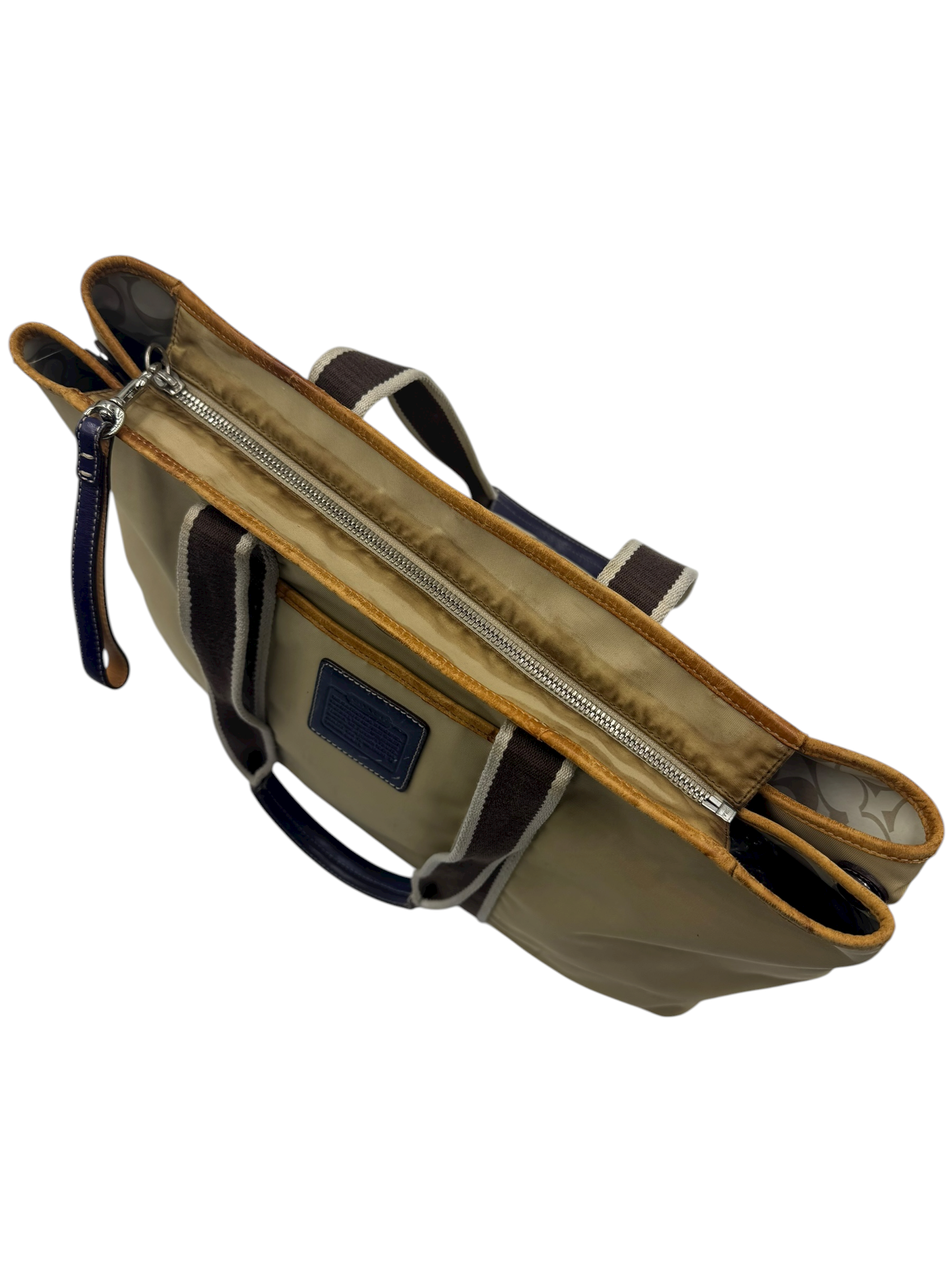 COACH KHAKI STRIPE NYLON TOTE BAG