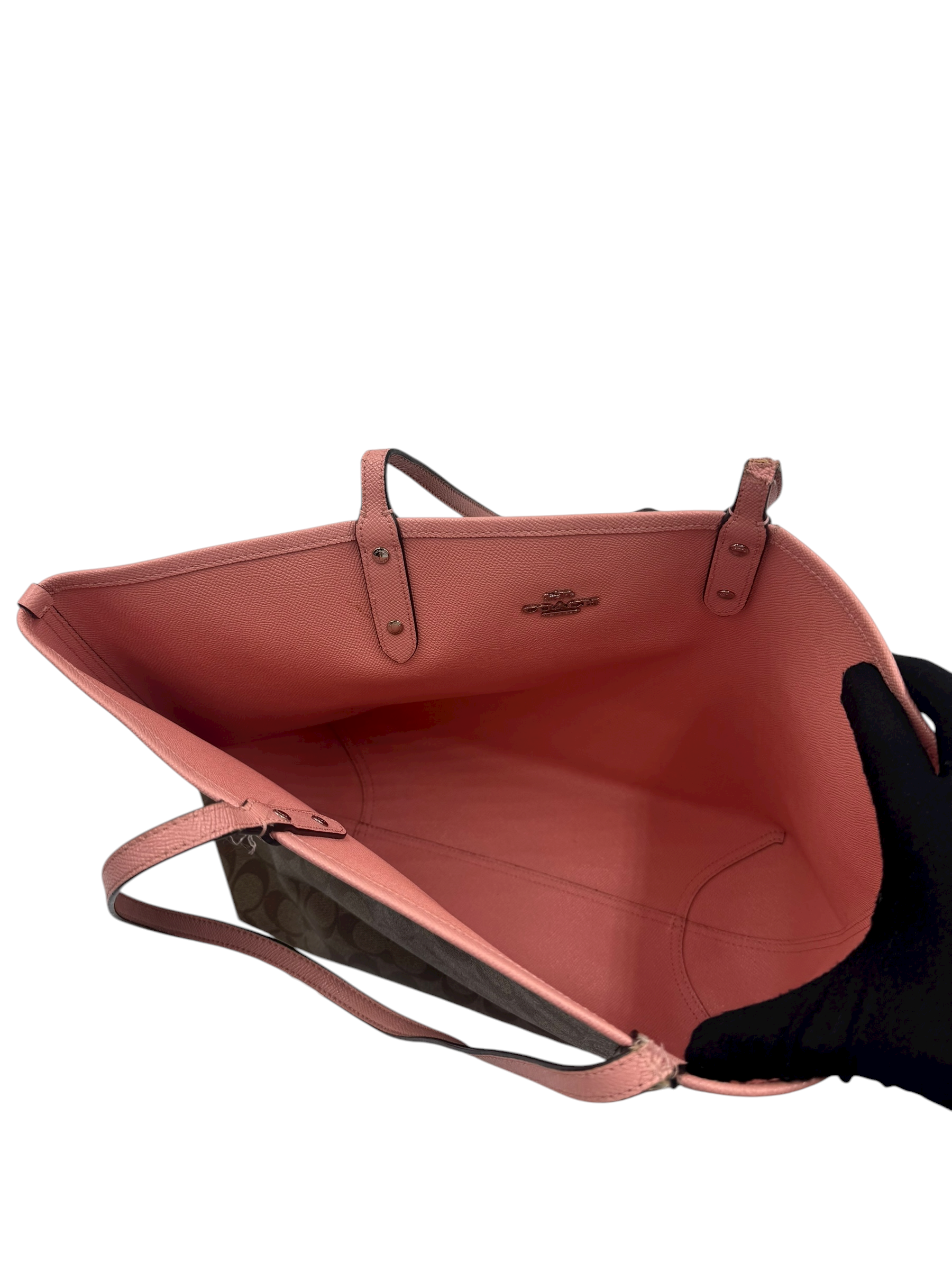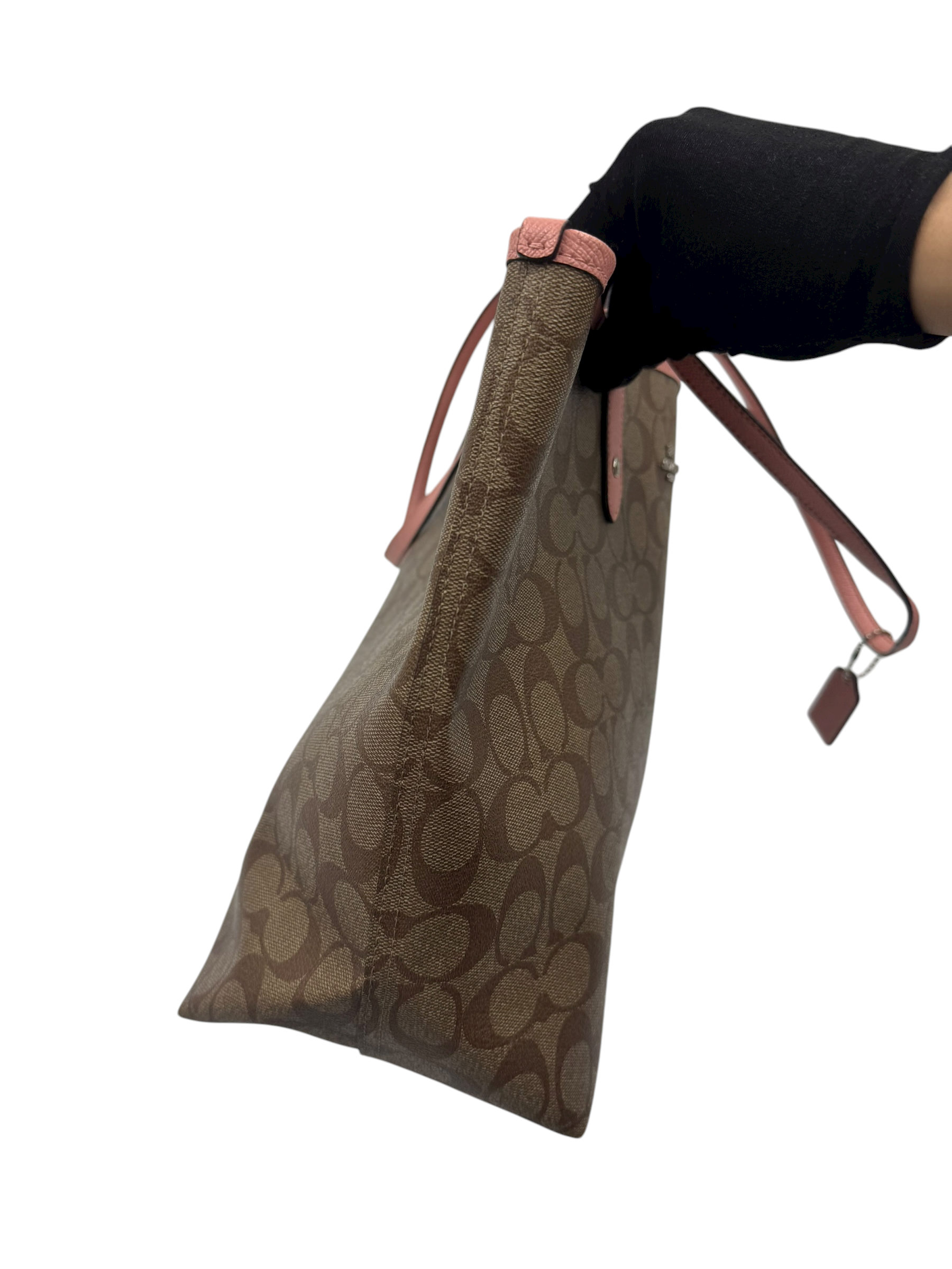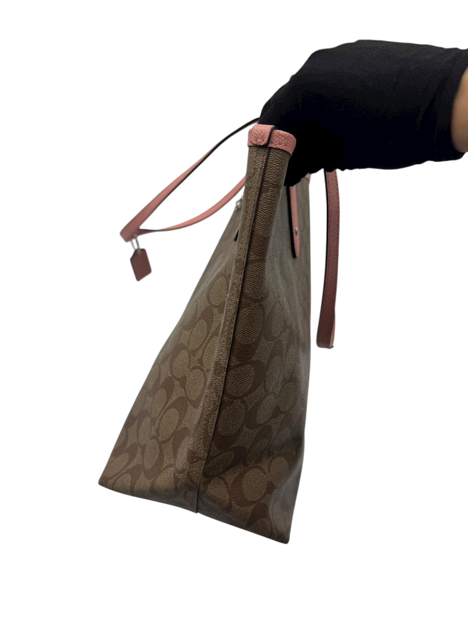 COACH SIGNATURE PINK TRIM TOTE BAG