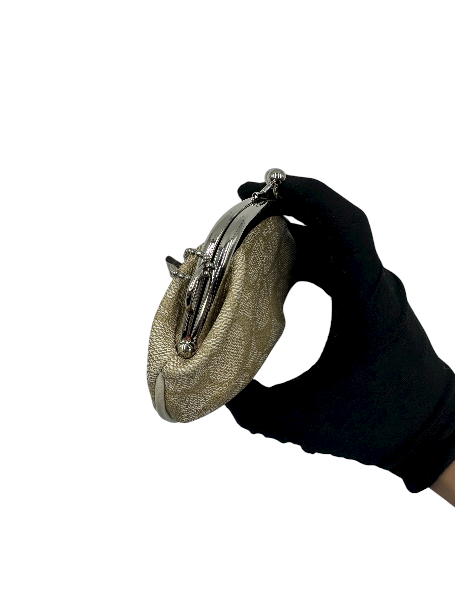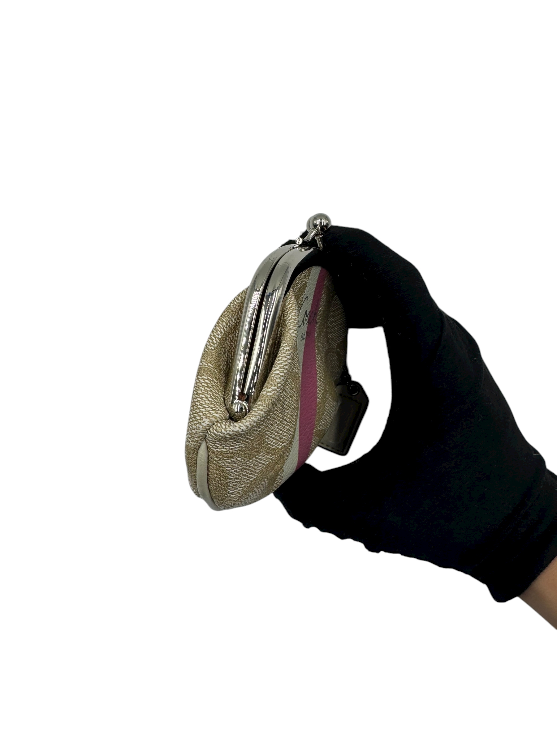 COACH STRIPE SIGNATURE KISSLOCK COIN PURSE
