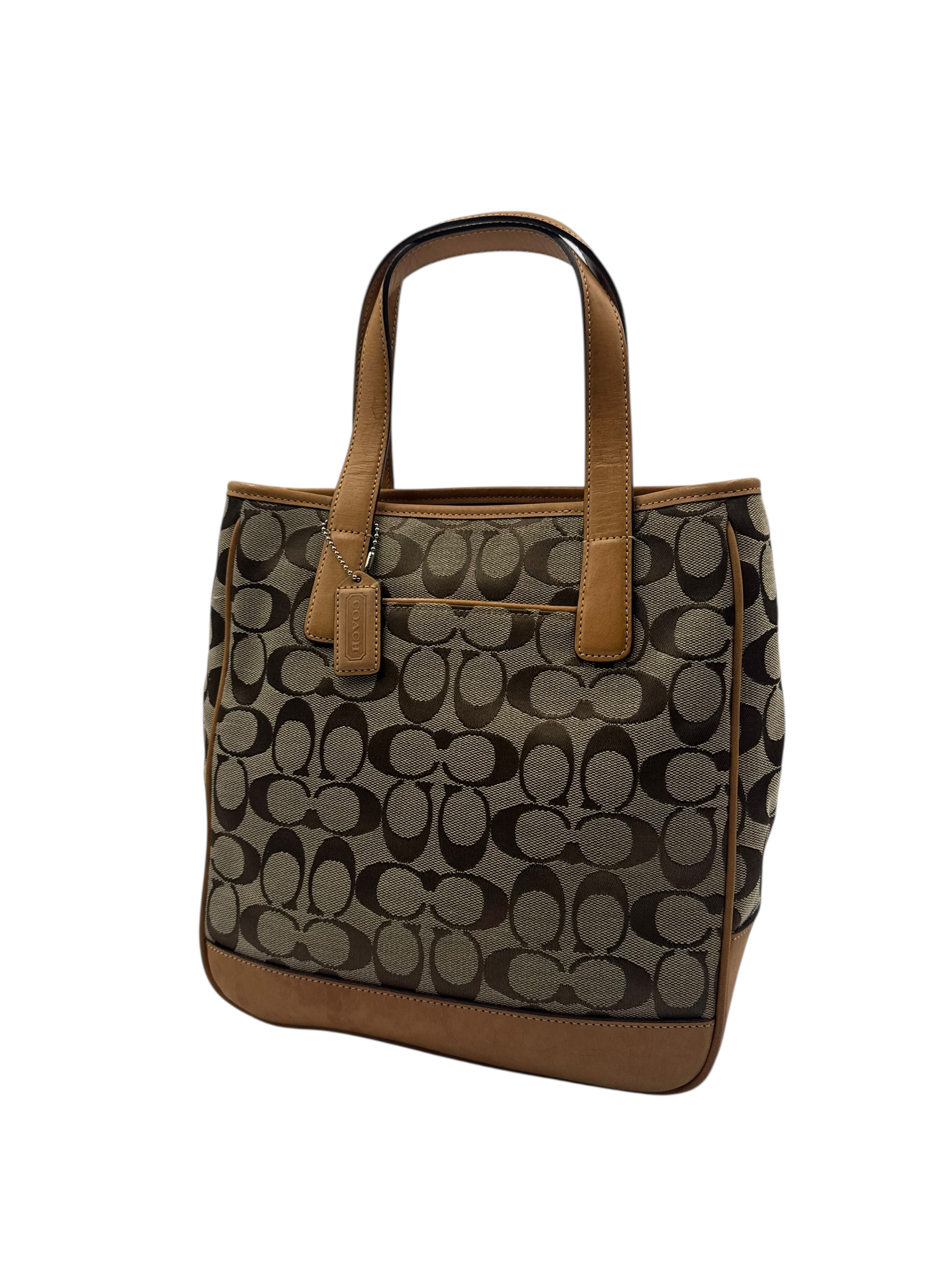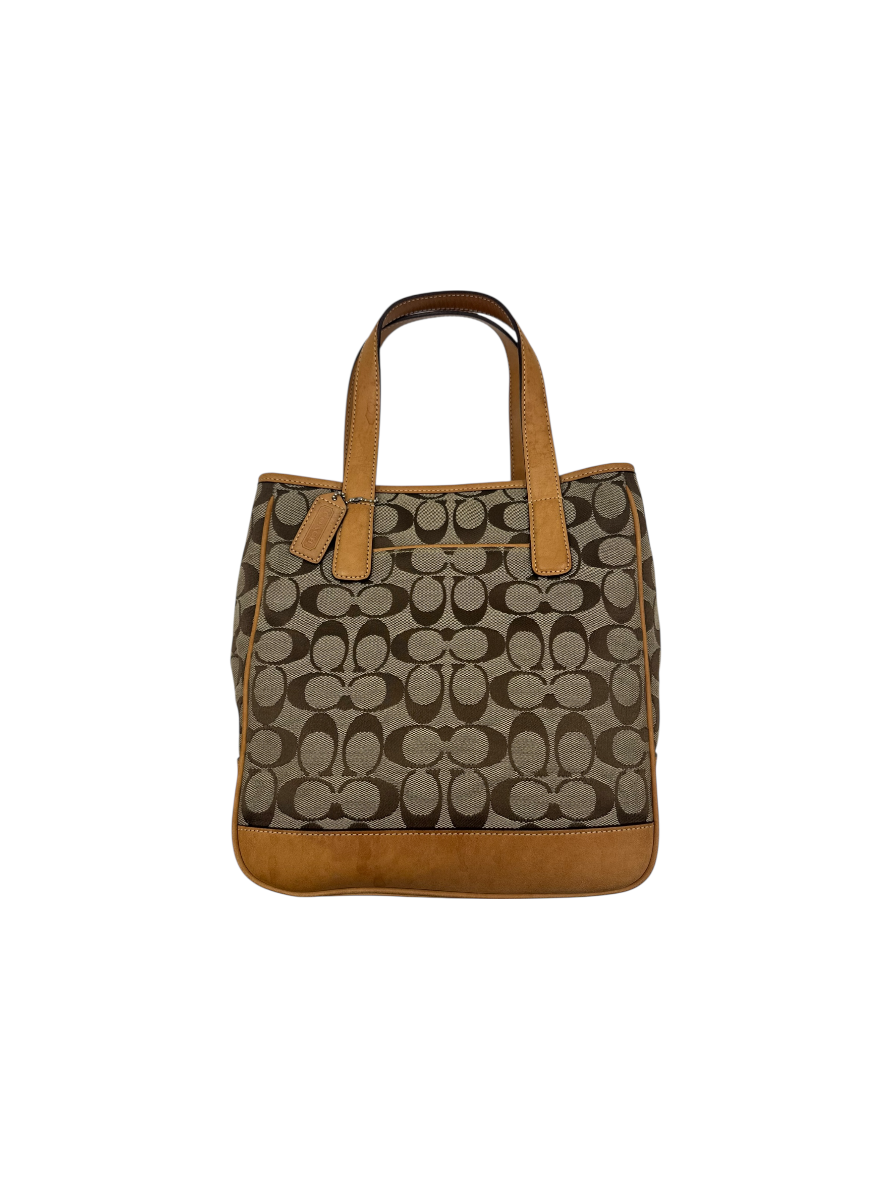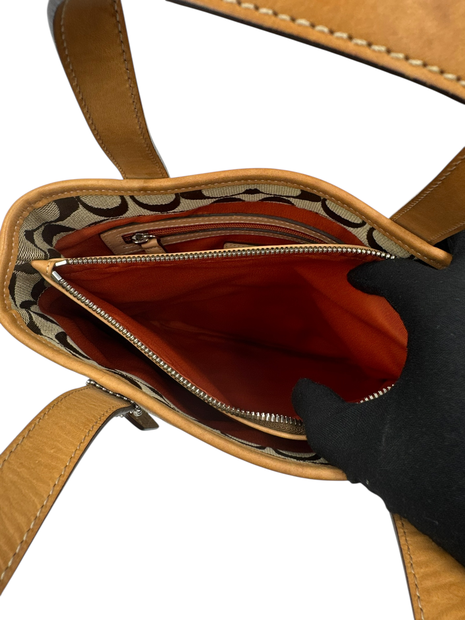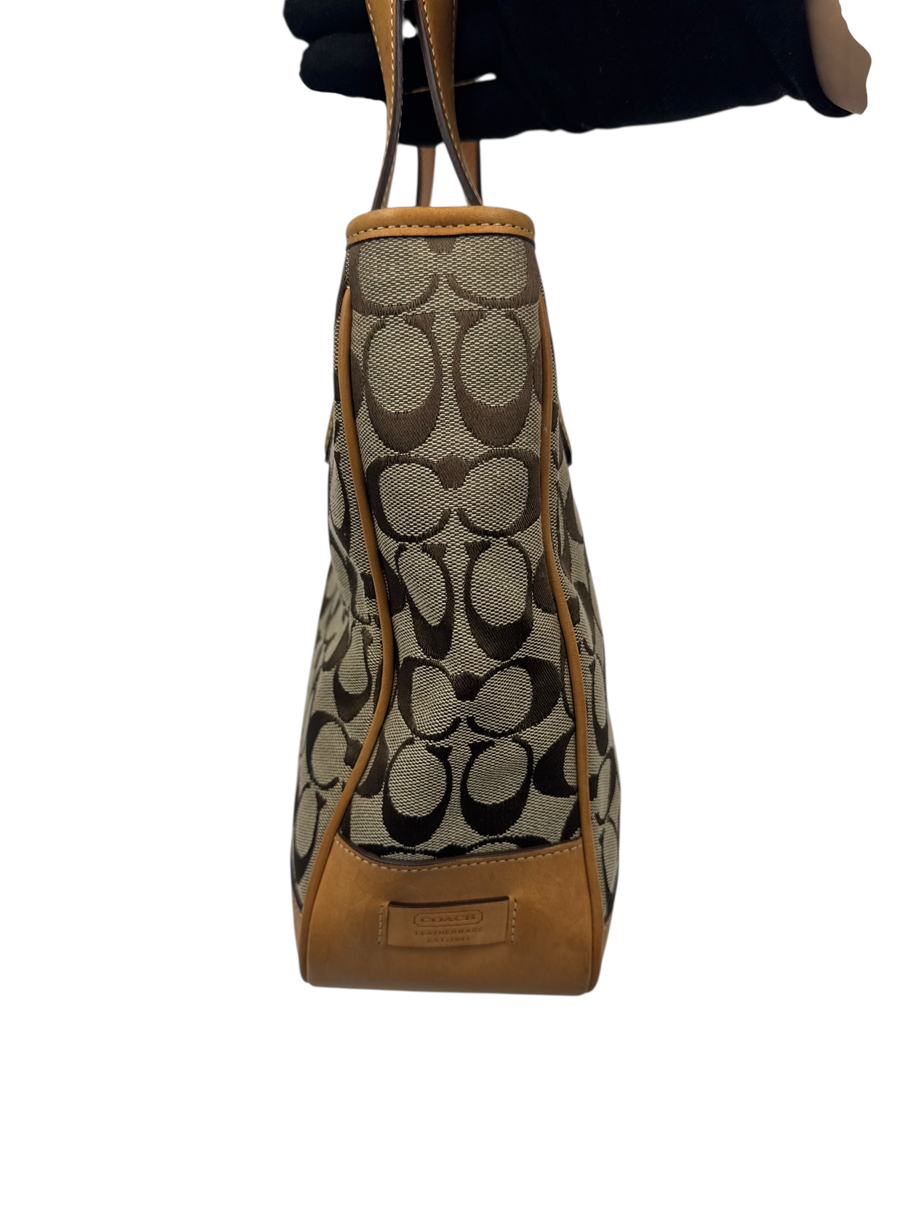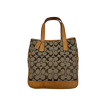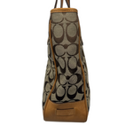 COACH TAN SIGNATURE LEATHER TRIM TOTE