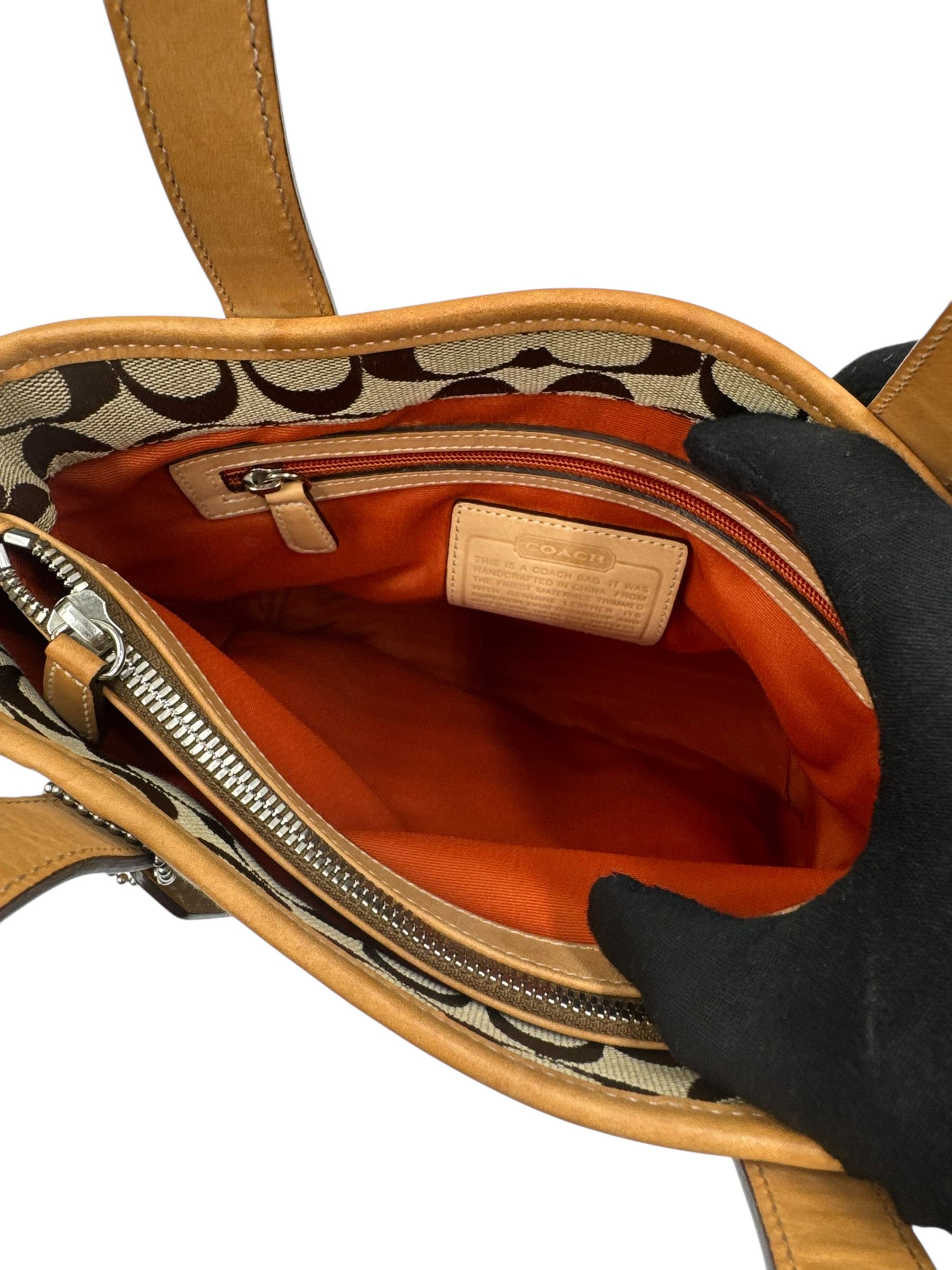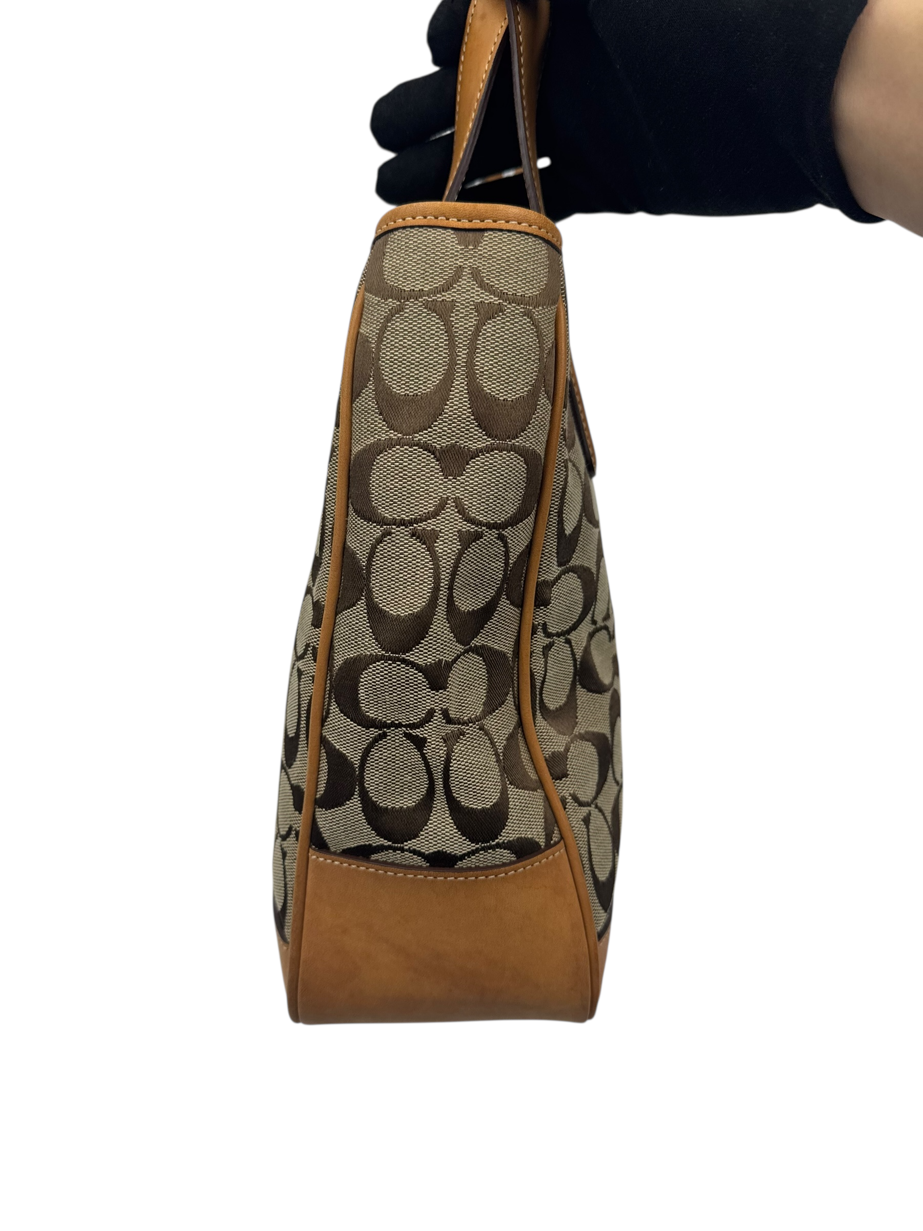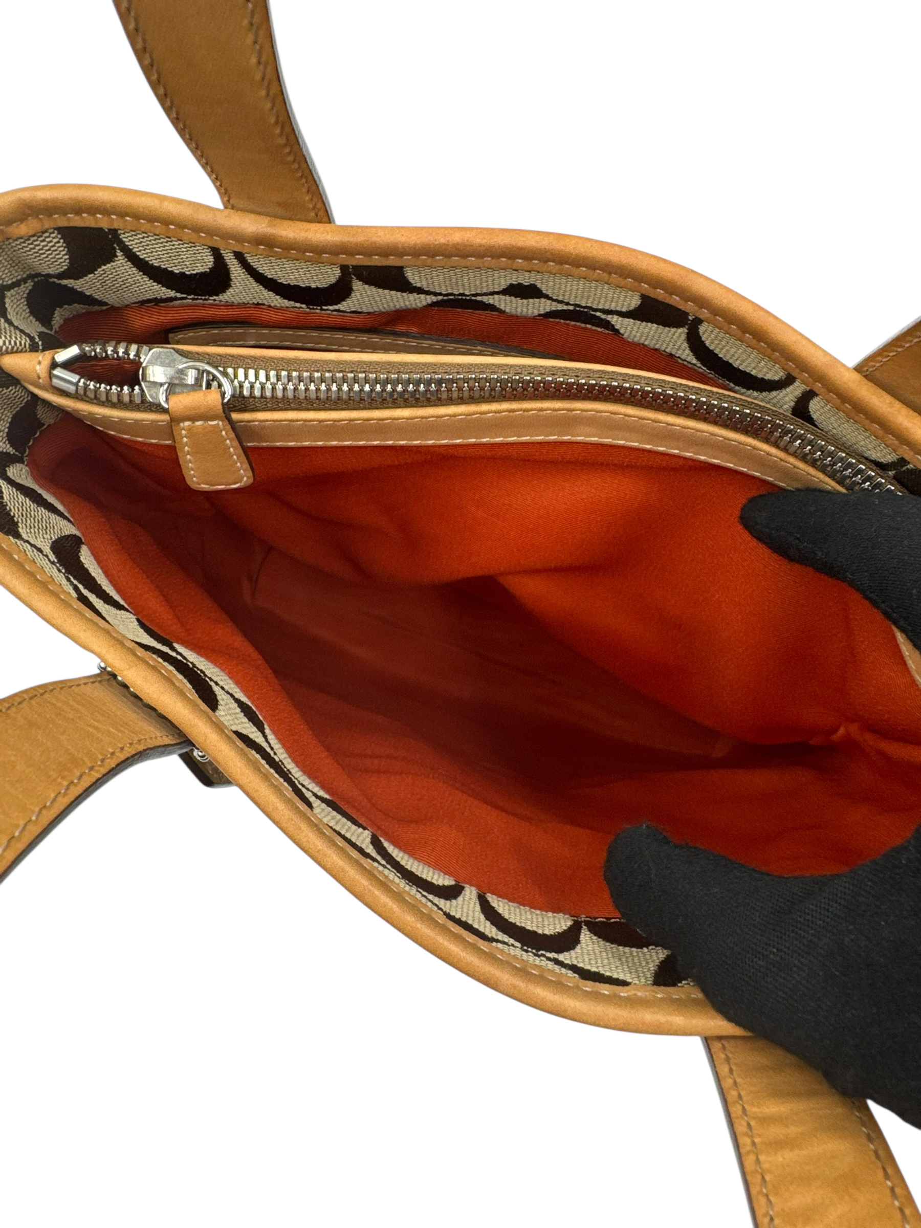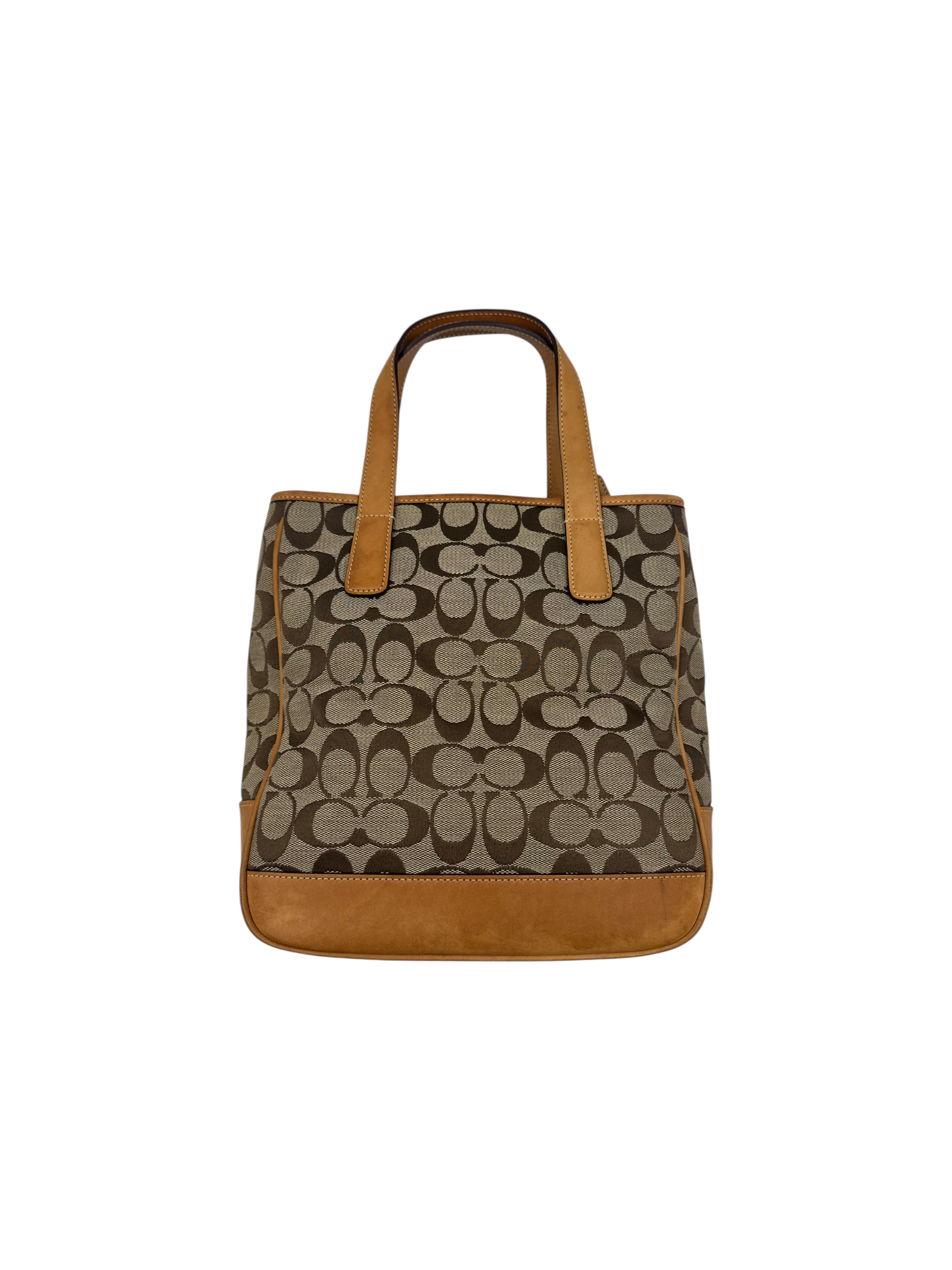COACH TAN SIGNATURE LEATHER TRIM TOTE