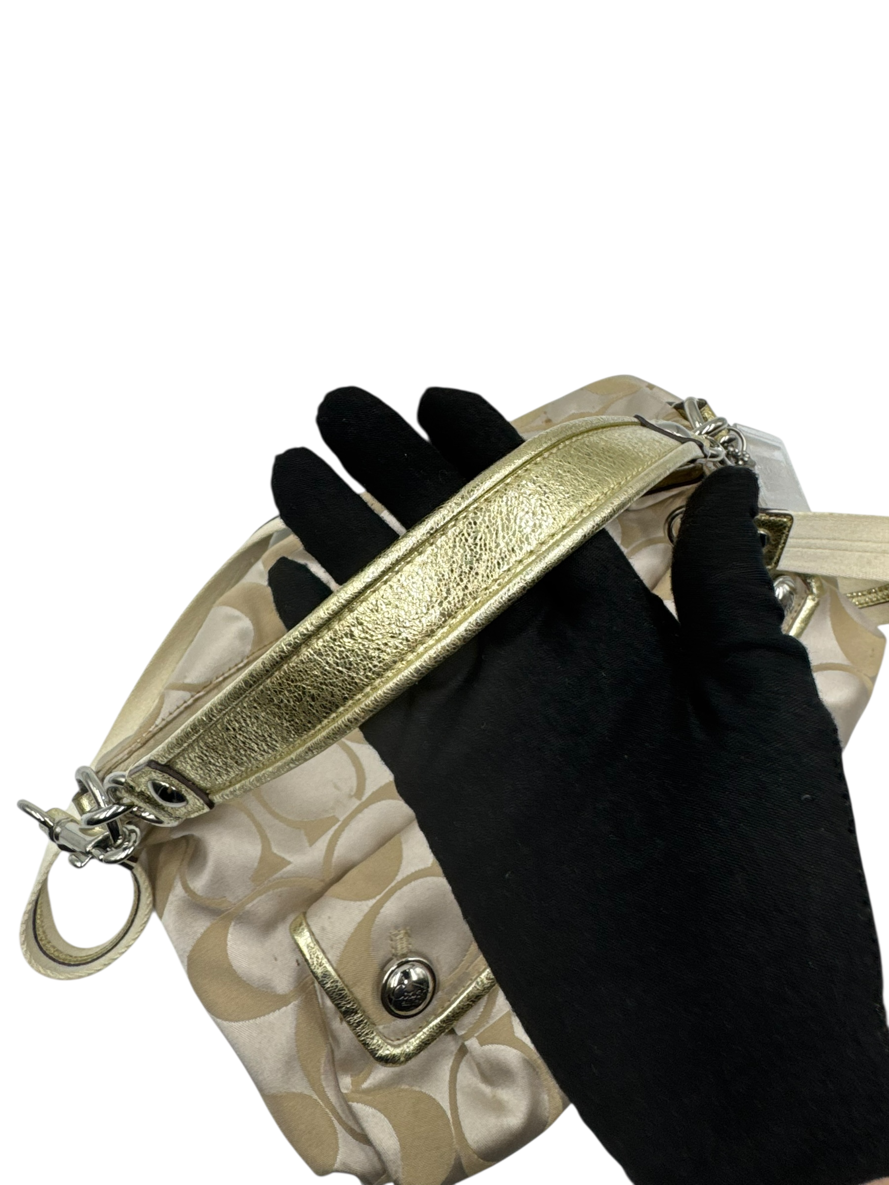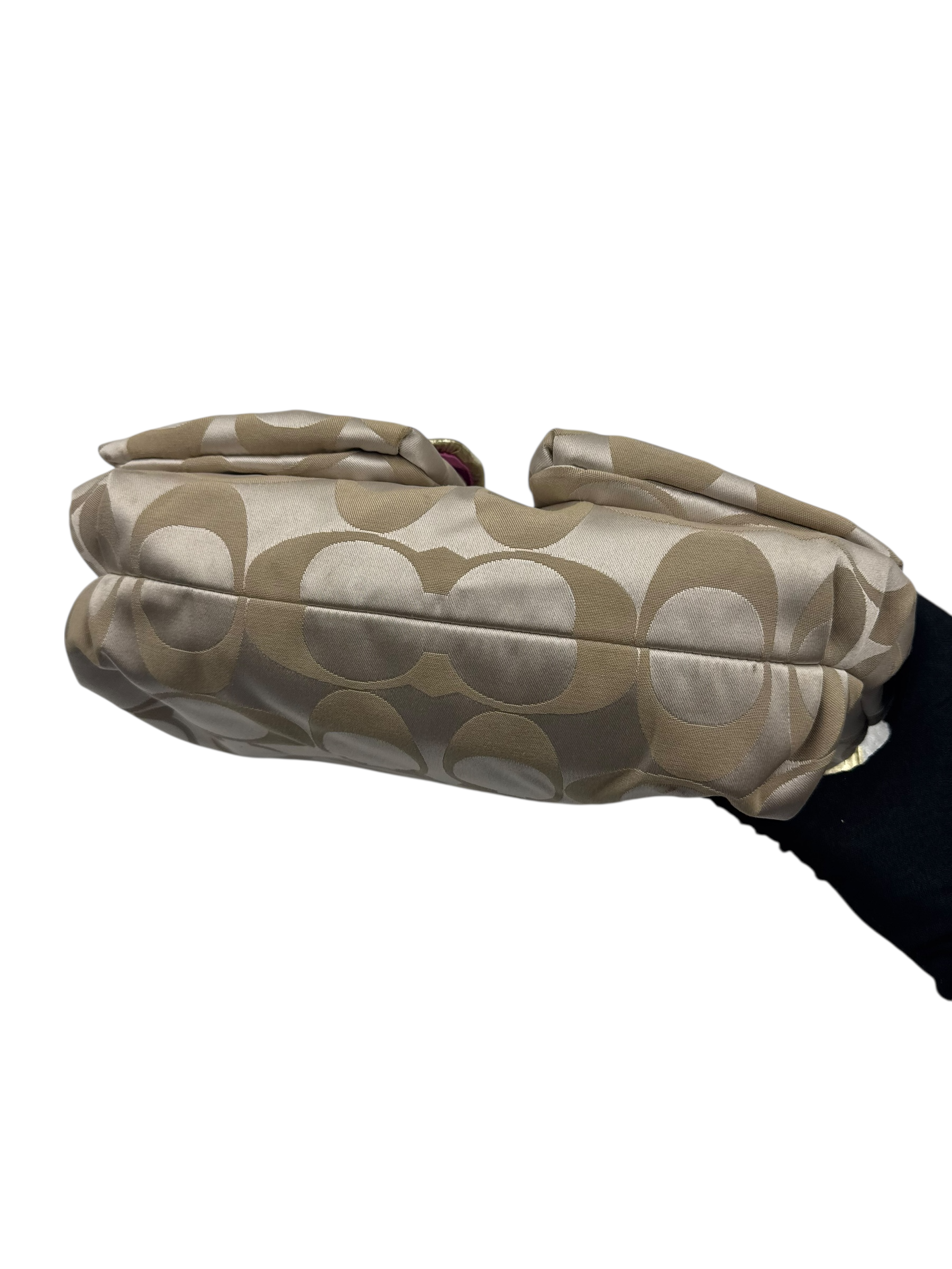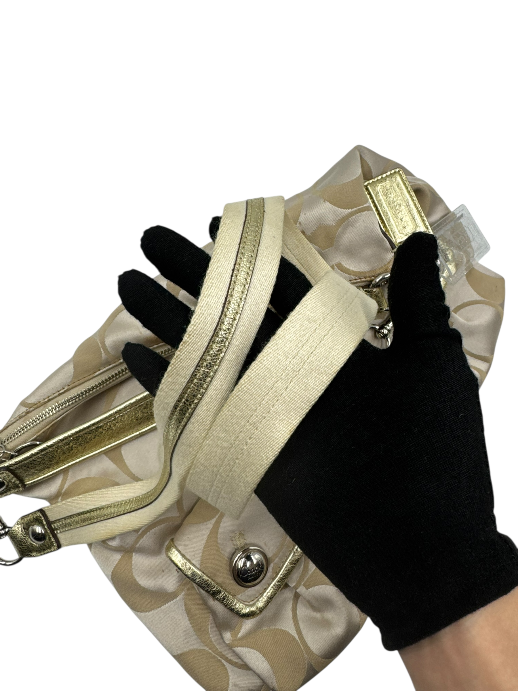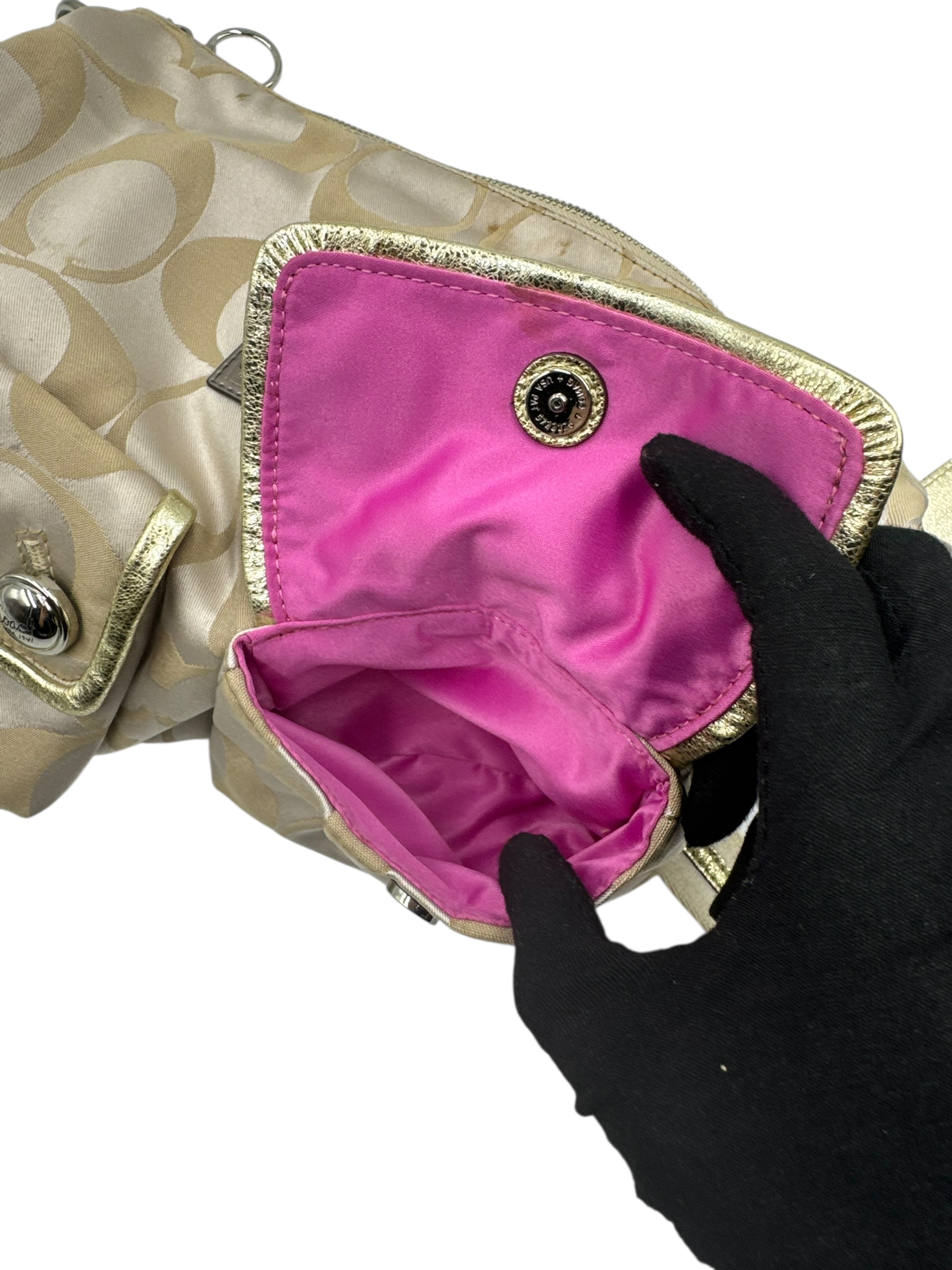 COACH BEIGE SIGNATURE DOUBLE POCKET CROSSBODY BAG