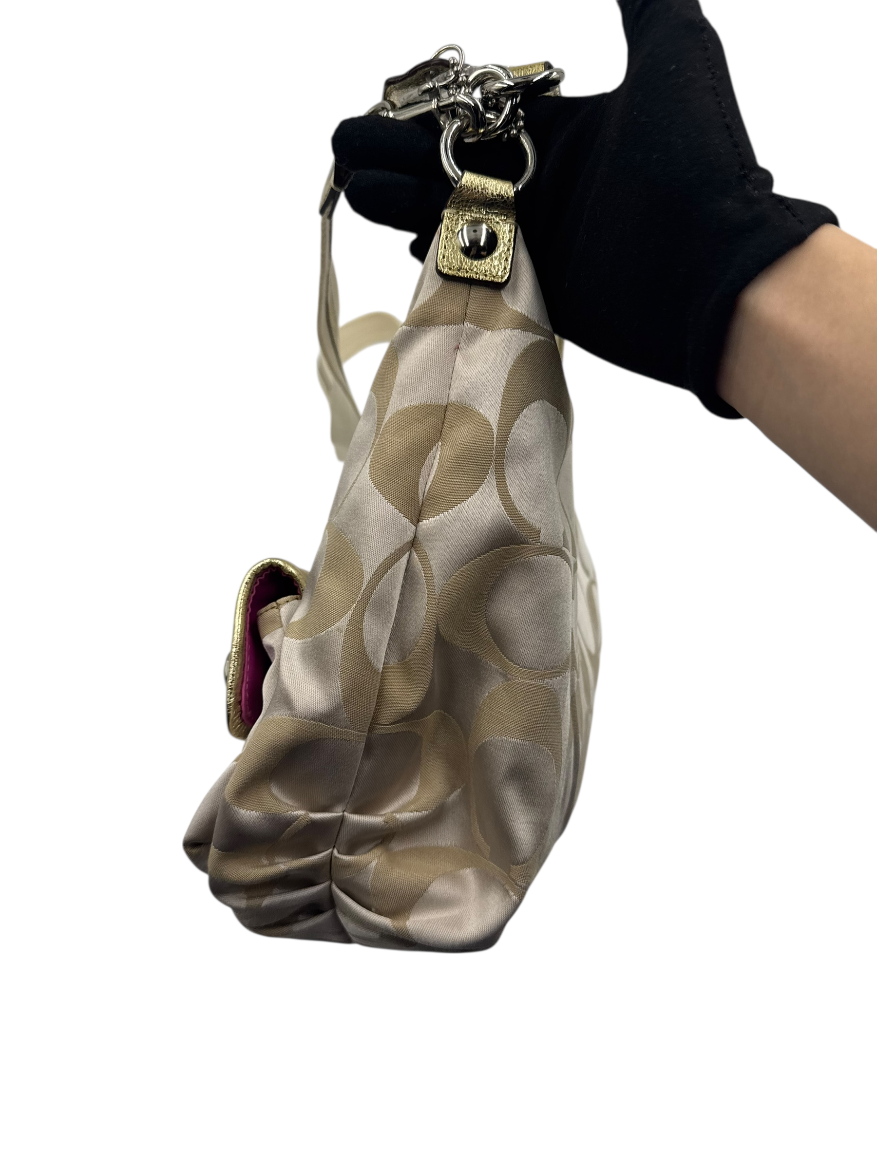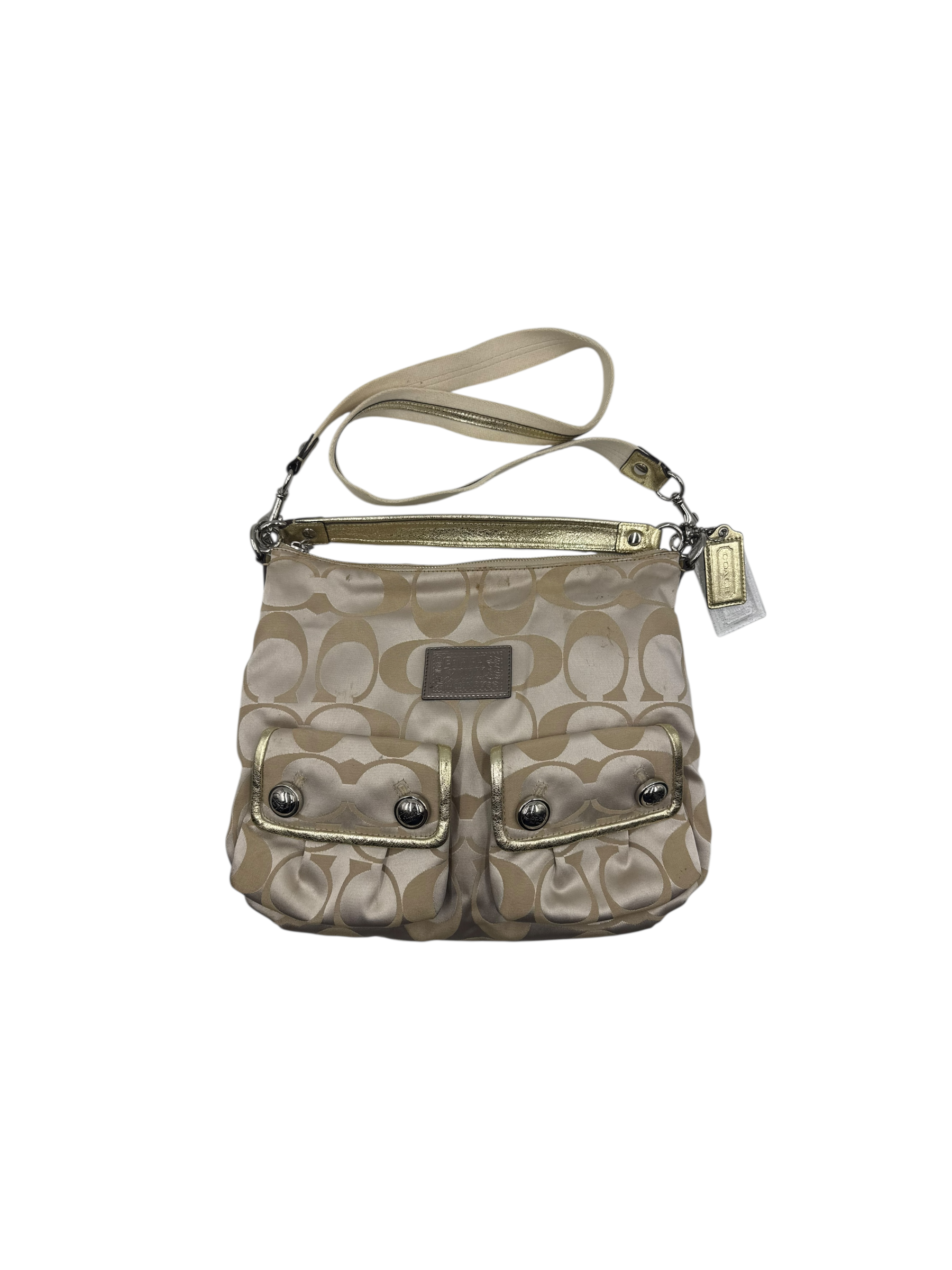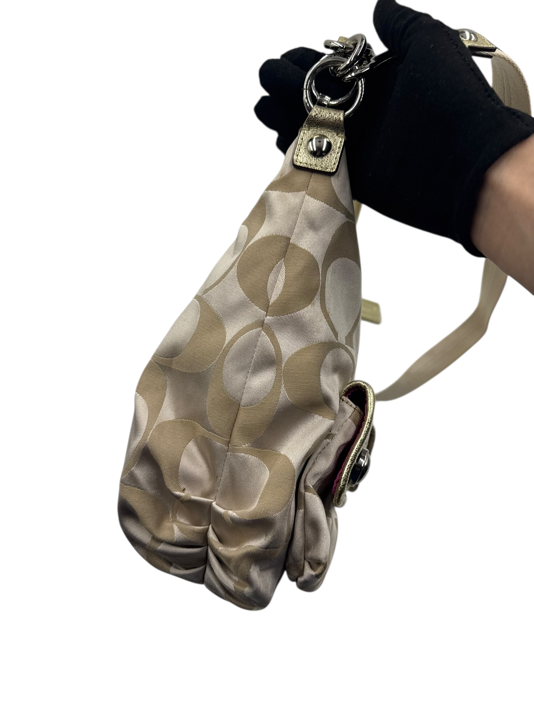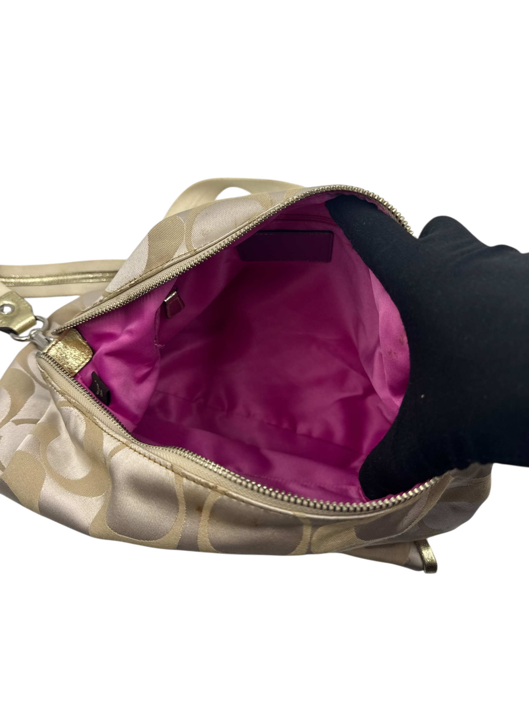 COACH BEIGE SIGNATURE DOUBLE POCKET CROSSBODY BAG