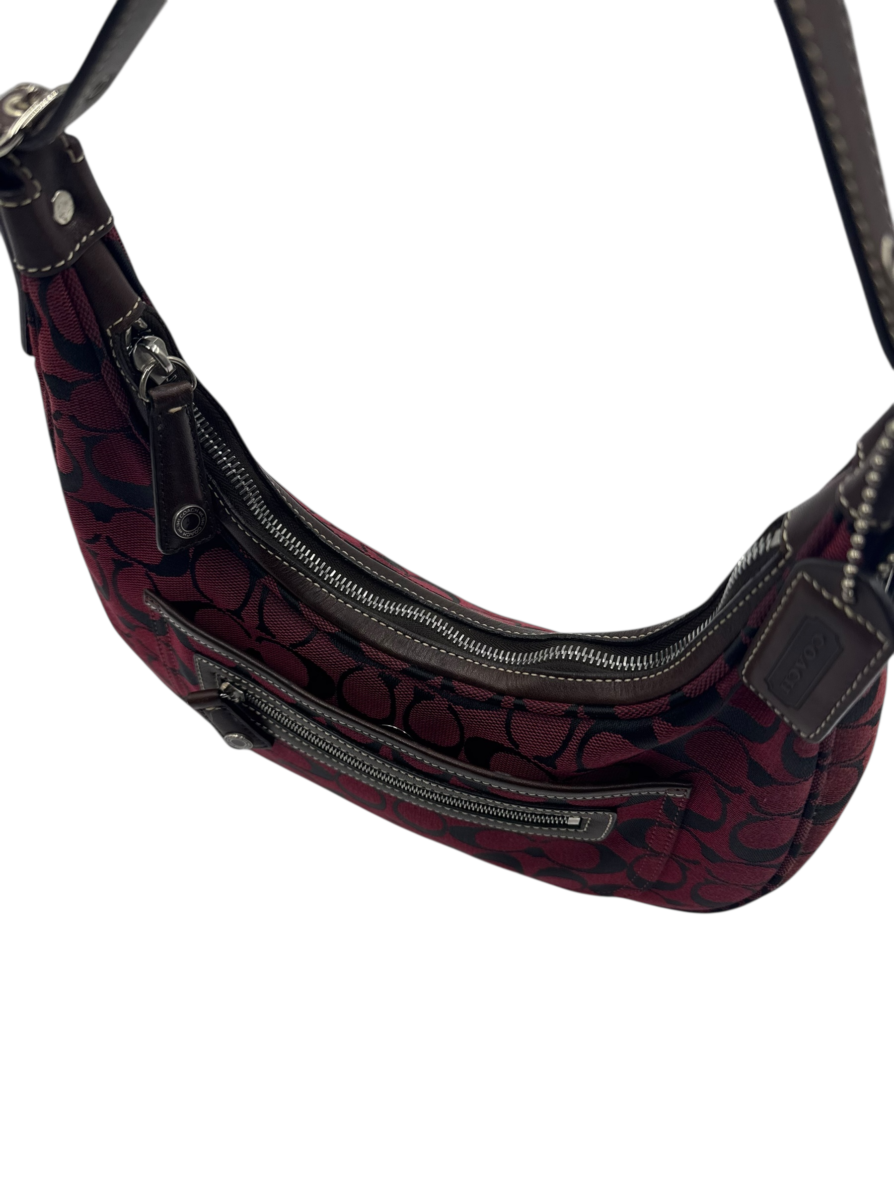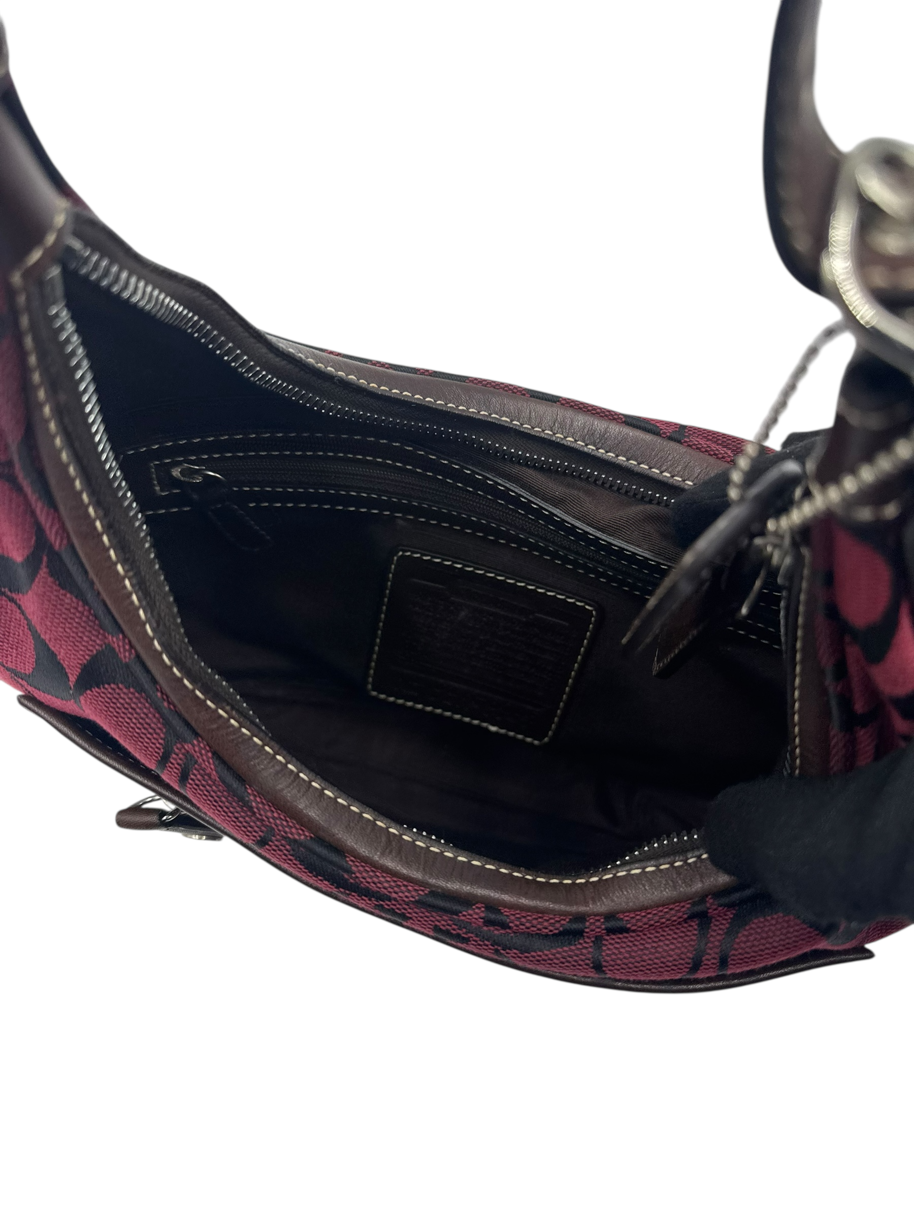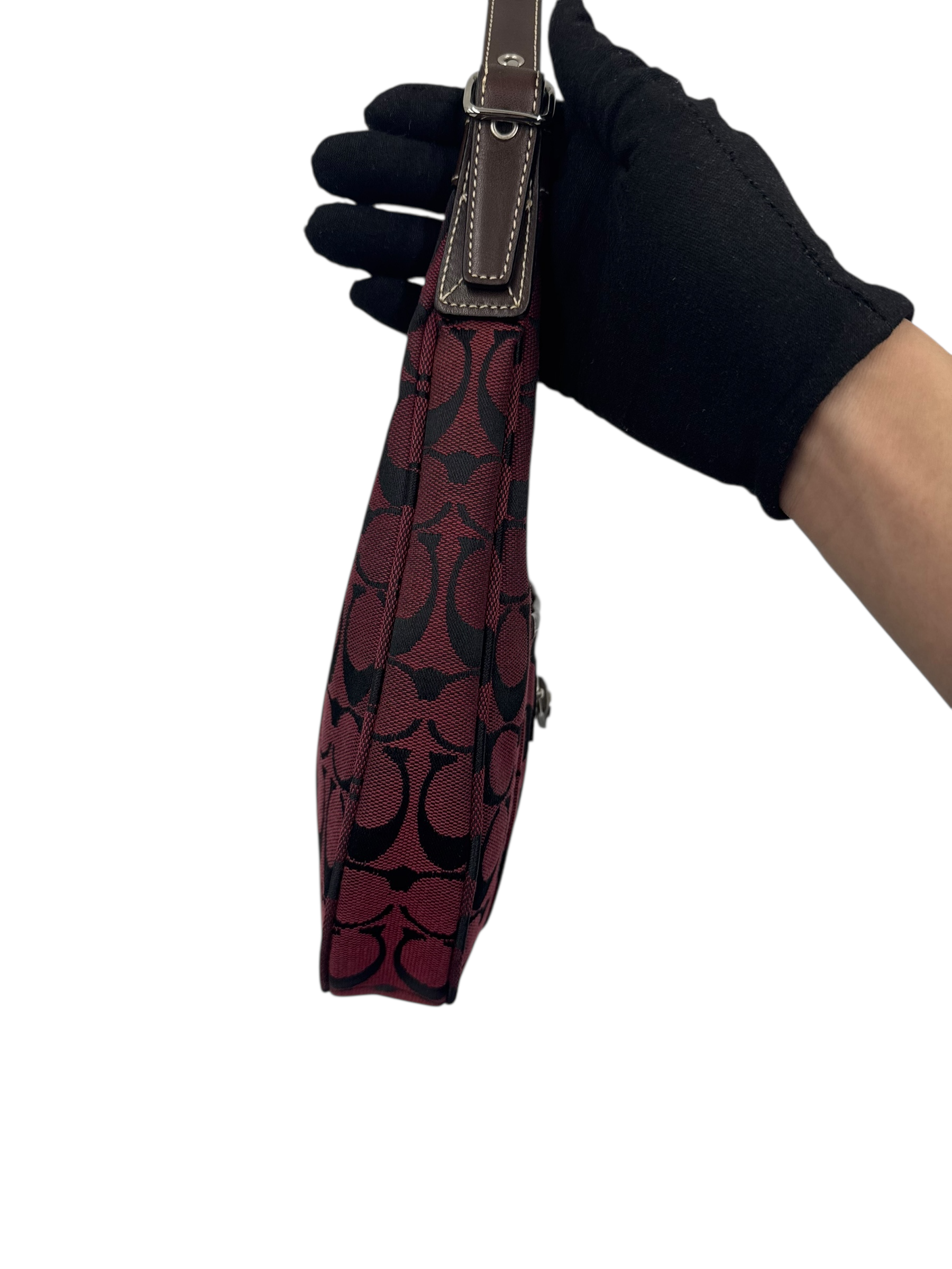 COACH BURGUNDY SIGNATURE SMALL HOBO BAG