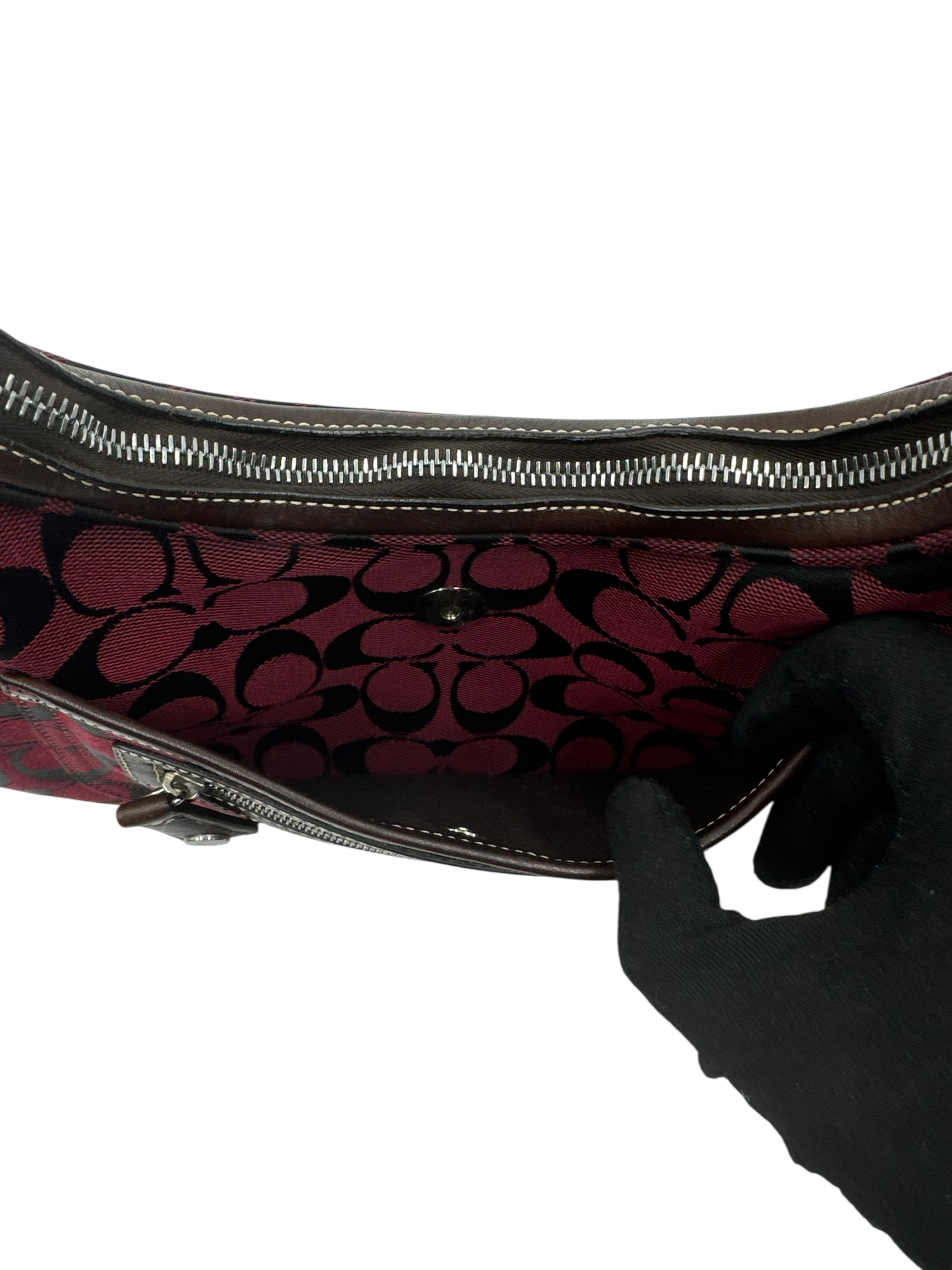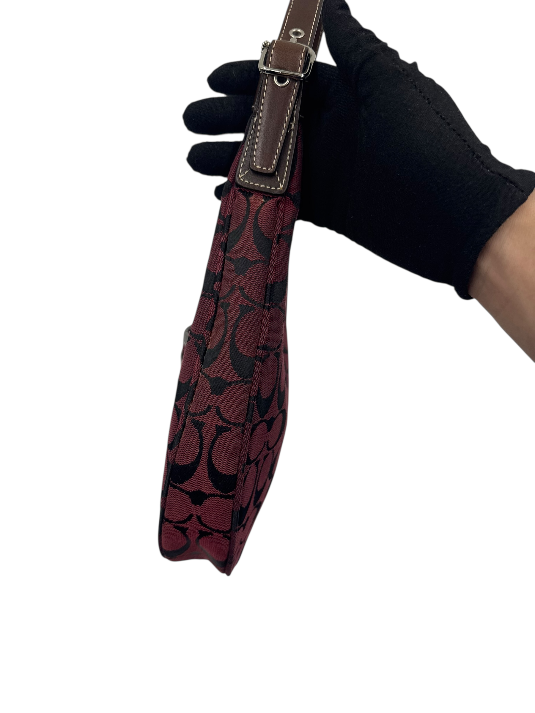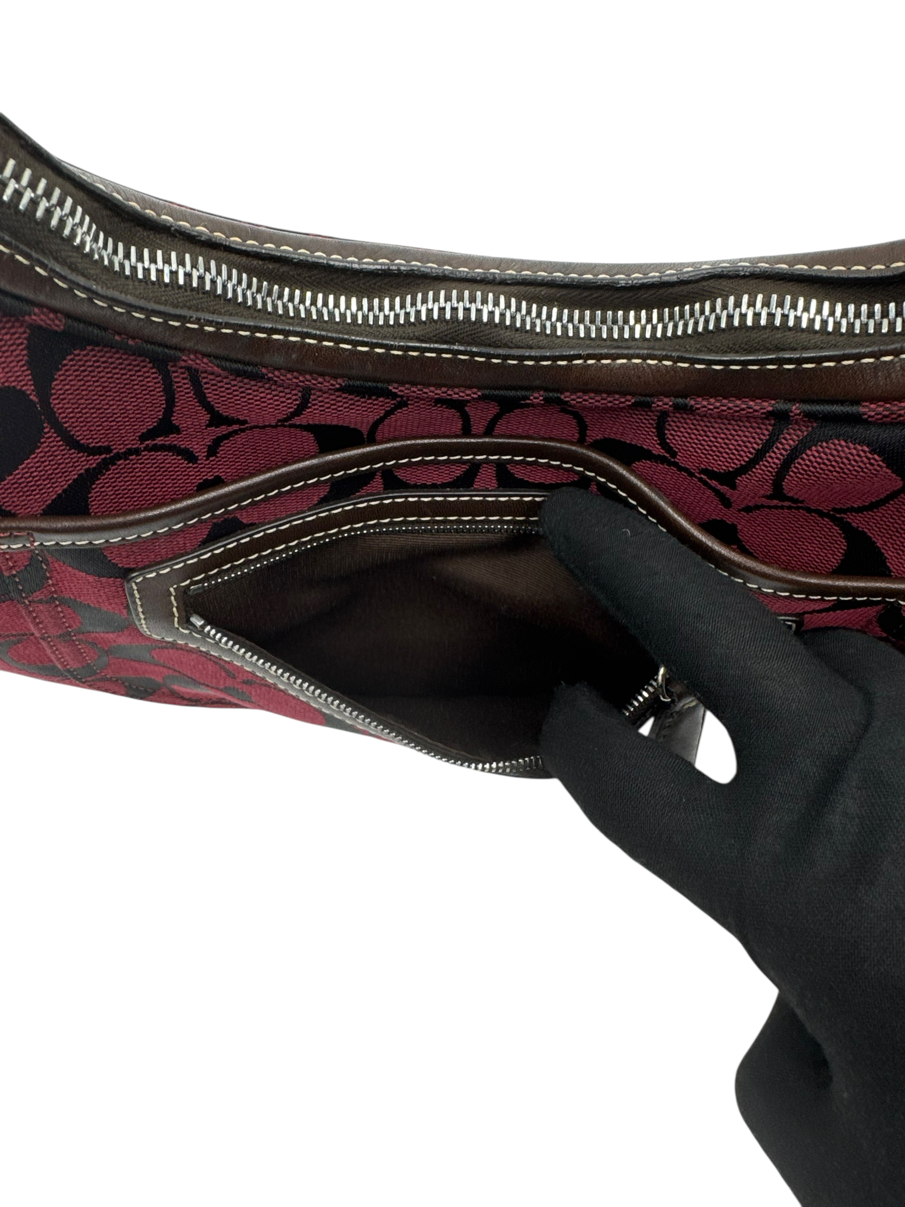 COACH BURGUNDY SIGNATURE SMALL HOBO BAG