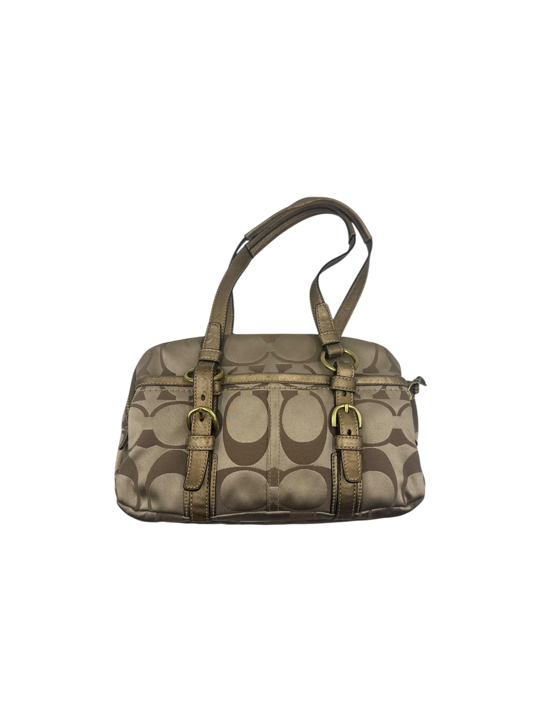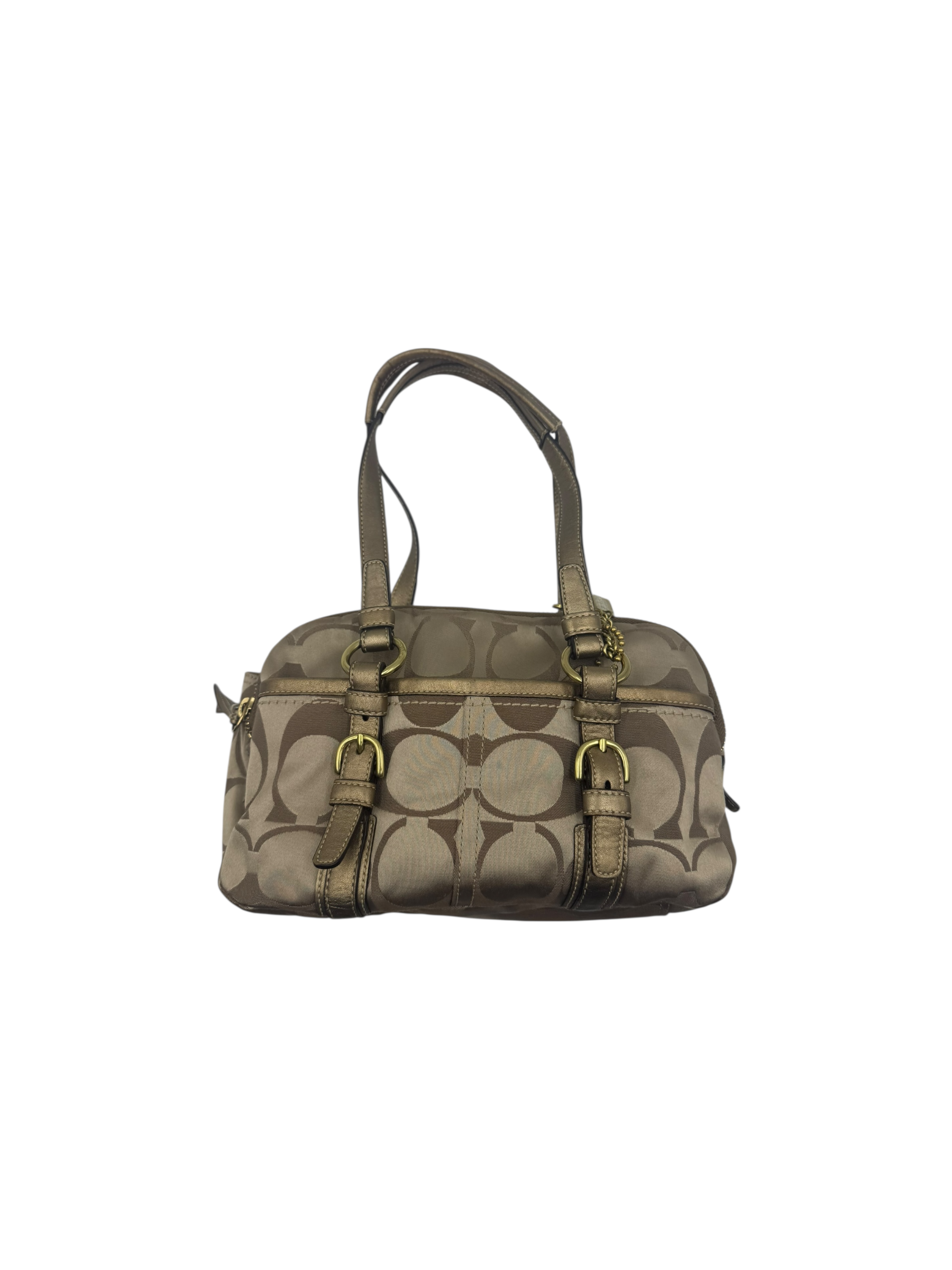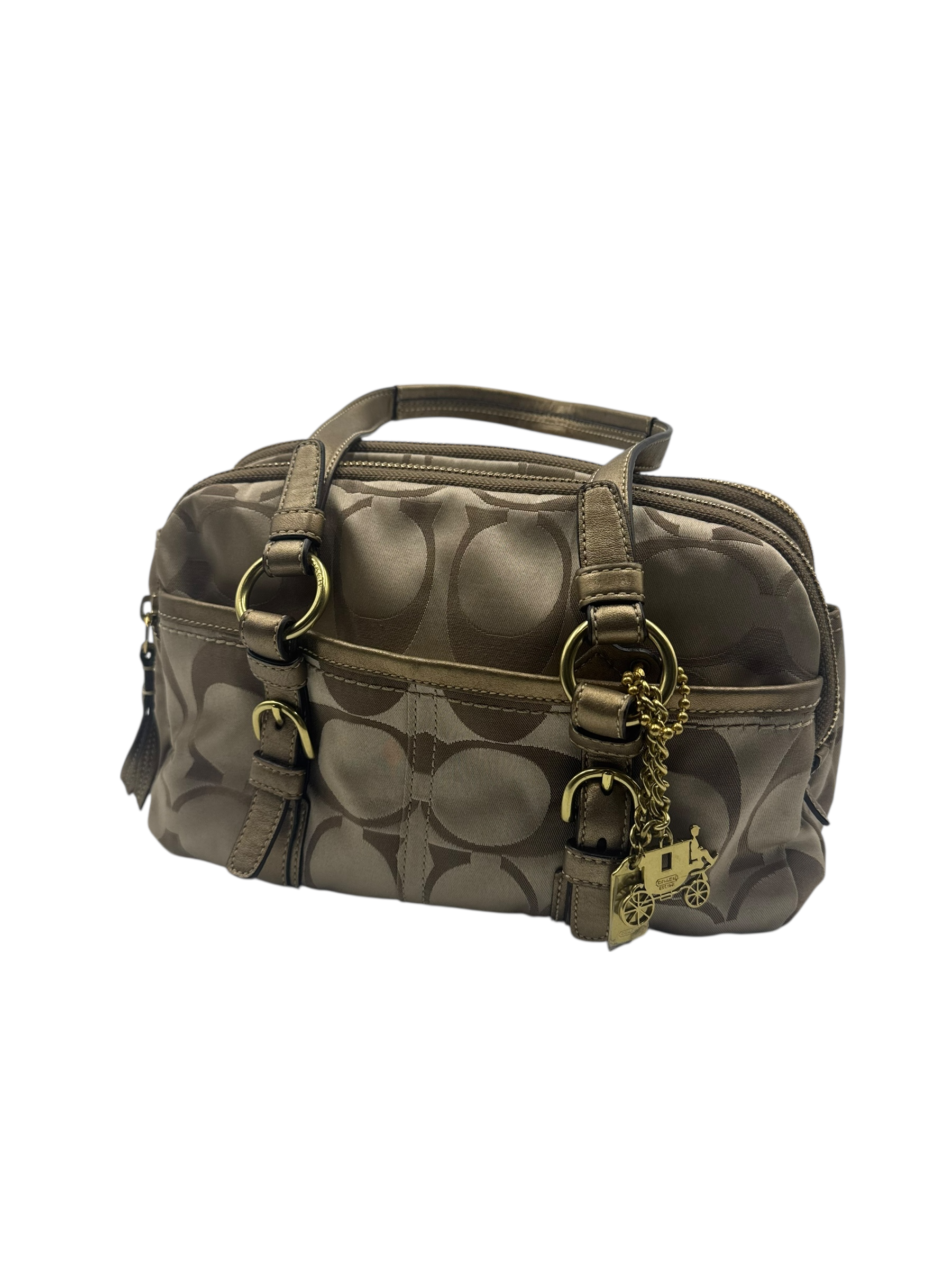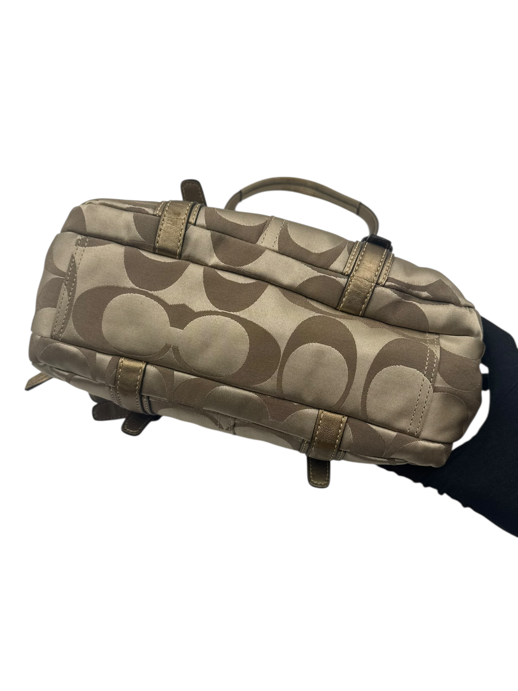 COACH KHAKI SIGNATURE SATCHEL BAG