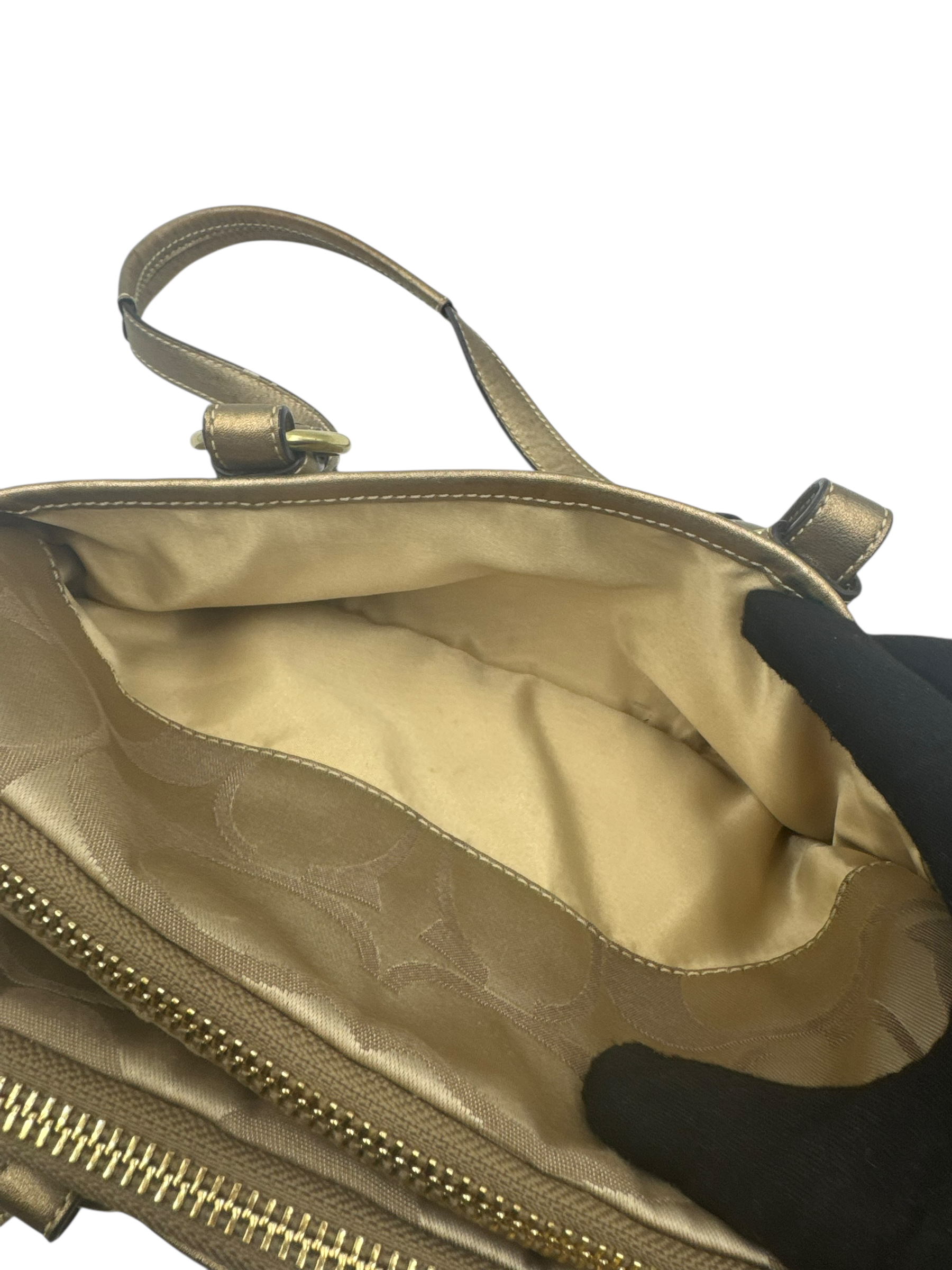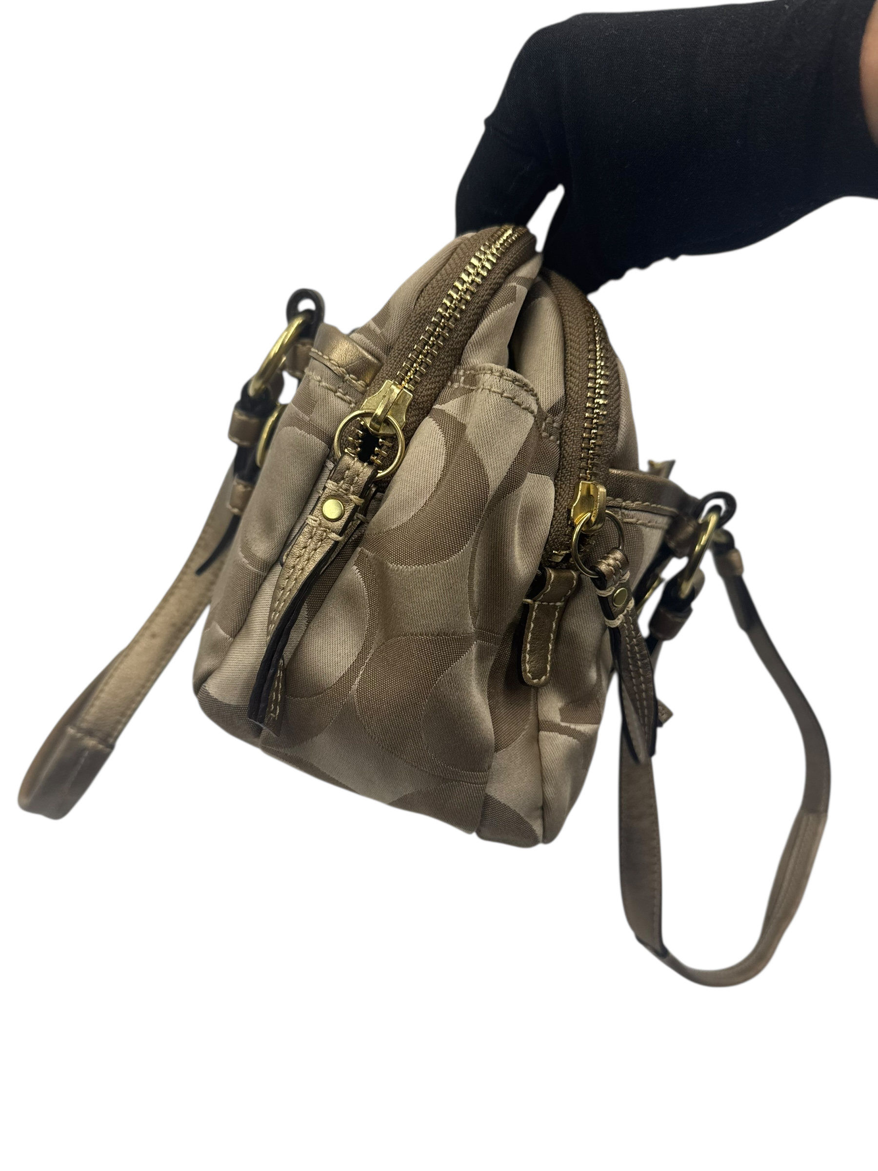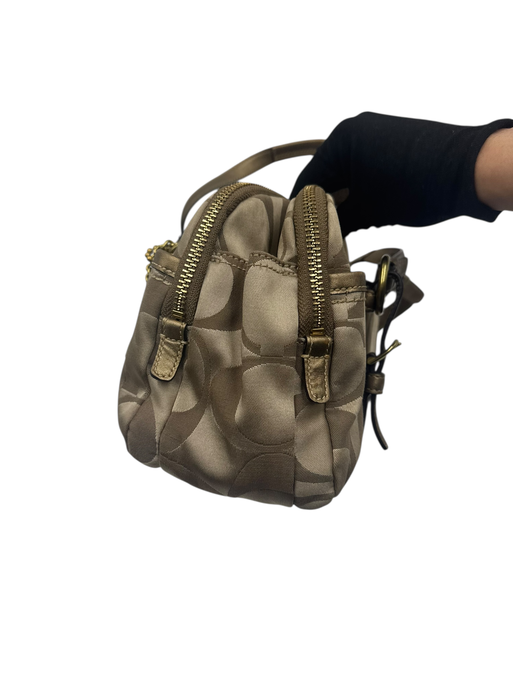 COACH KHAKI SIGNATURE SATCHEL BAG
