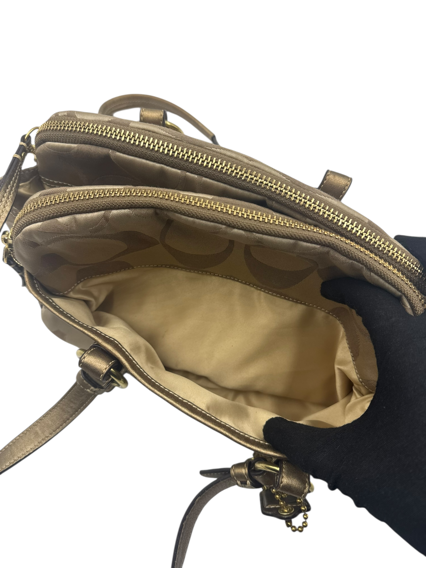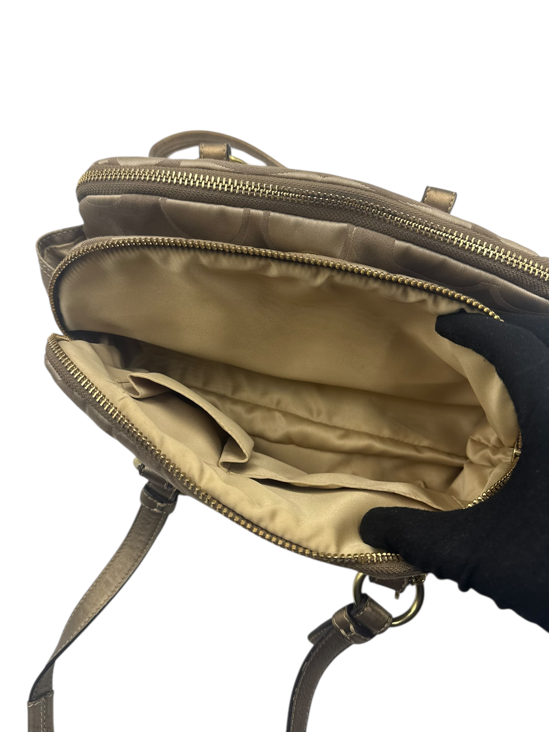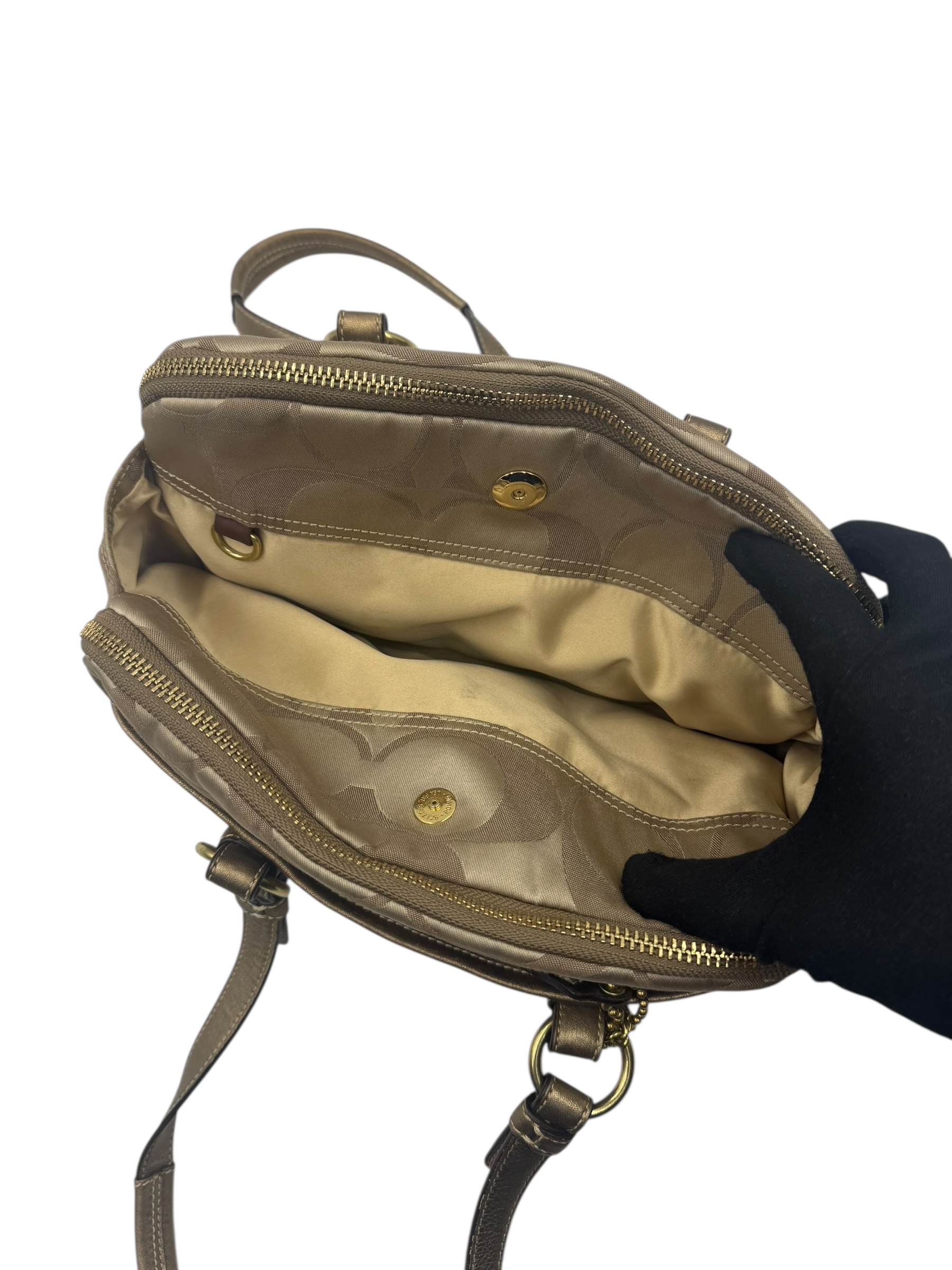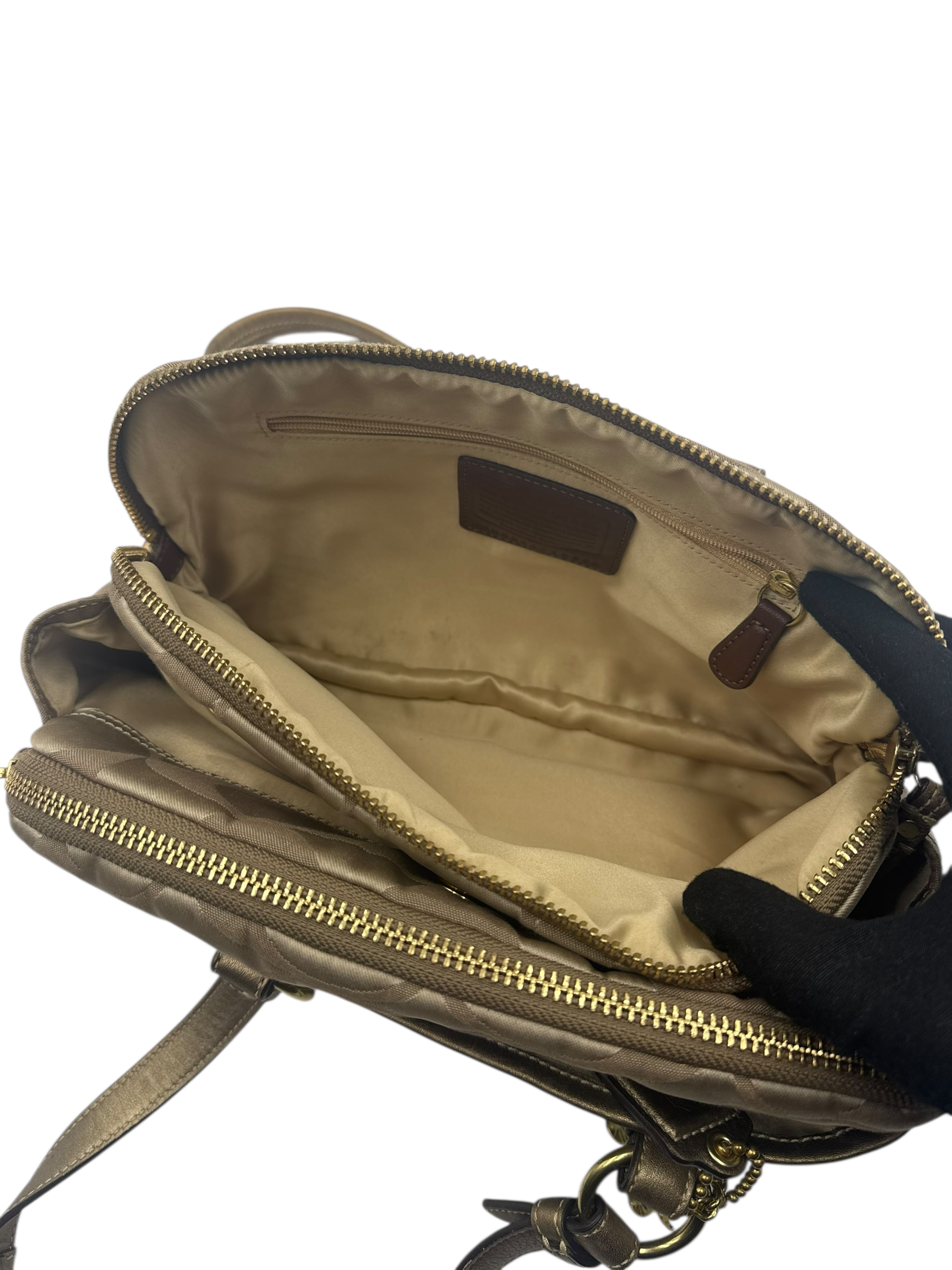 COACH KHAKI SIGNATURE SATCHEL BAG