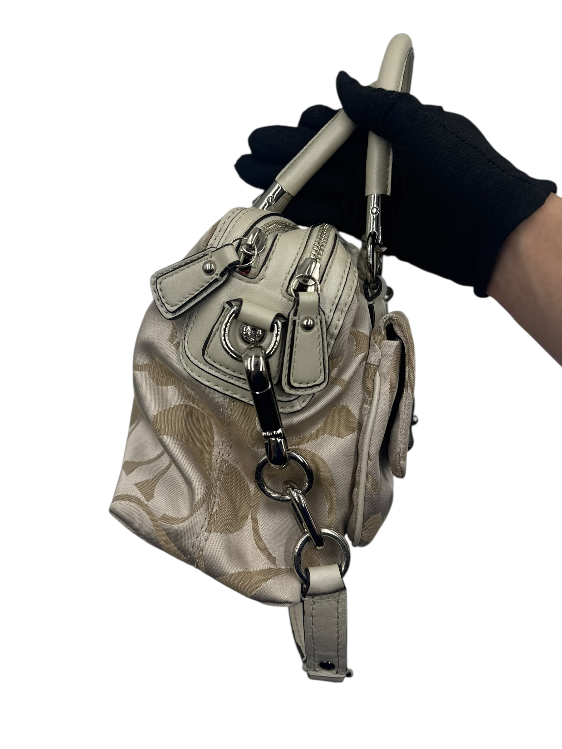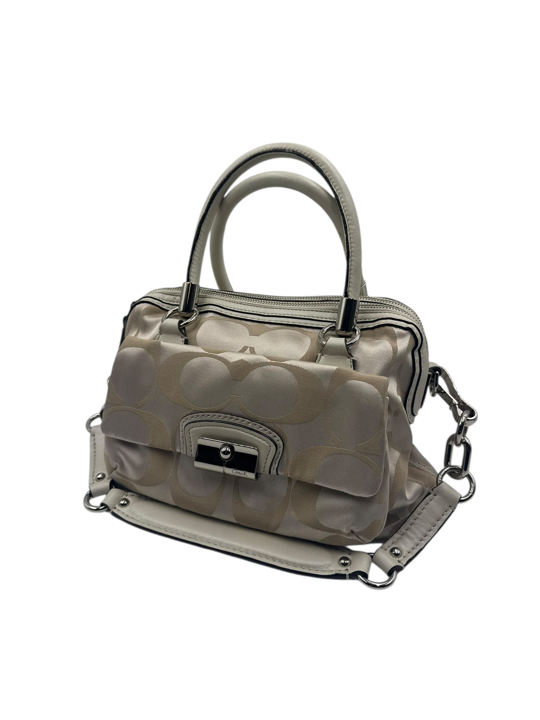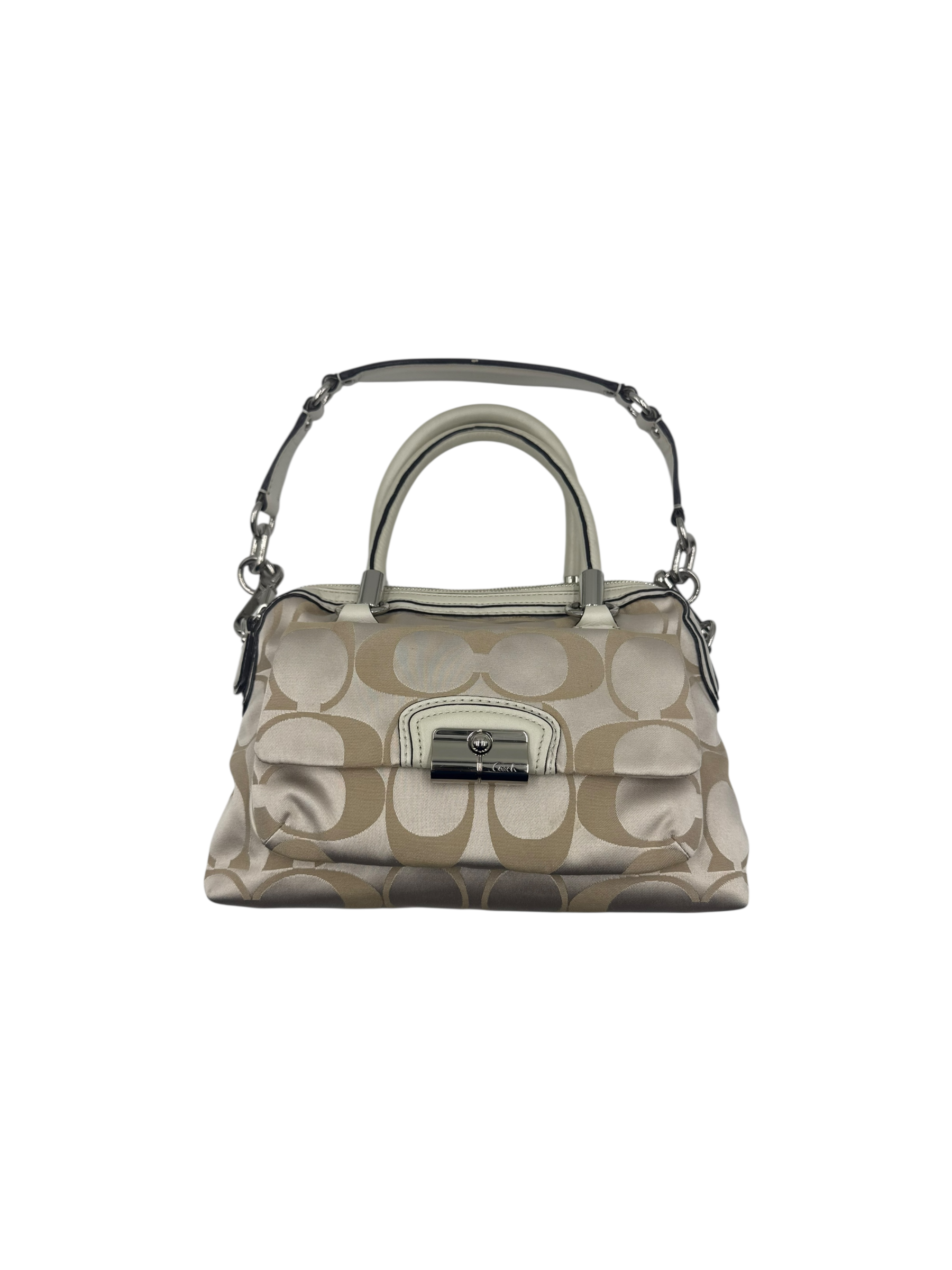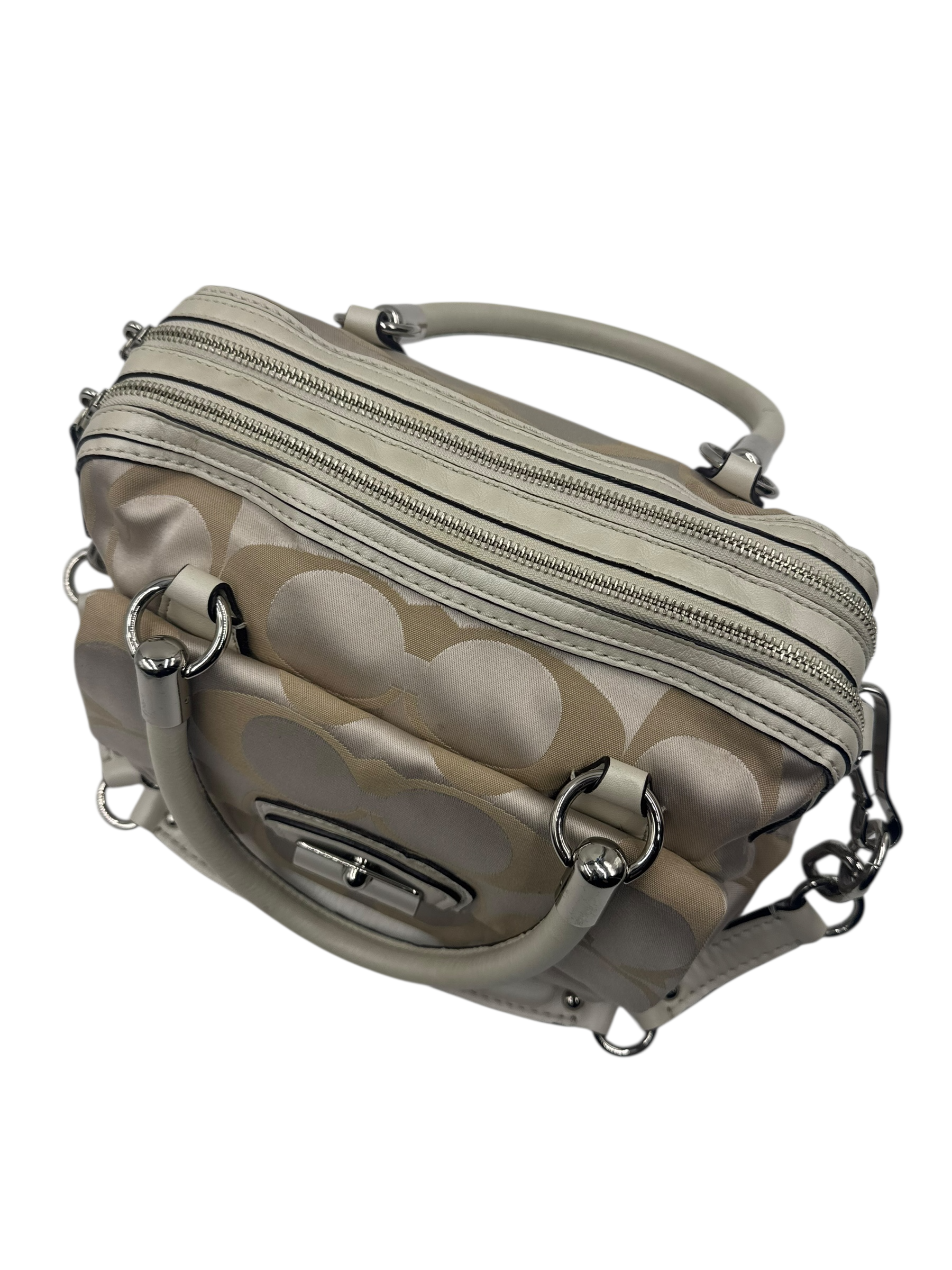 COACH KHAKI SIGNATURE SATCHEL BAG