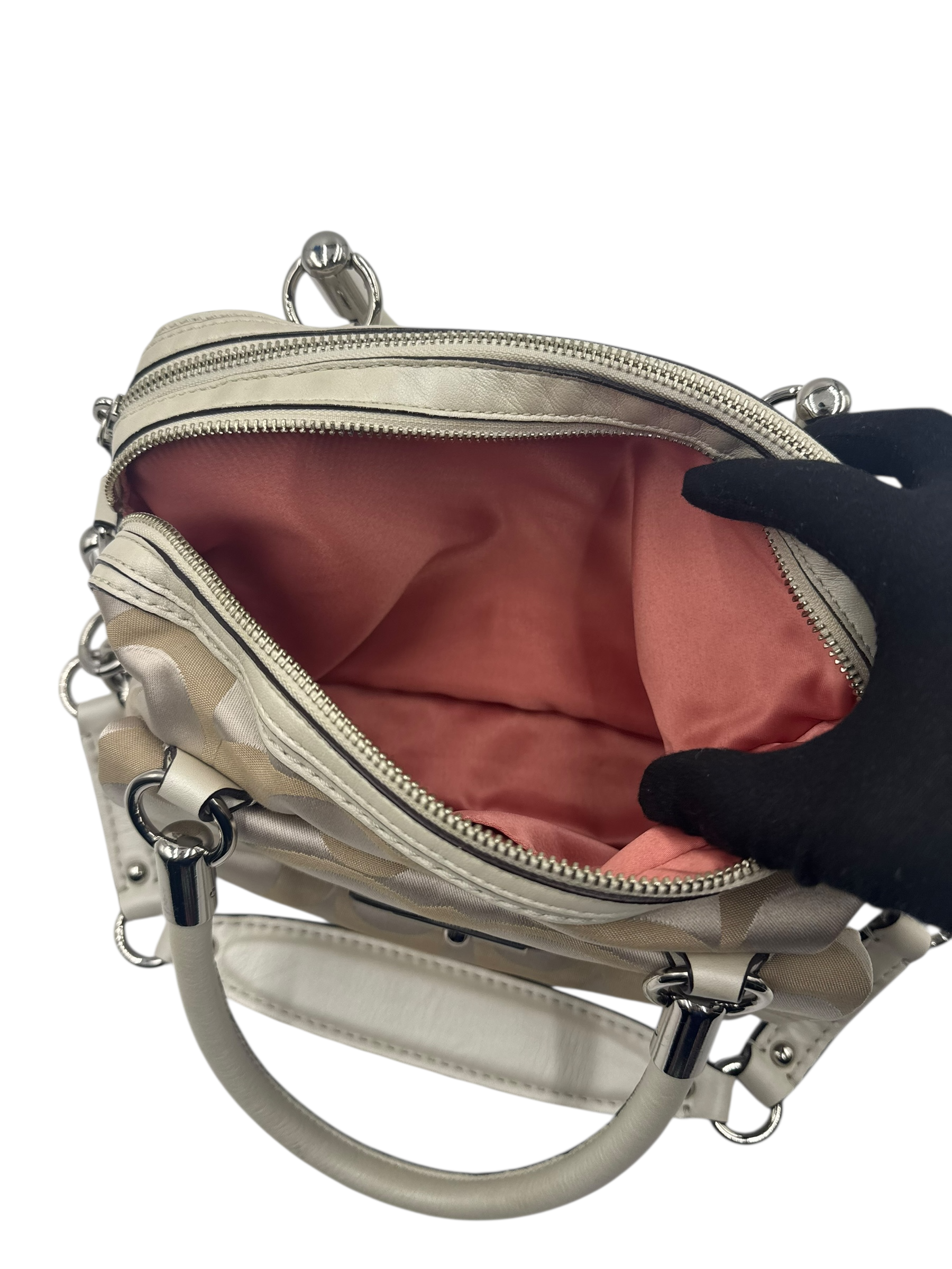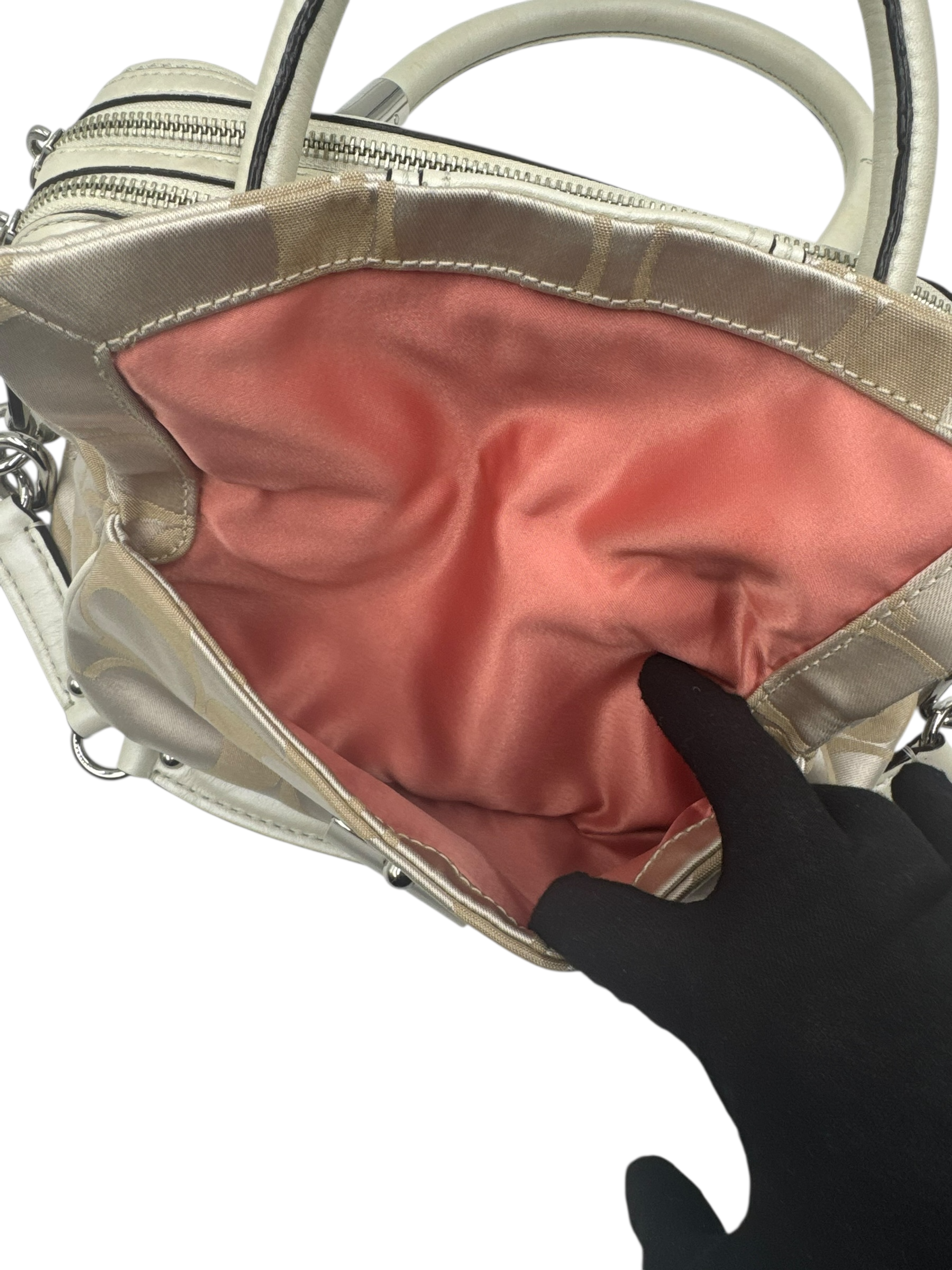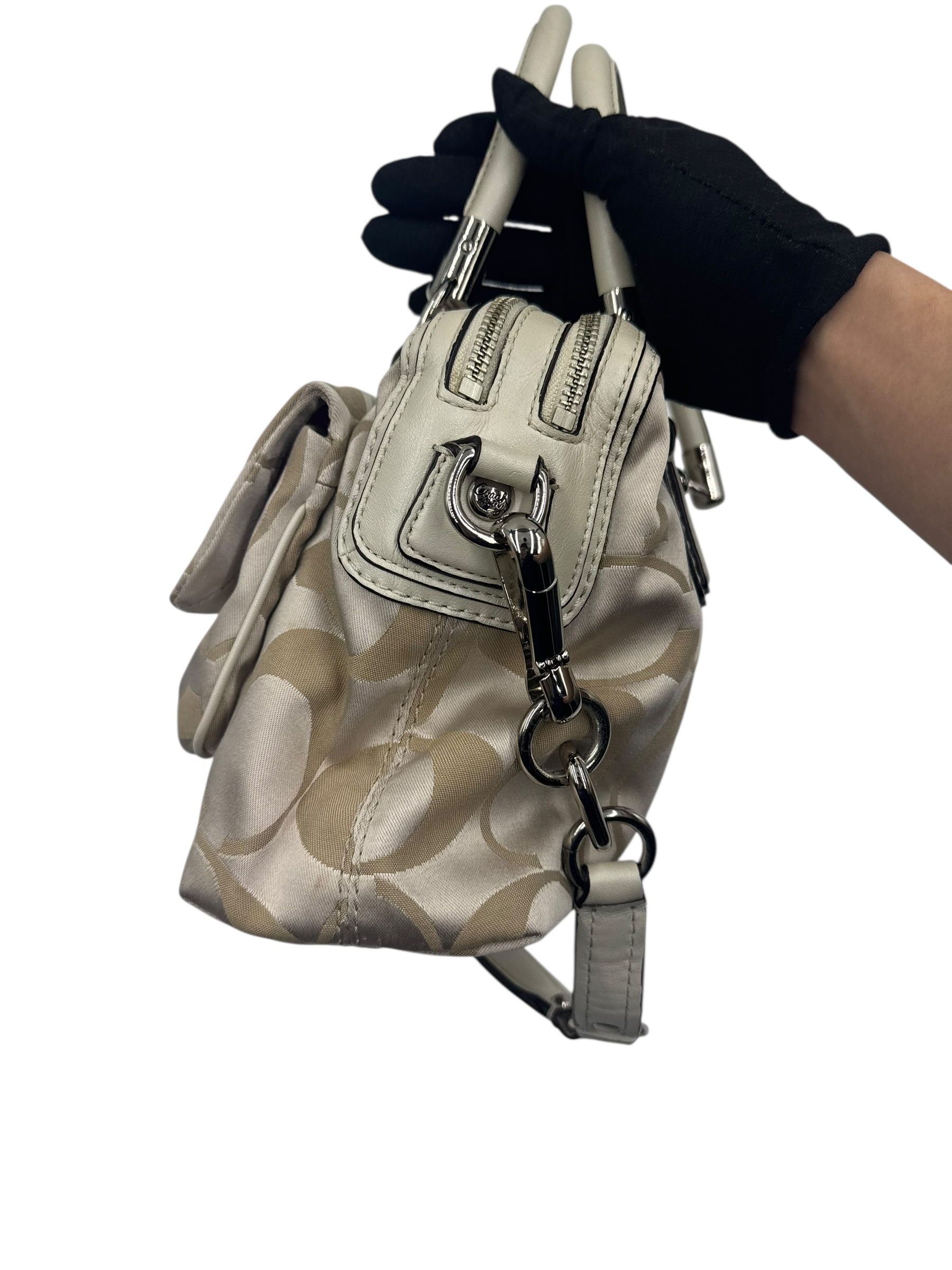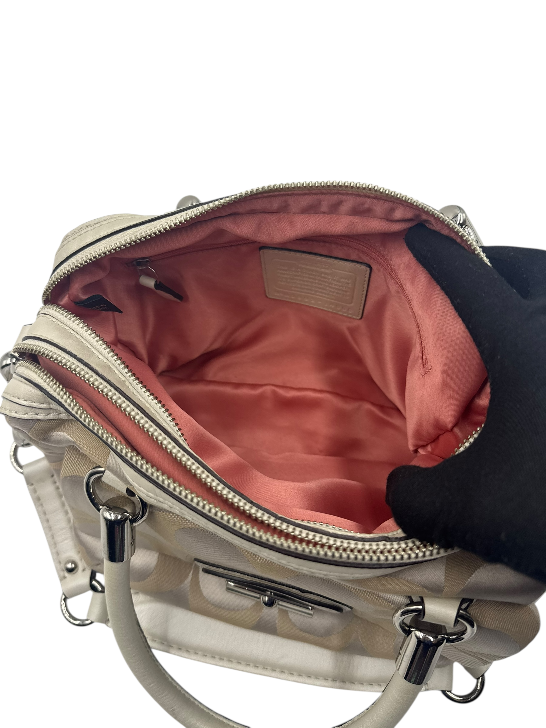 COACH KHAKI SIGNATURE SATCHEL BAG