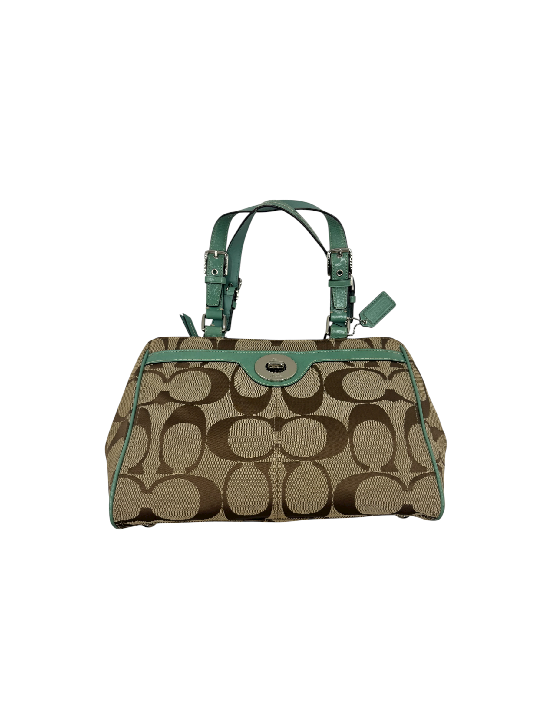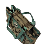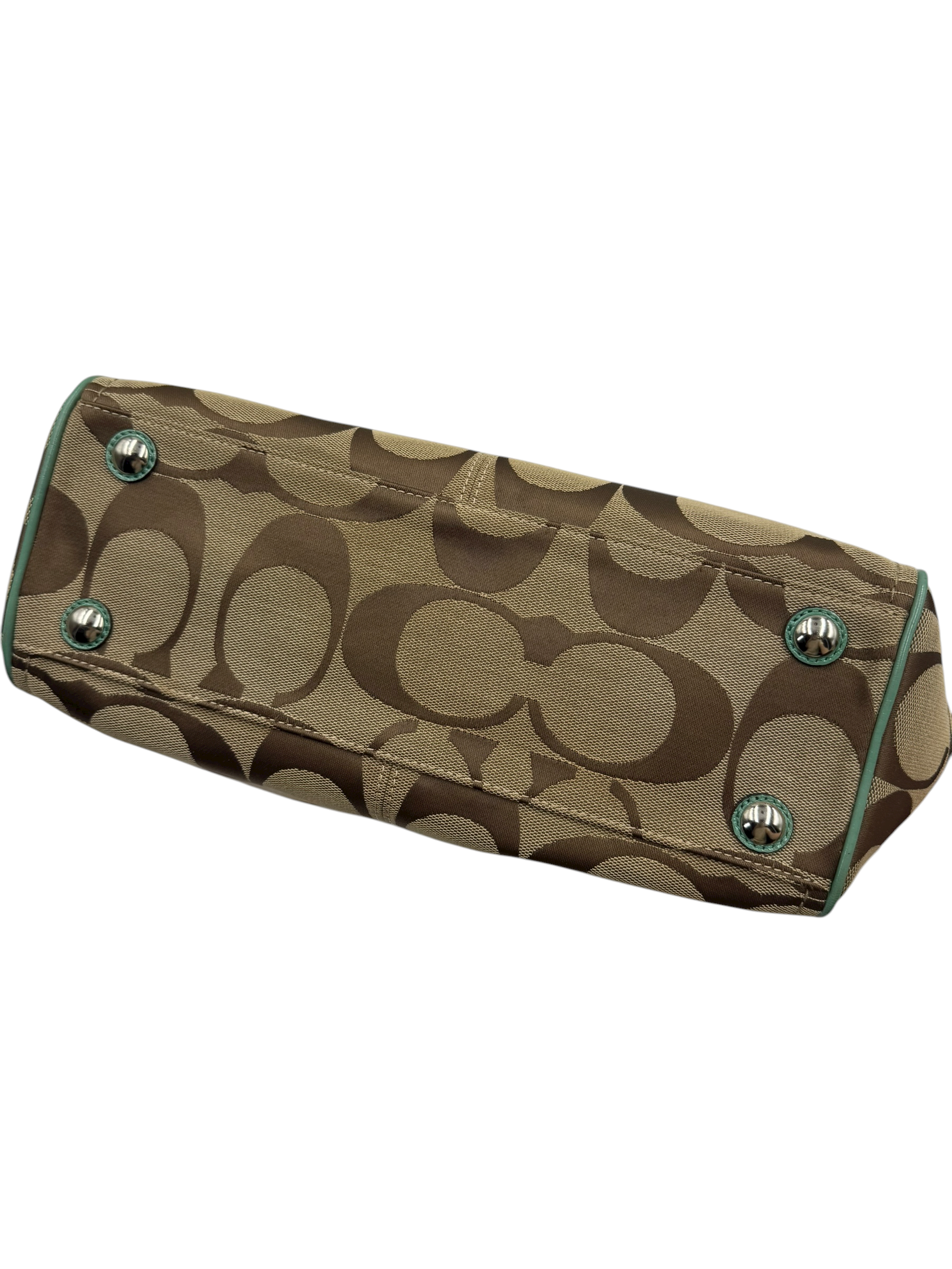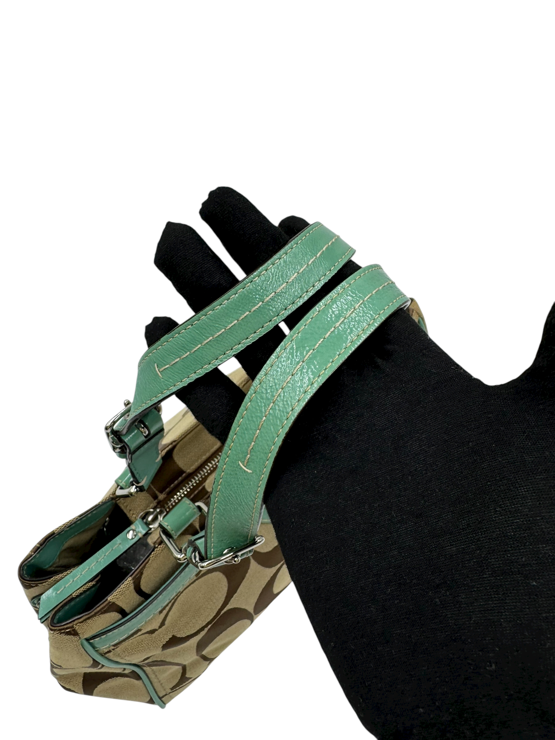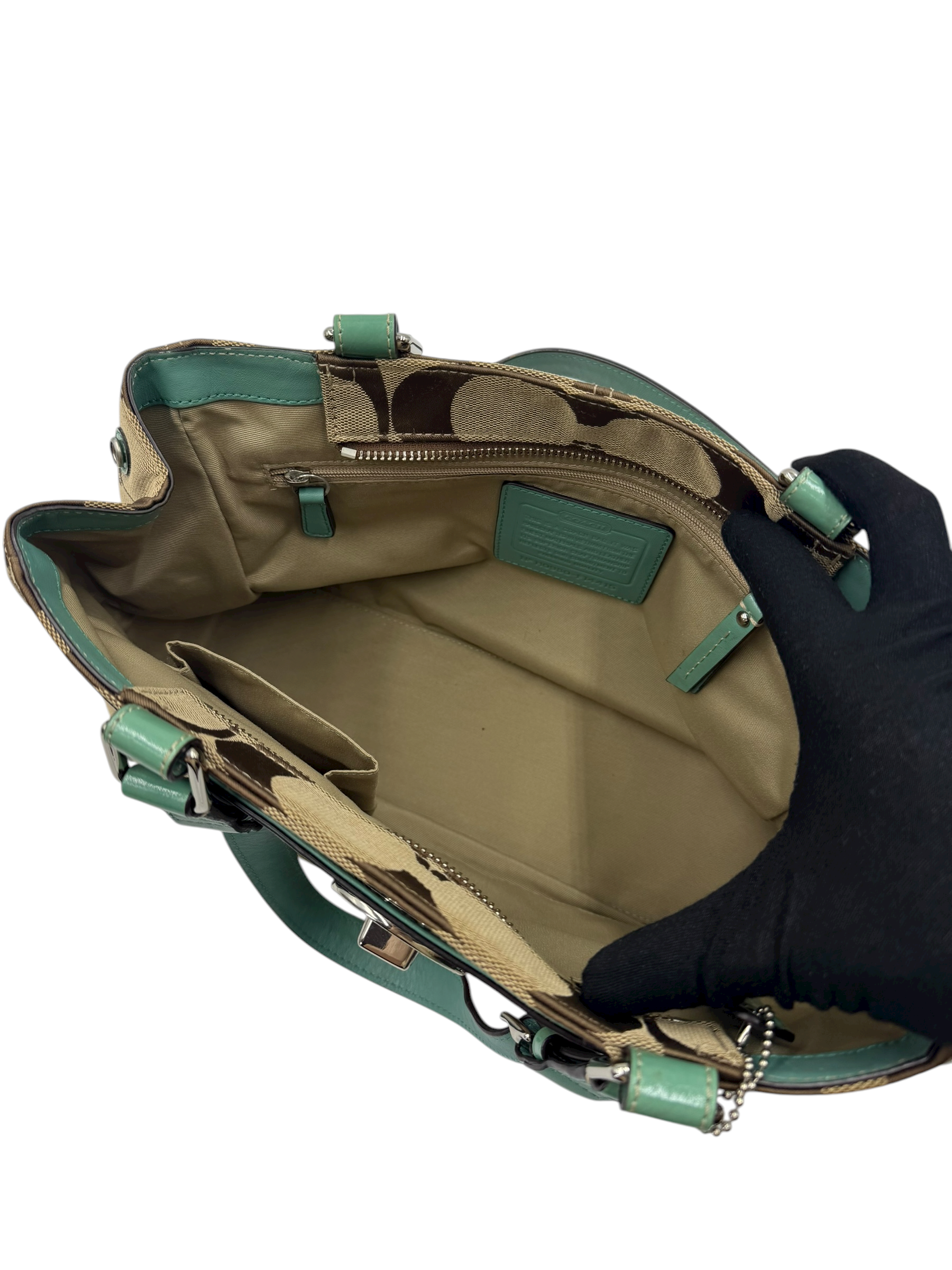 COACH SIGNATURE KHAKI AND GREEN SATCHEL BAG