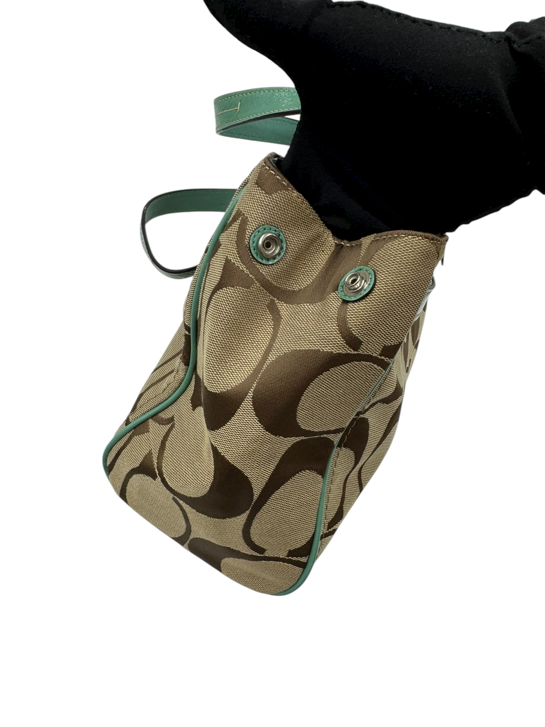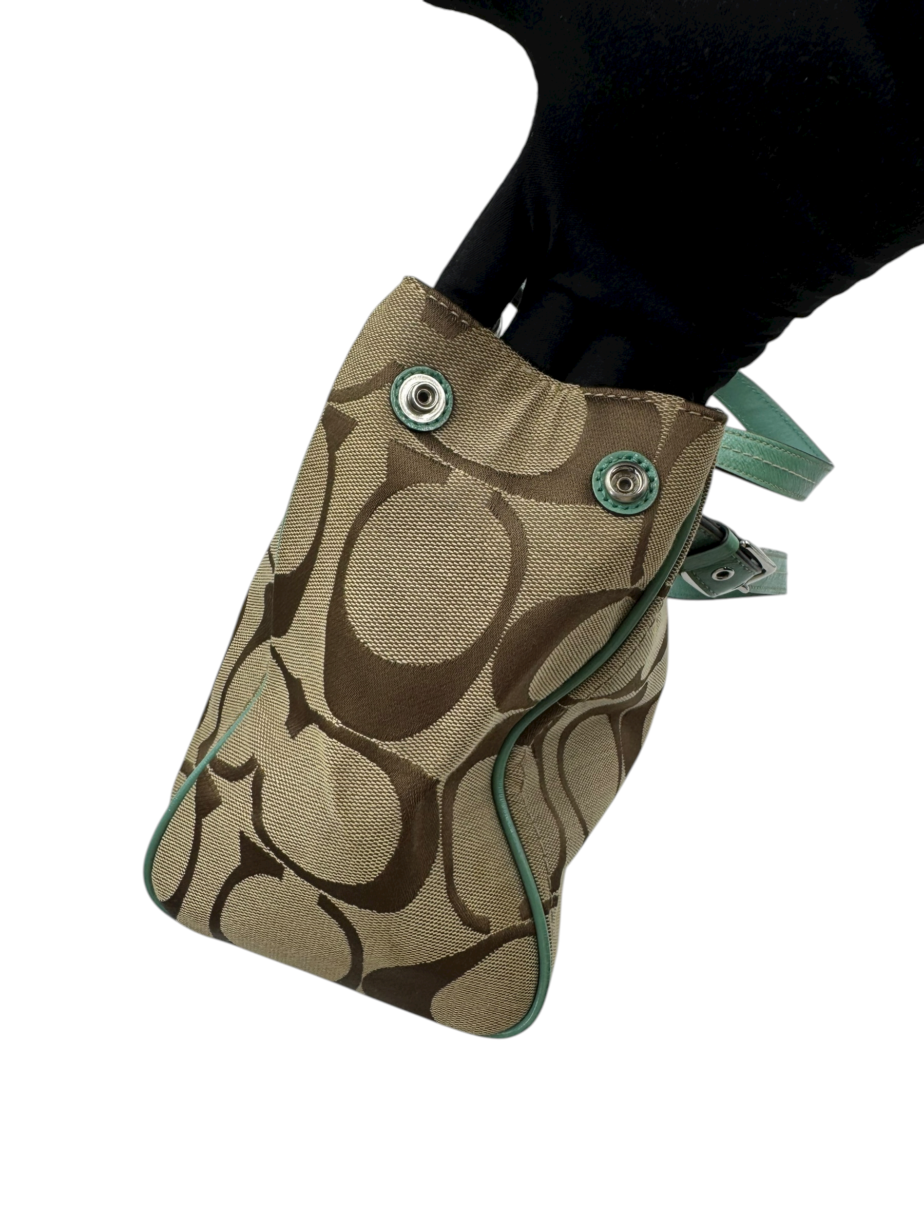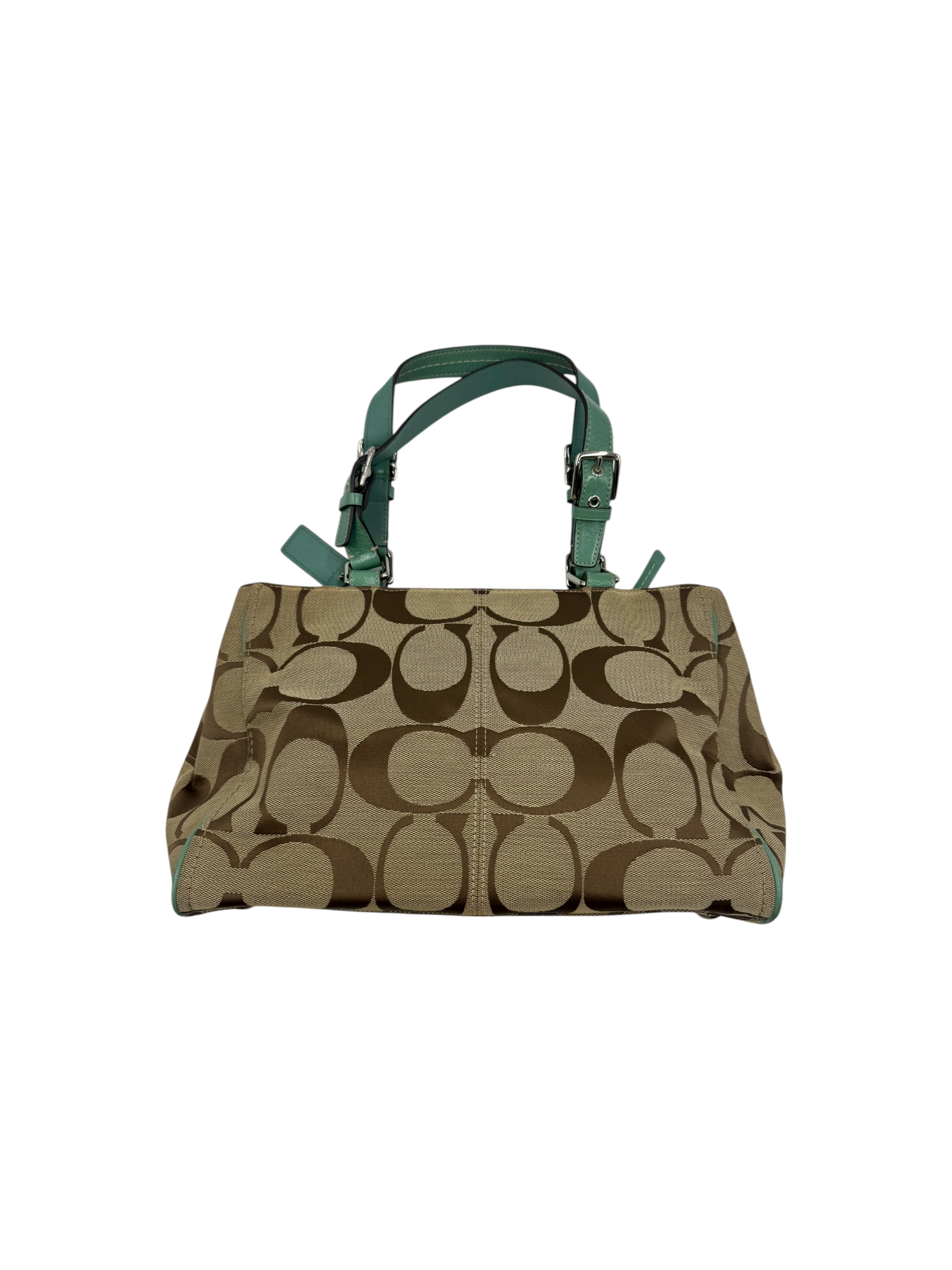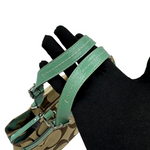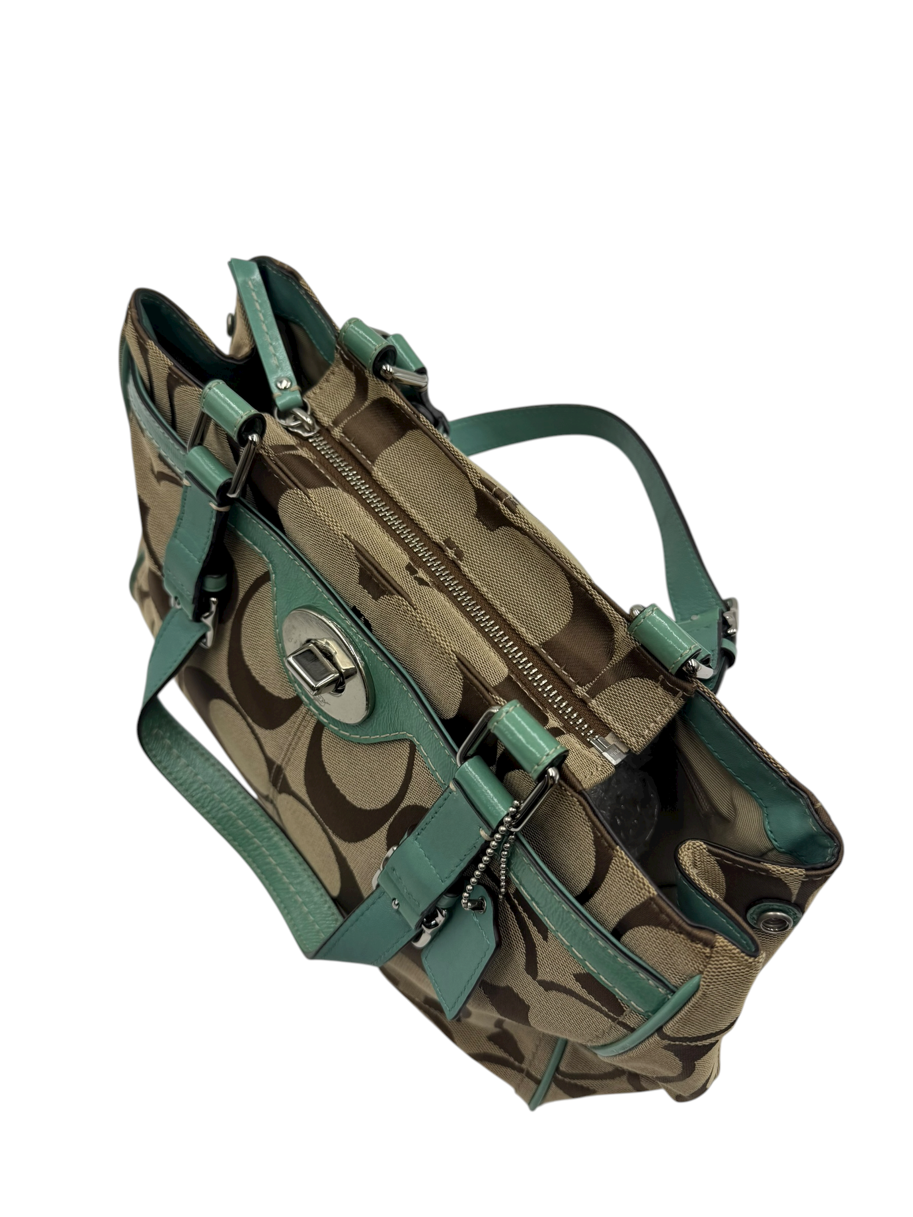 COACH SIGNATURE KHAKI AND GREEN SATCHEL BAG