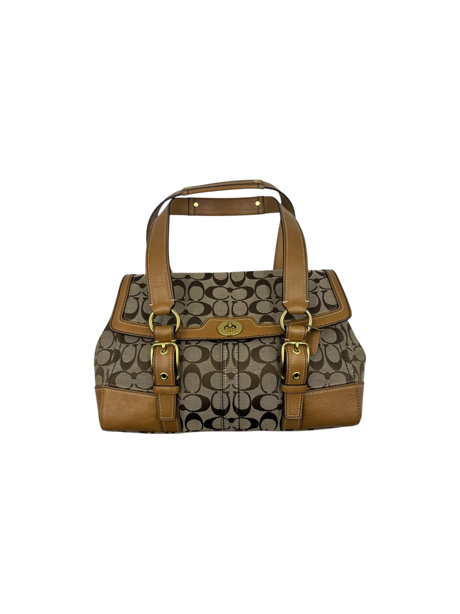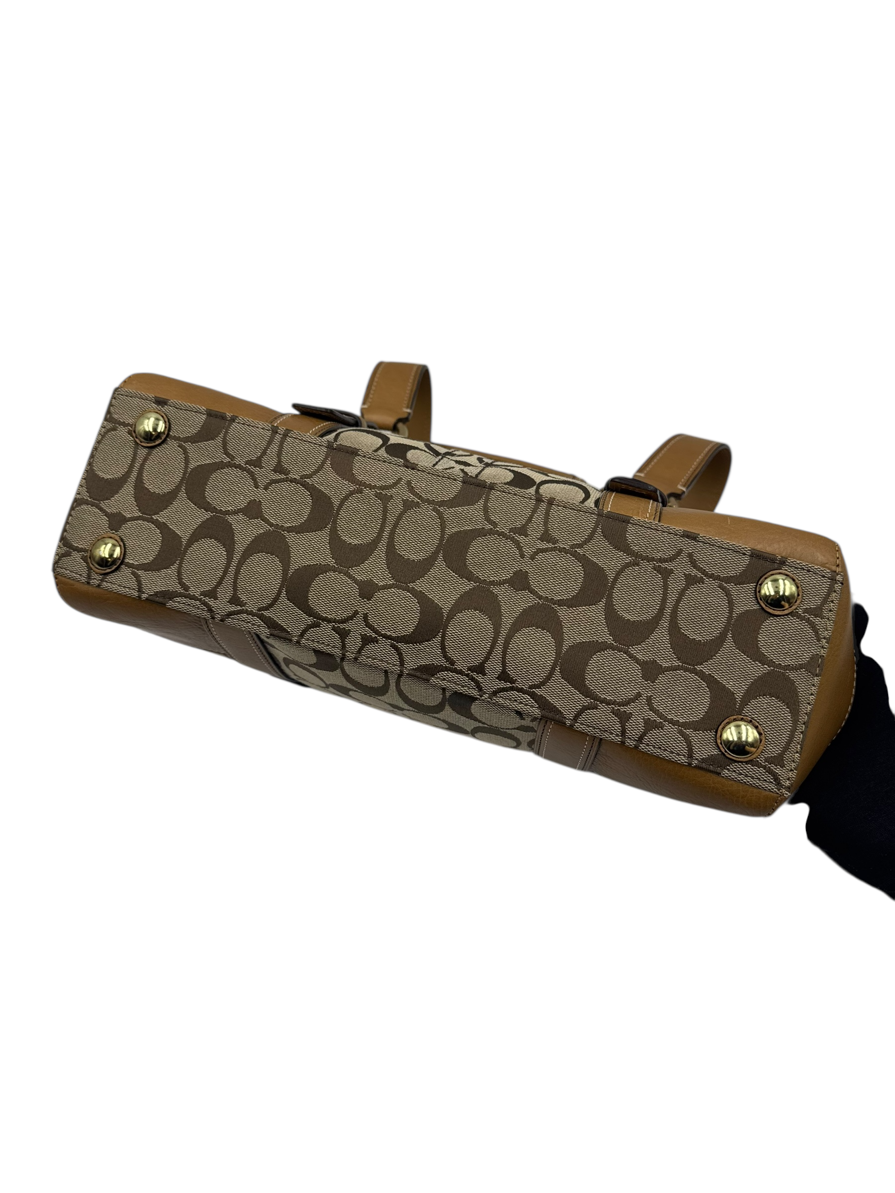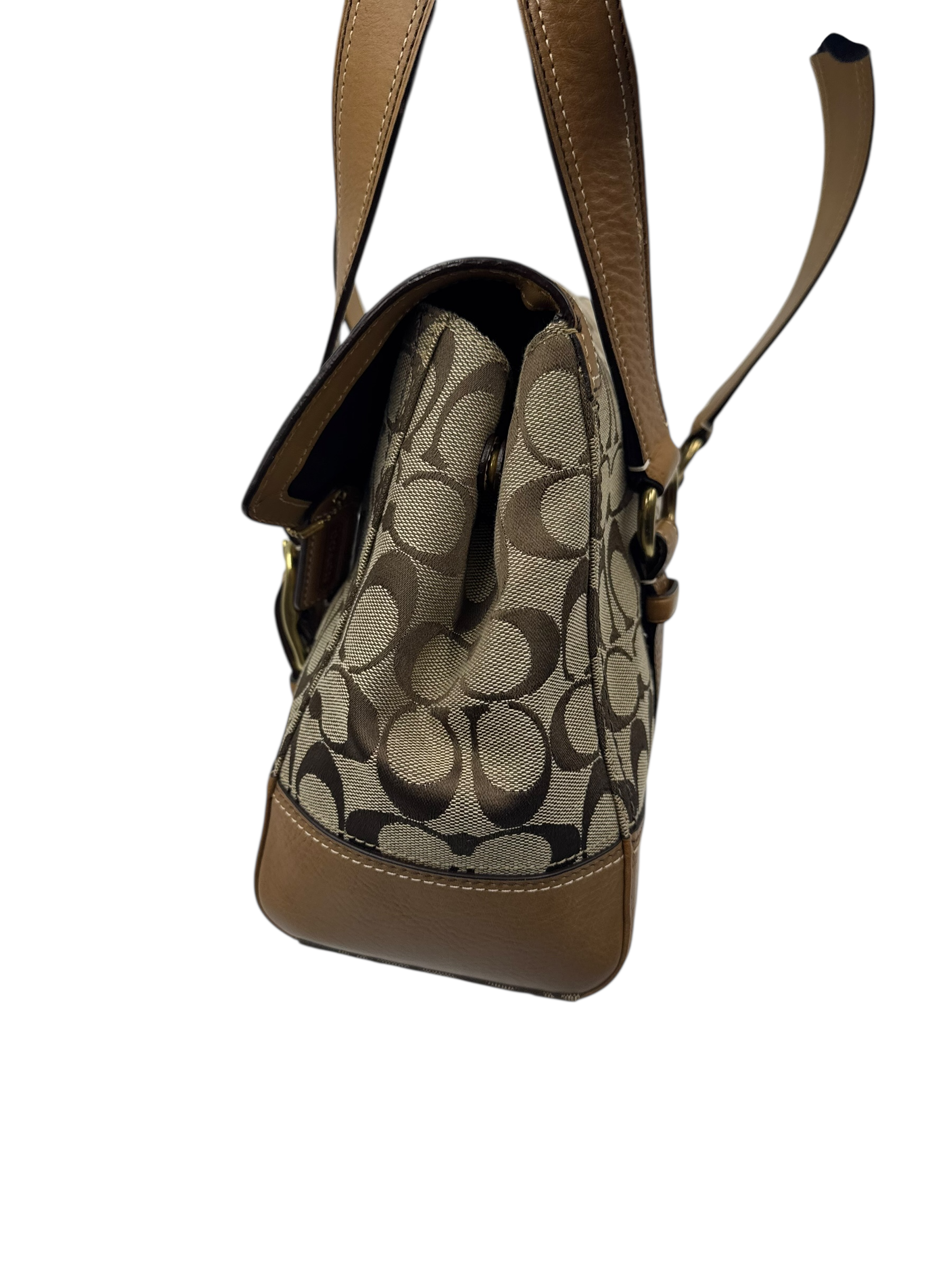 COACH BROWN SIGNATURE TURNLOCK SATCHEL