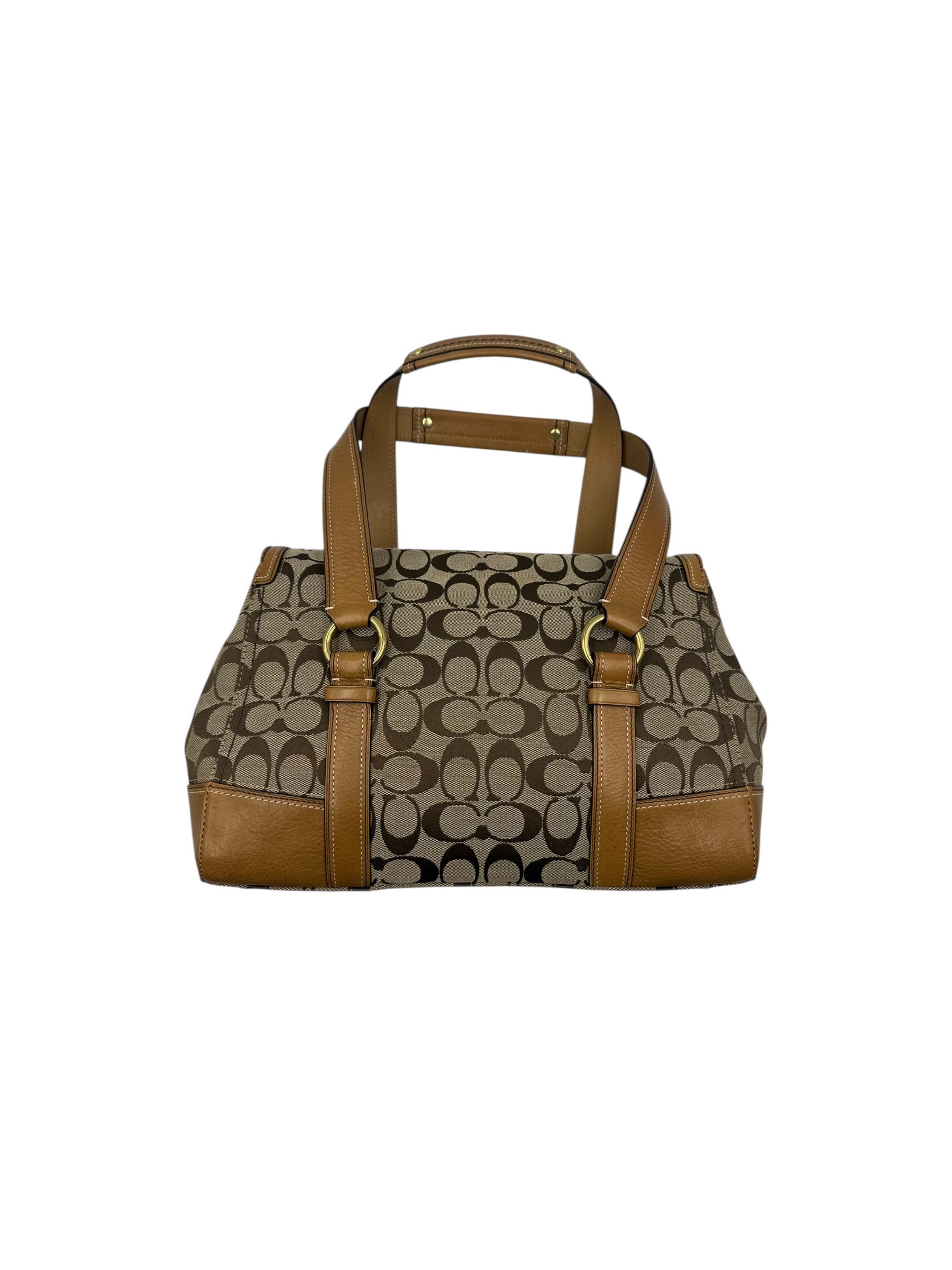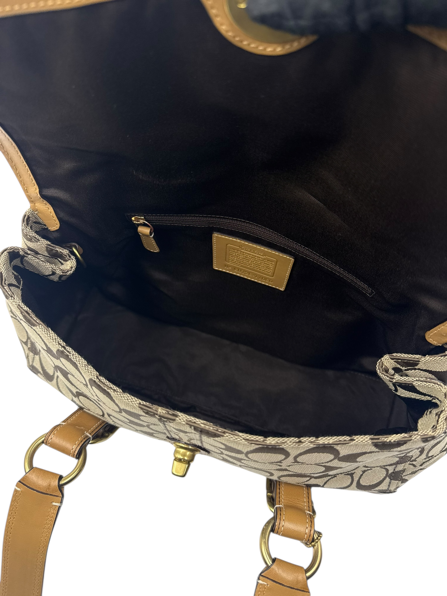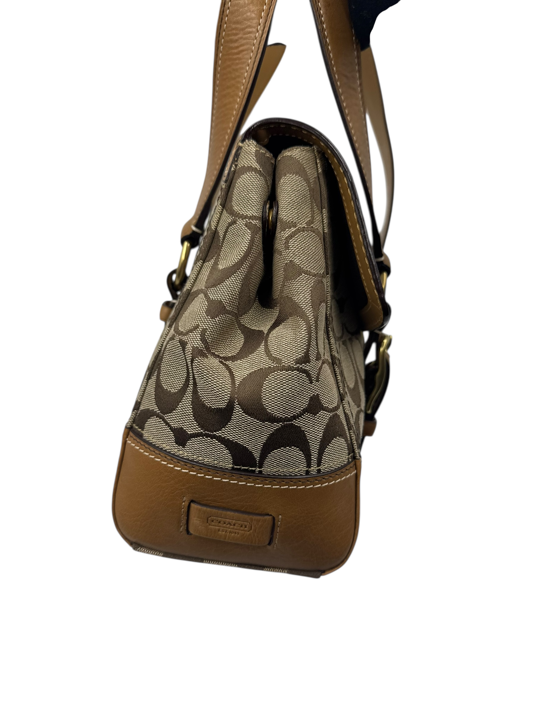 COACH BROWN SIGNATURE TURNLOCK SATCHEL