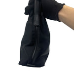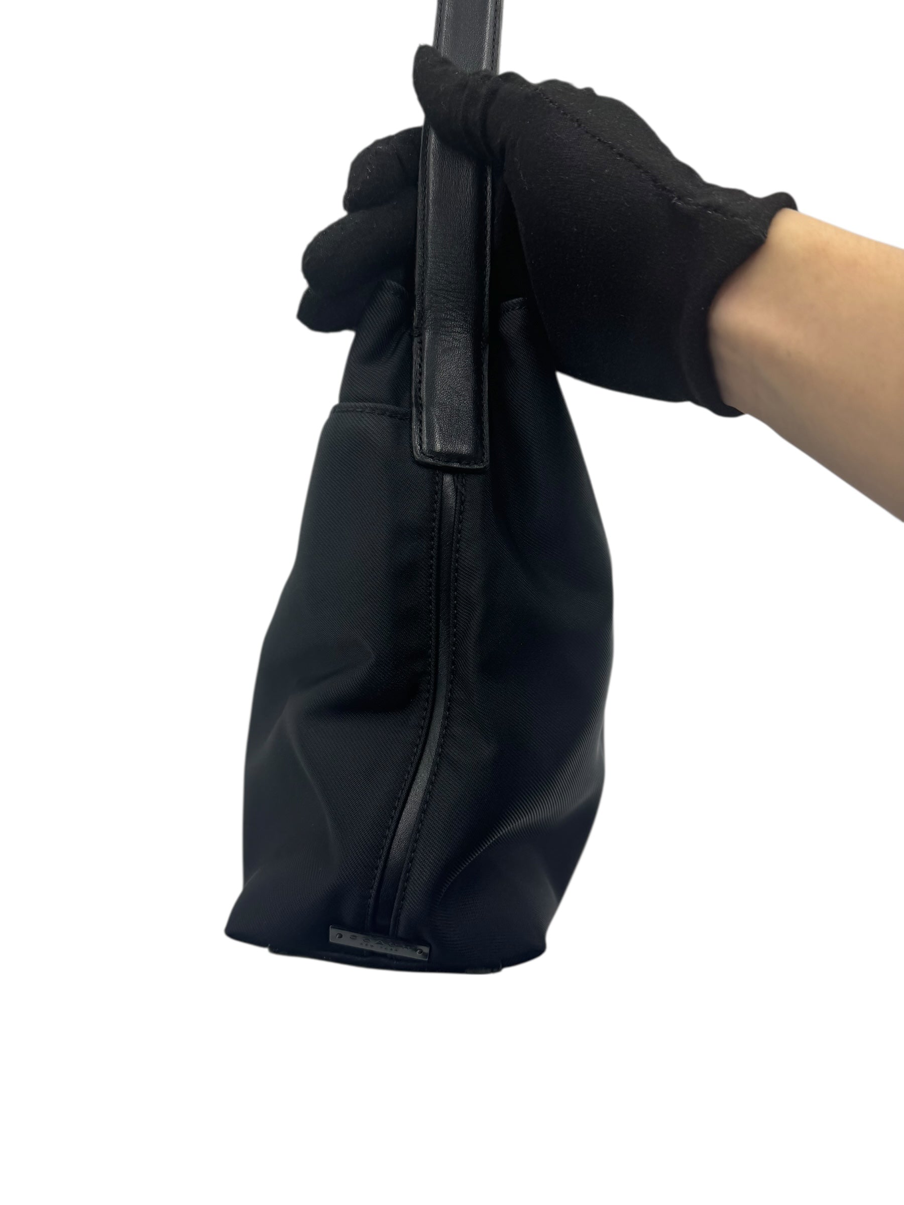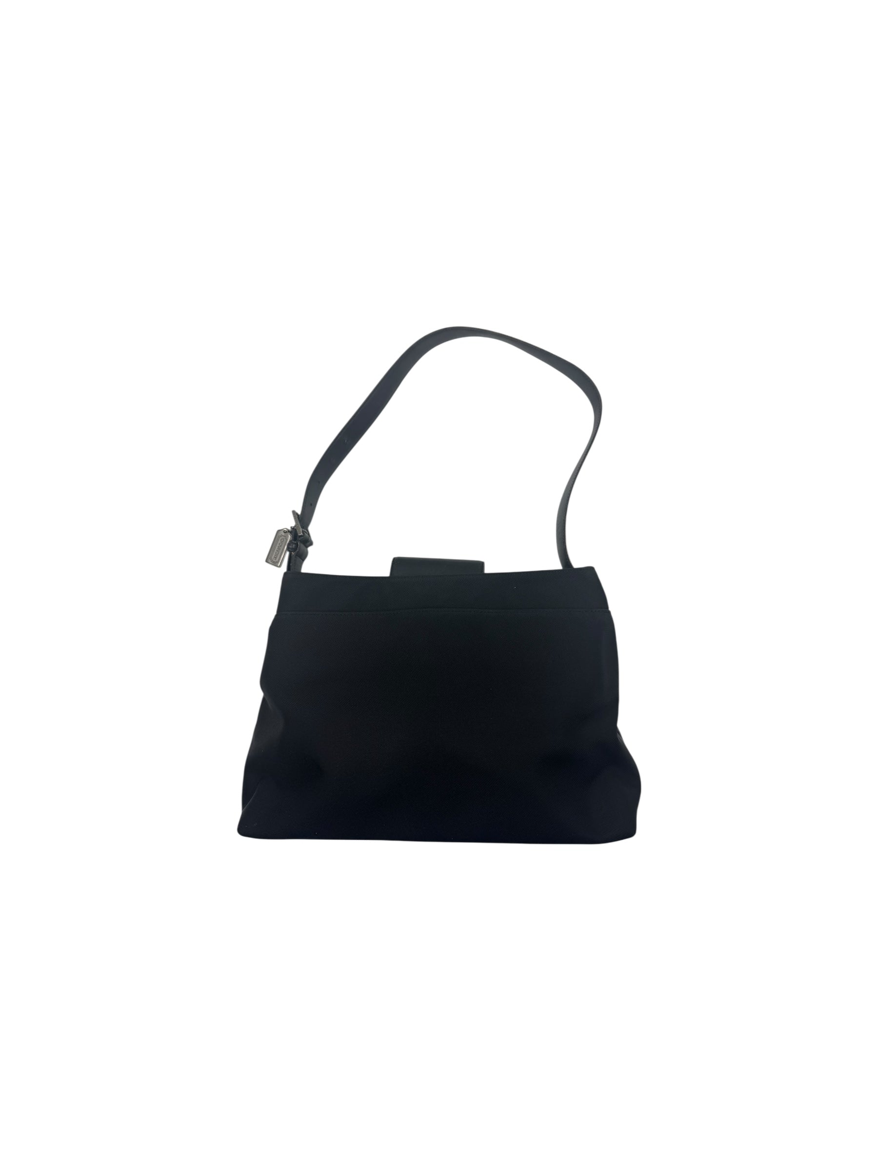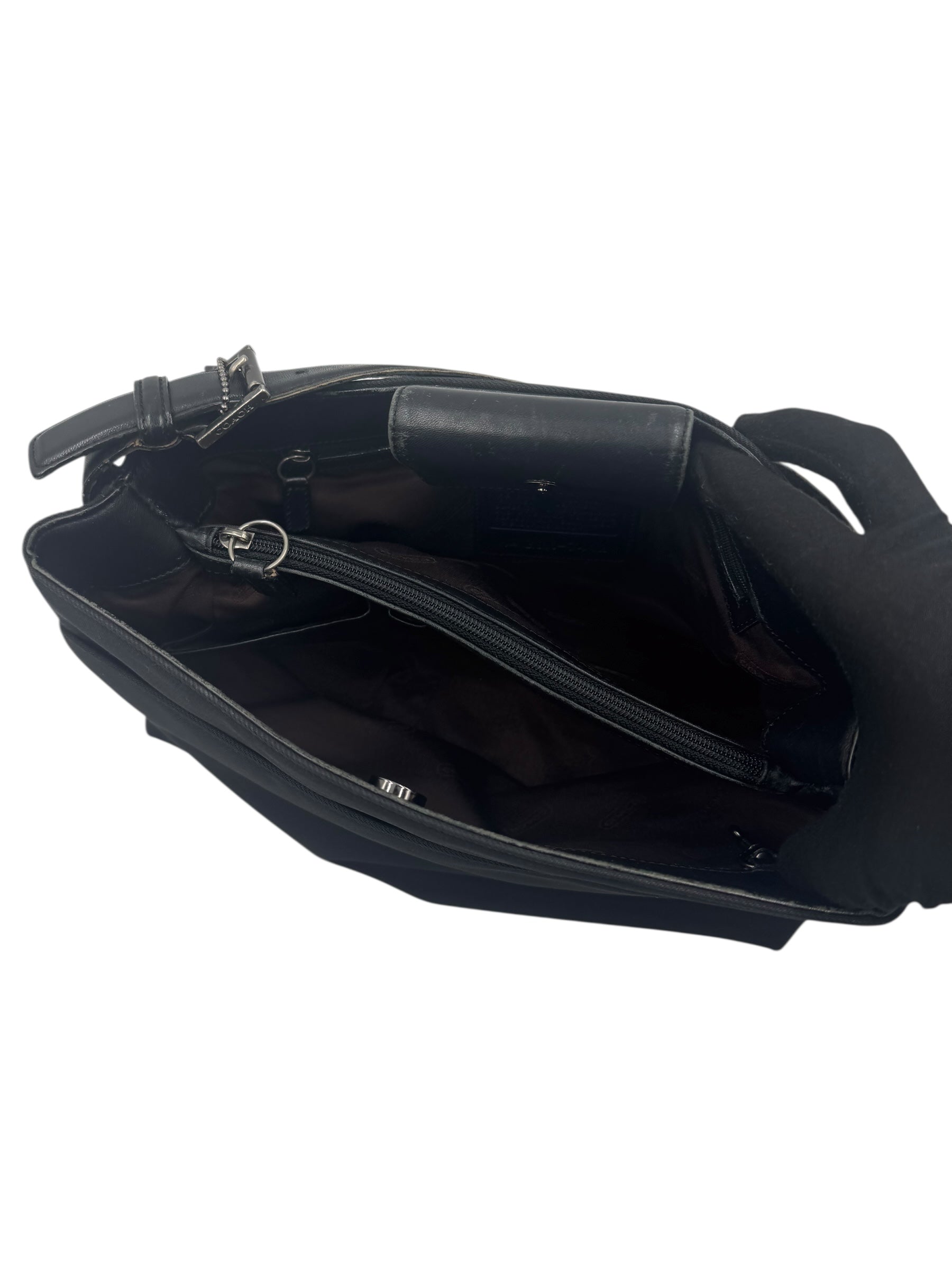 Classic black Coach shoulder bag featuring durable nylon material, leather strap, and top magnetic closure.