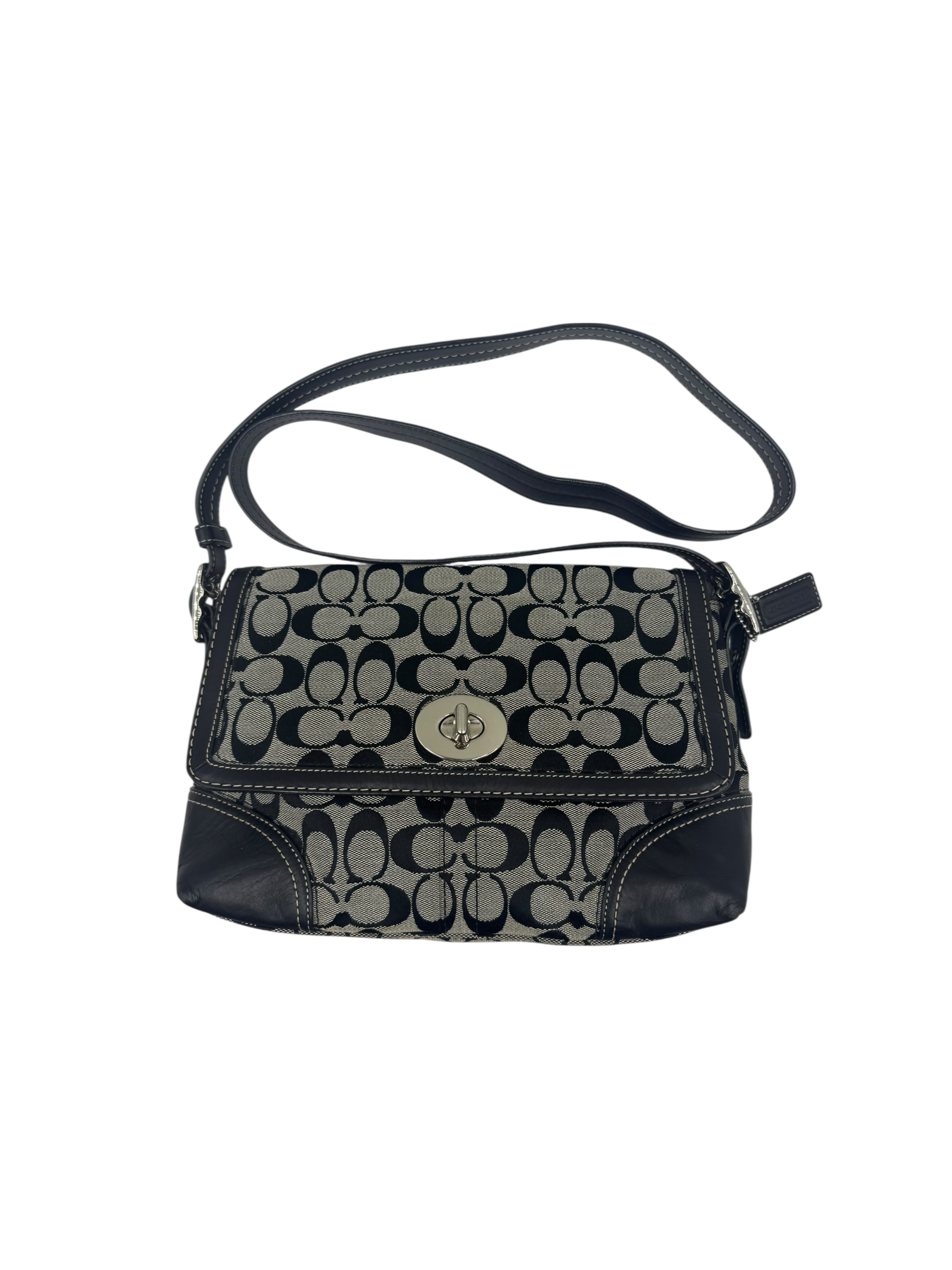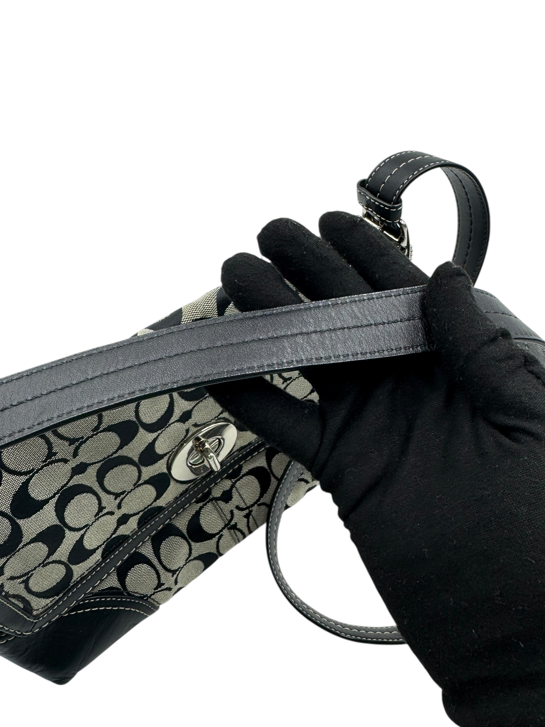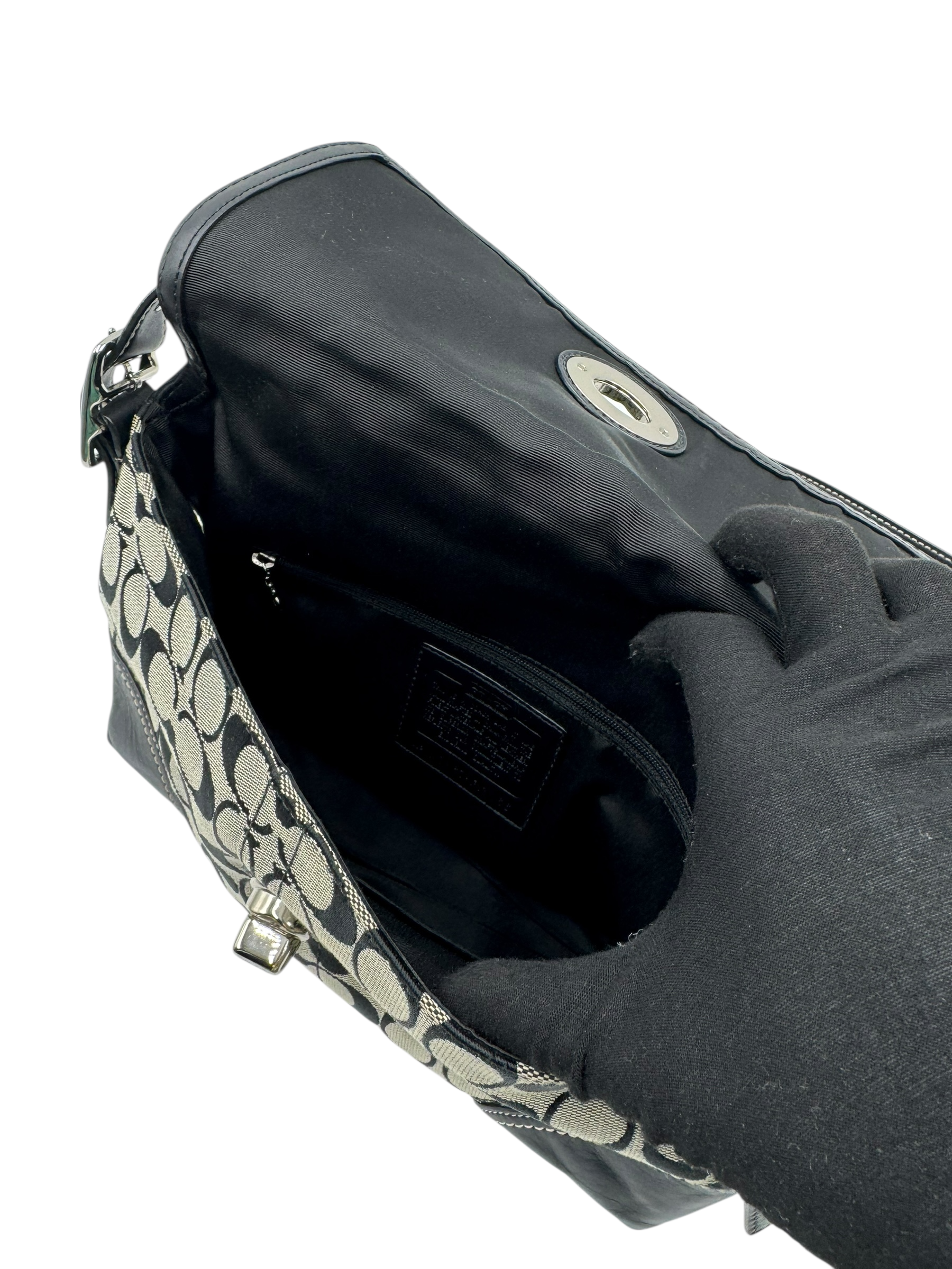 COACH BLACK SIGNATURE TURNLOCK SHOULDER BAG