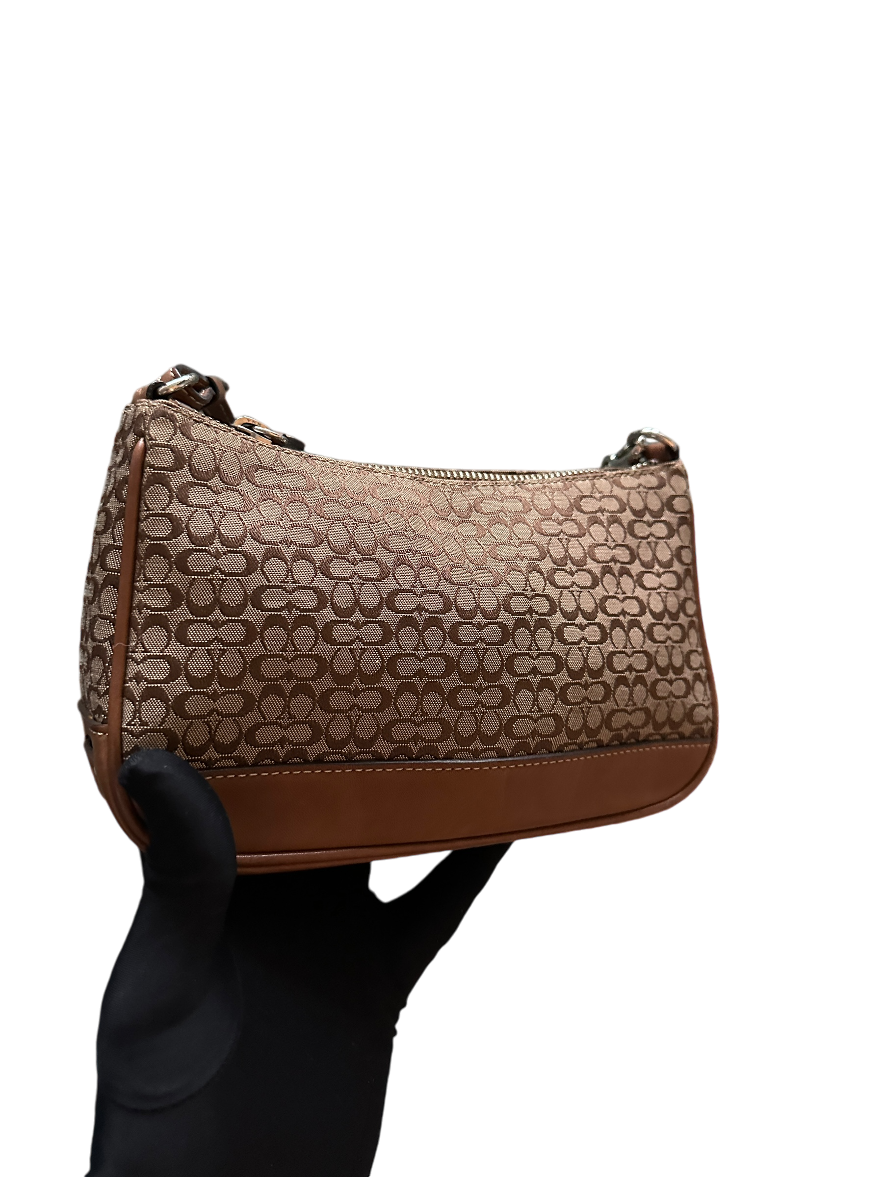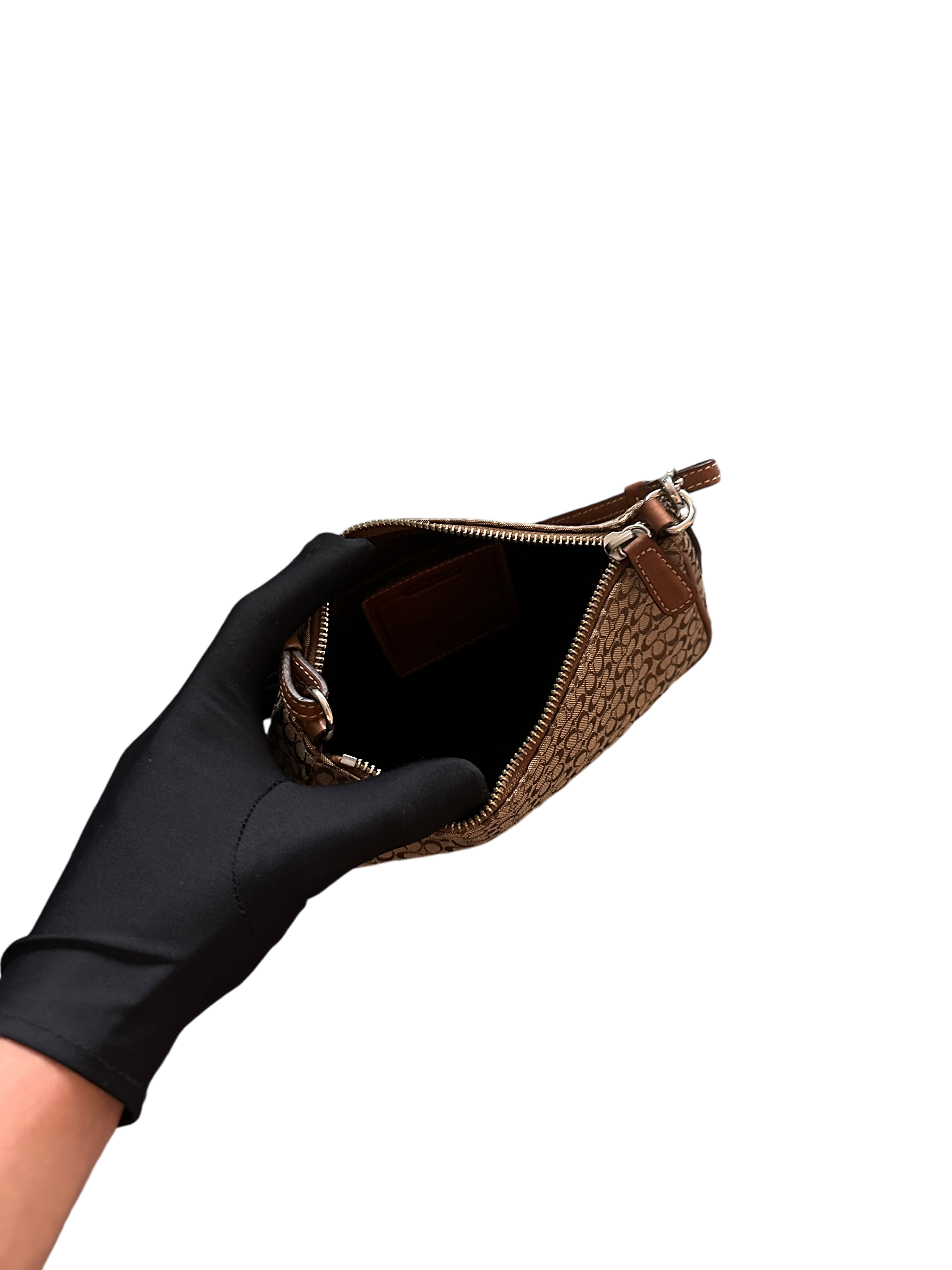 COACH BROWN MINI MONOGRAM POCHETTE BAG