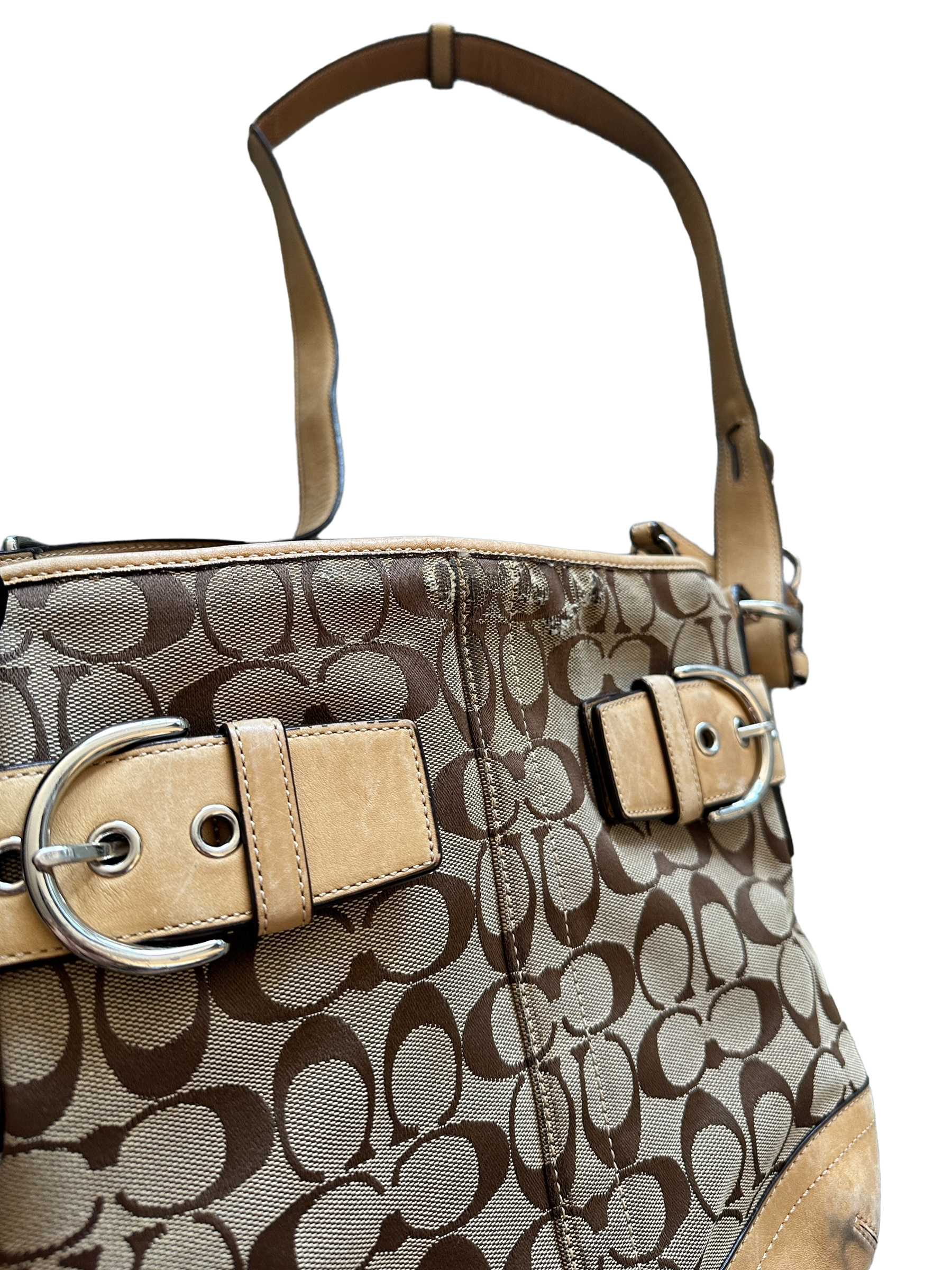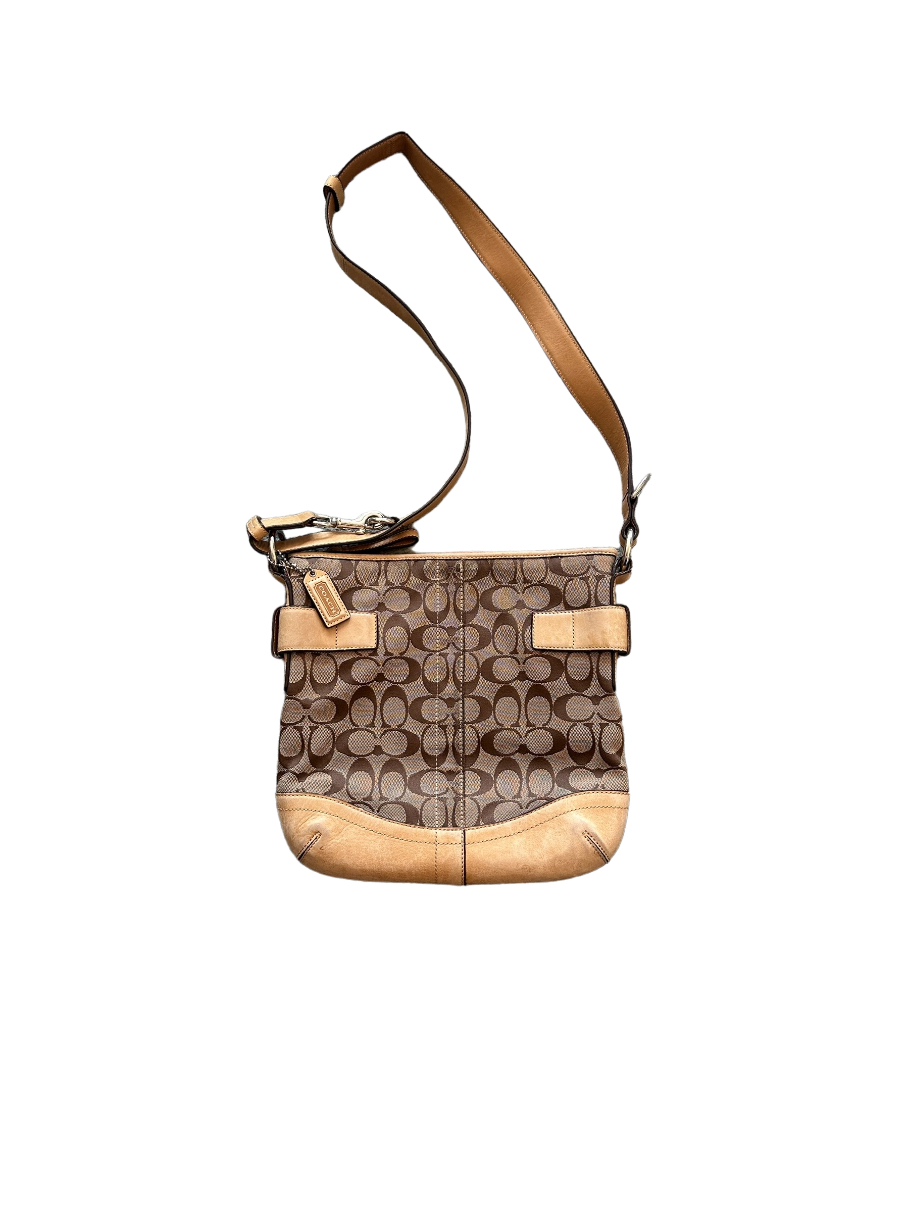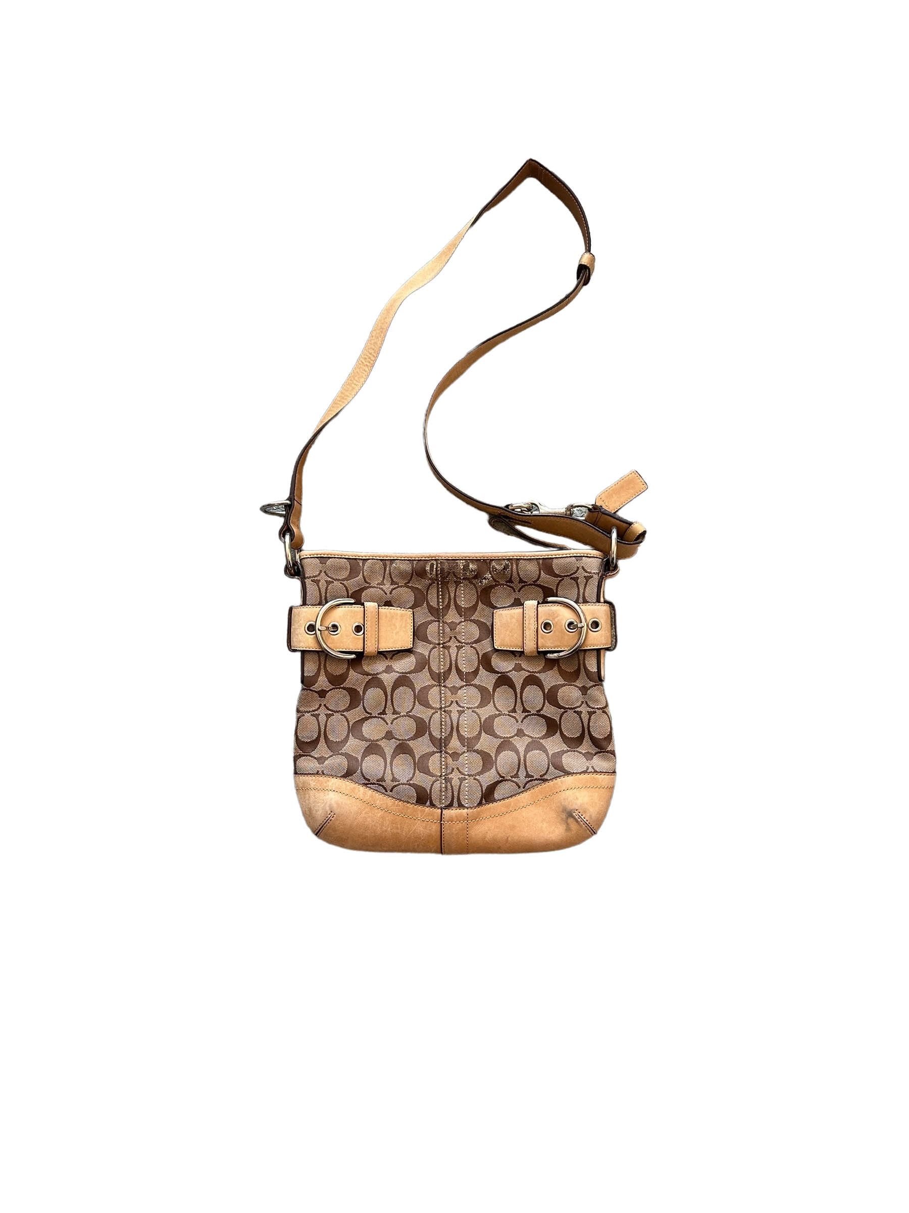 COACH BROWN MONOGRAM DOUBLE BUCKLE MESSENGER BAG