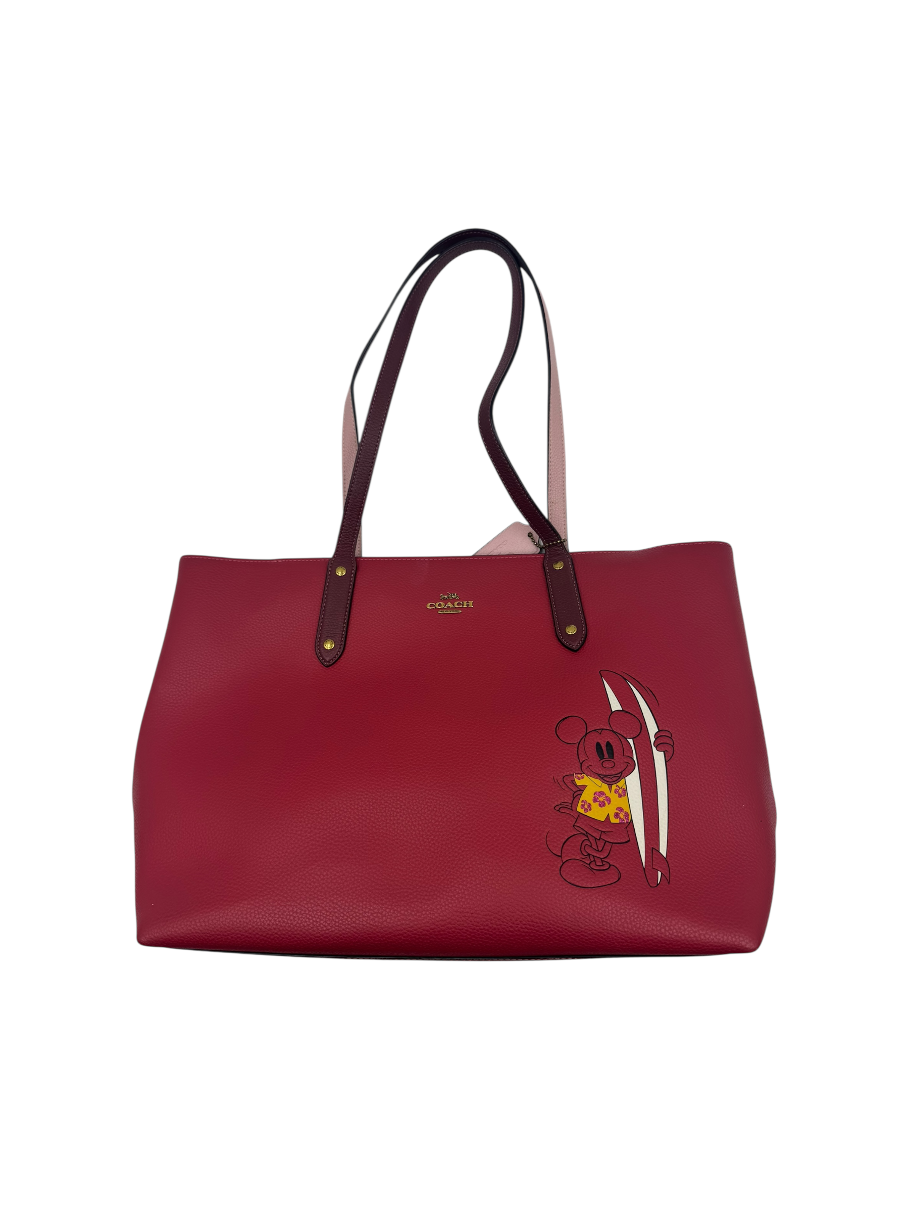 COACH X DISNEY MICKEY SURF RED LEATHER TOTE BAG