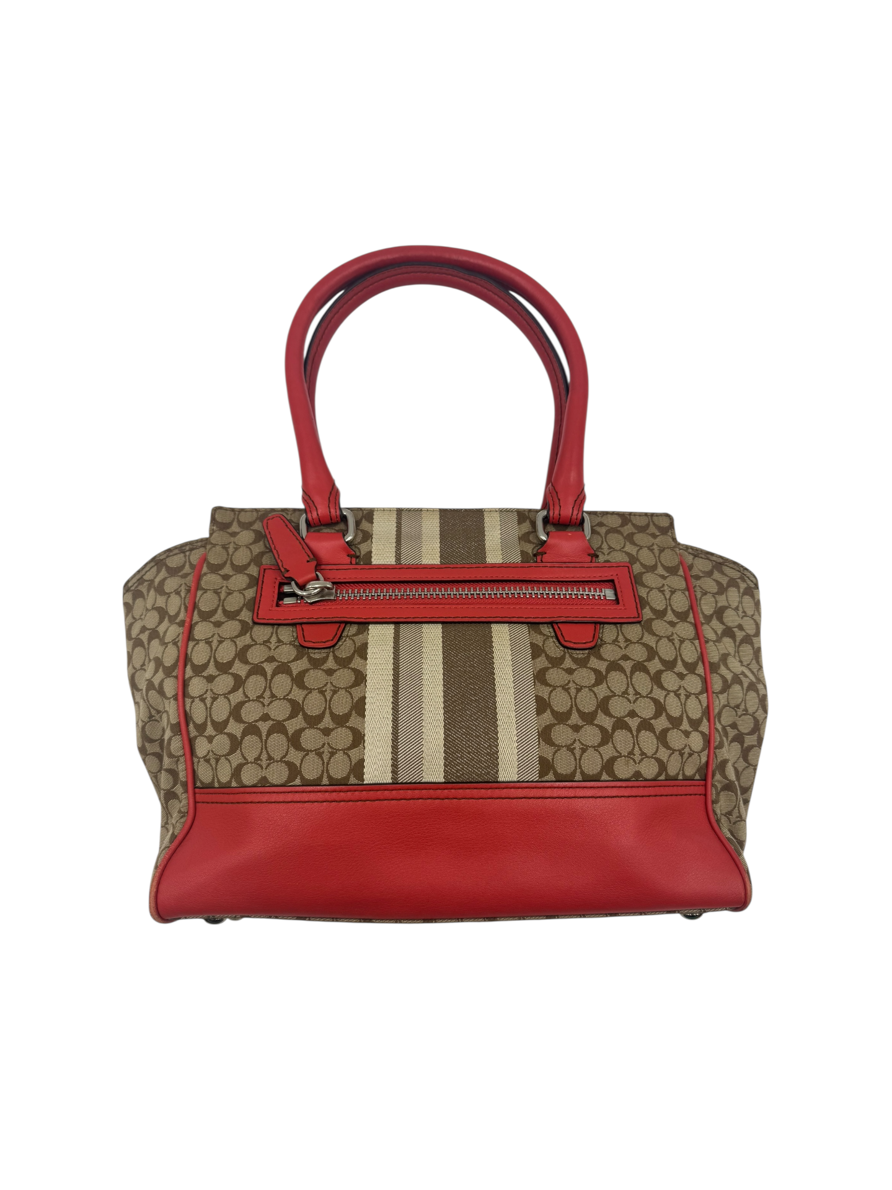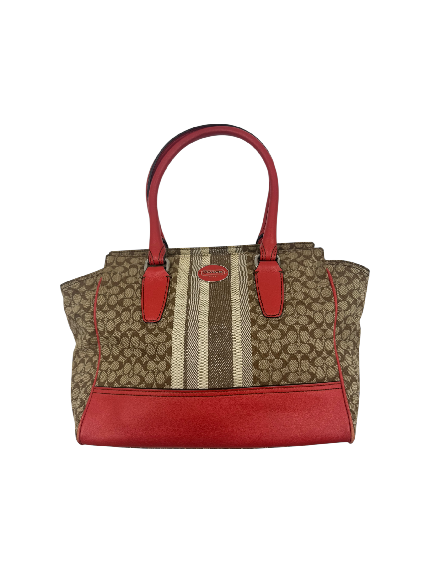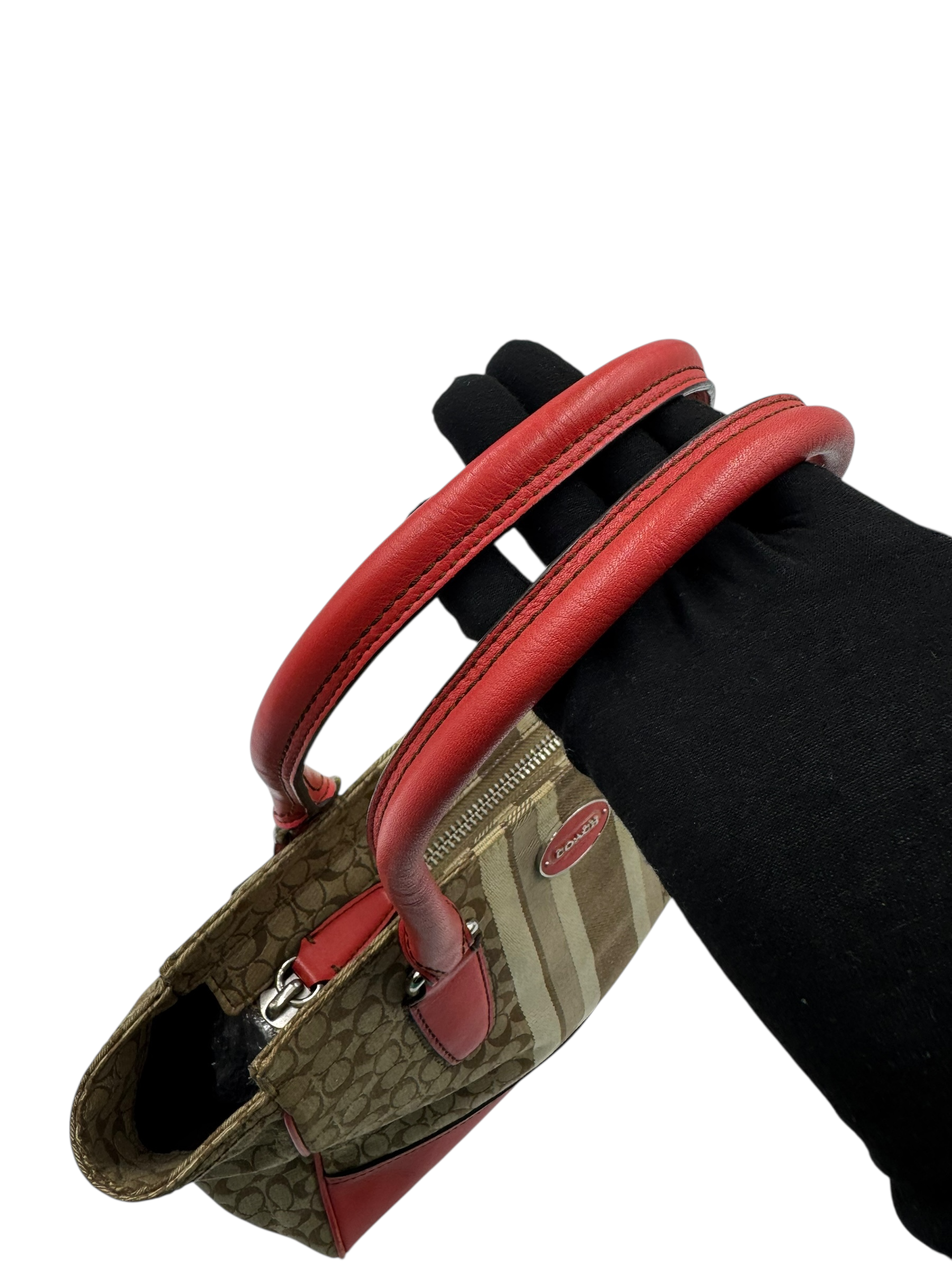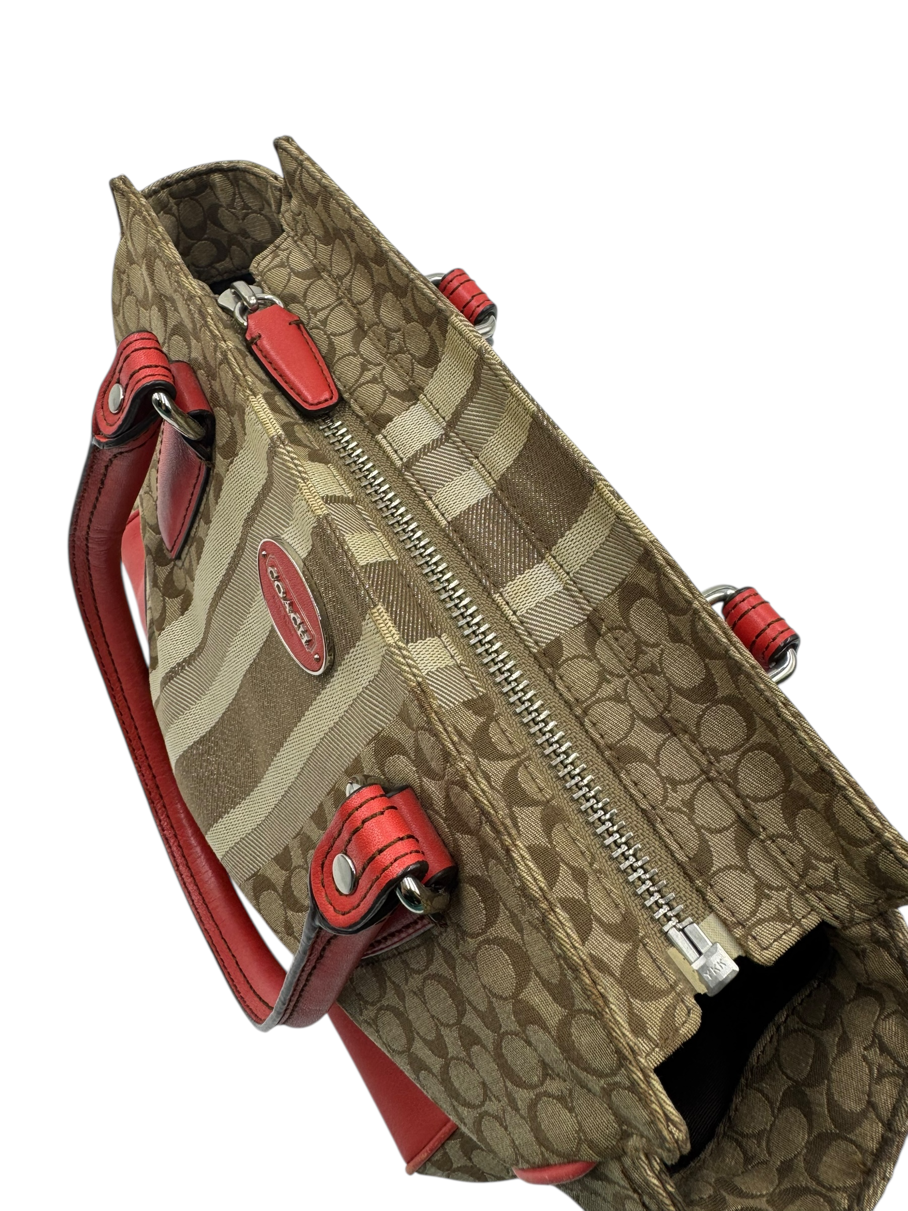 COACH SIGNATURE STRIPE RED LEATHER TOTE BAG