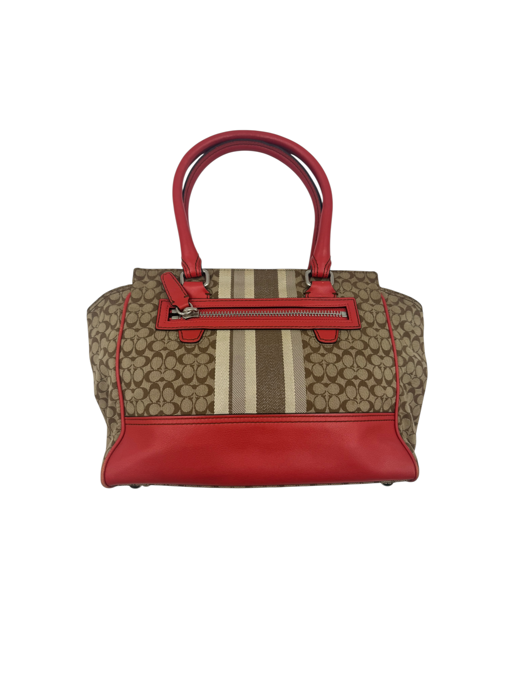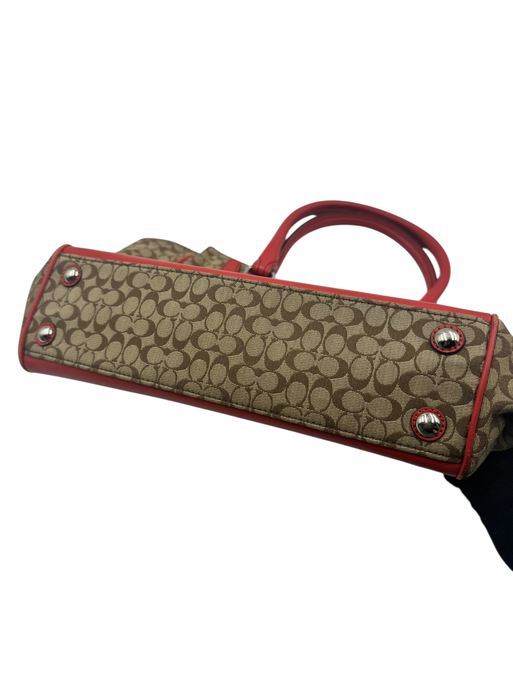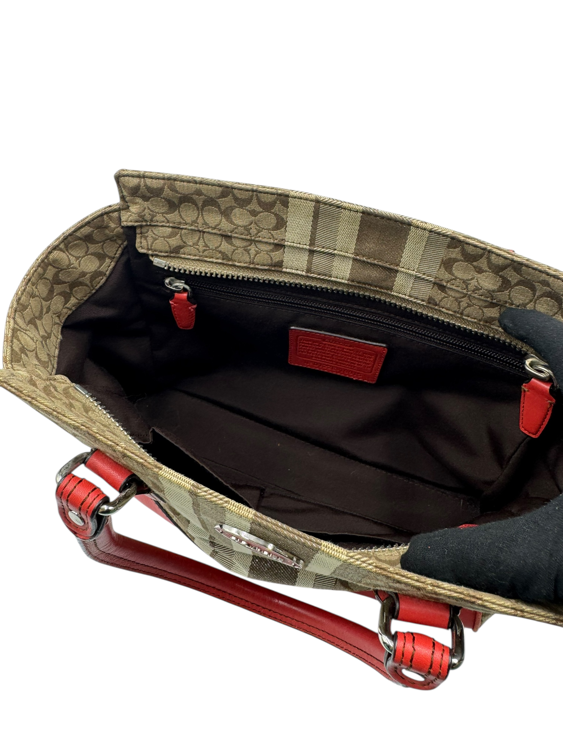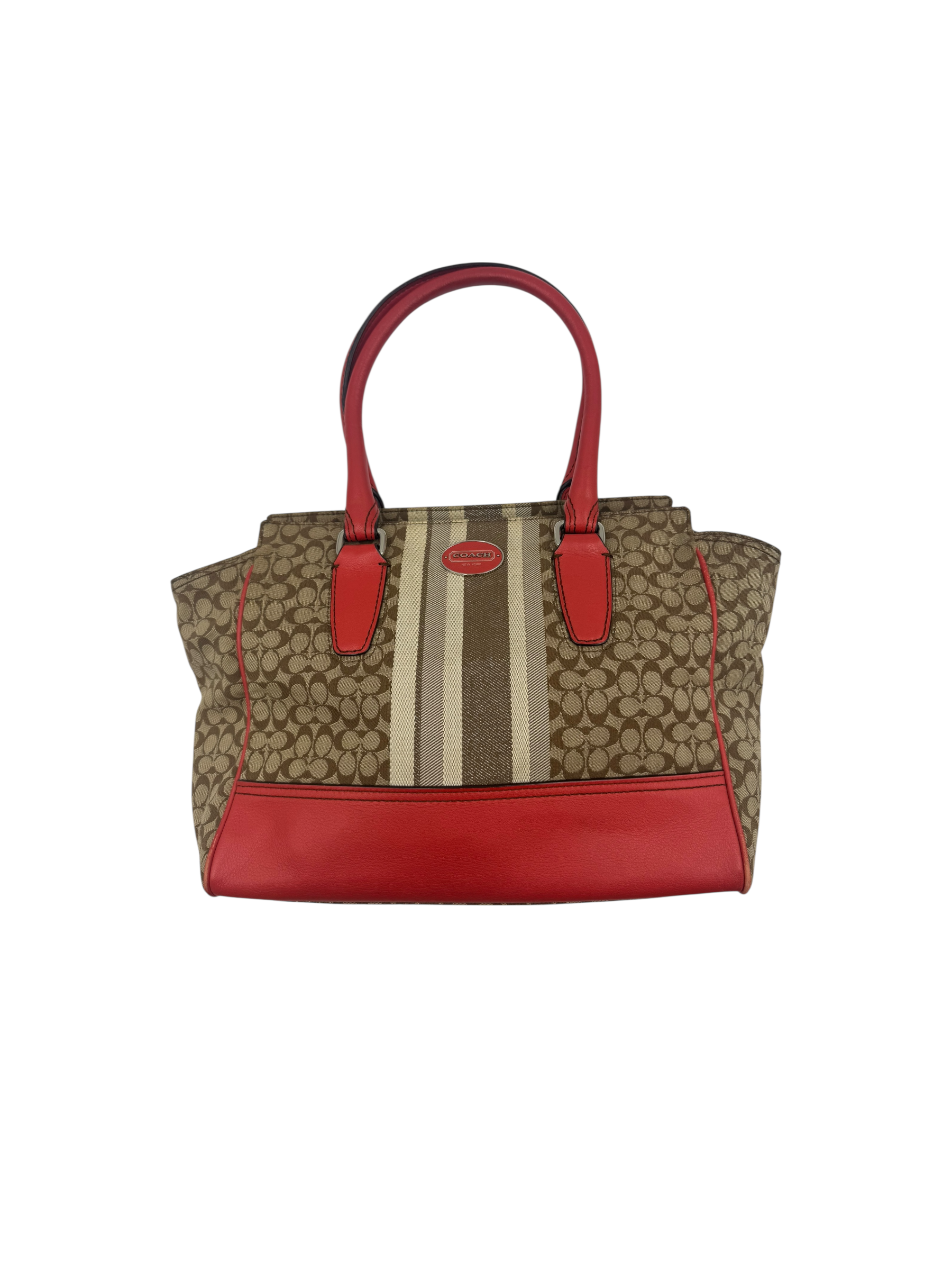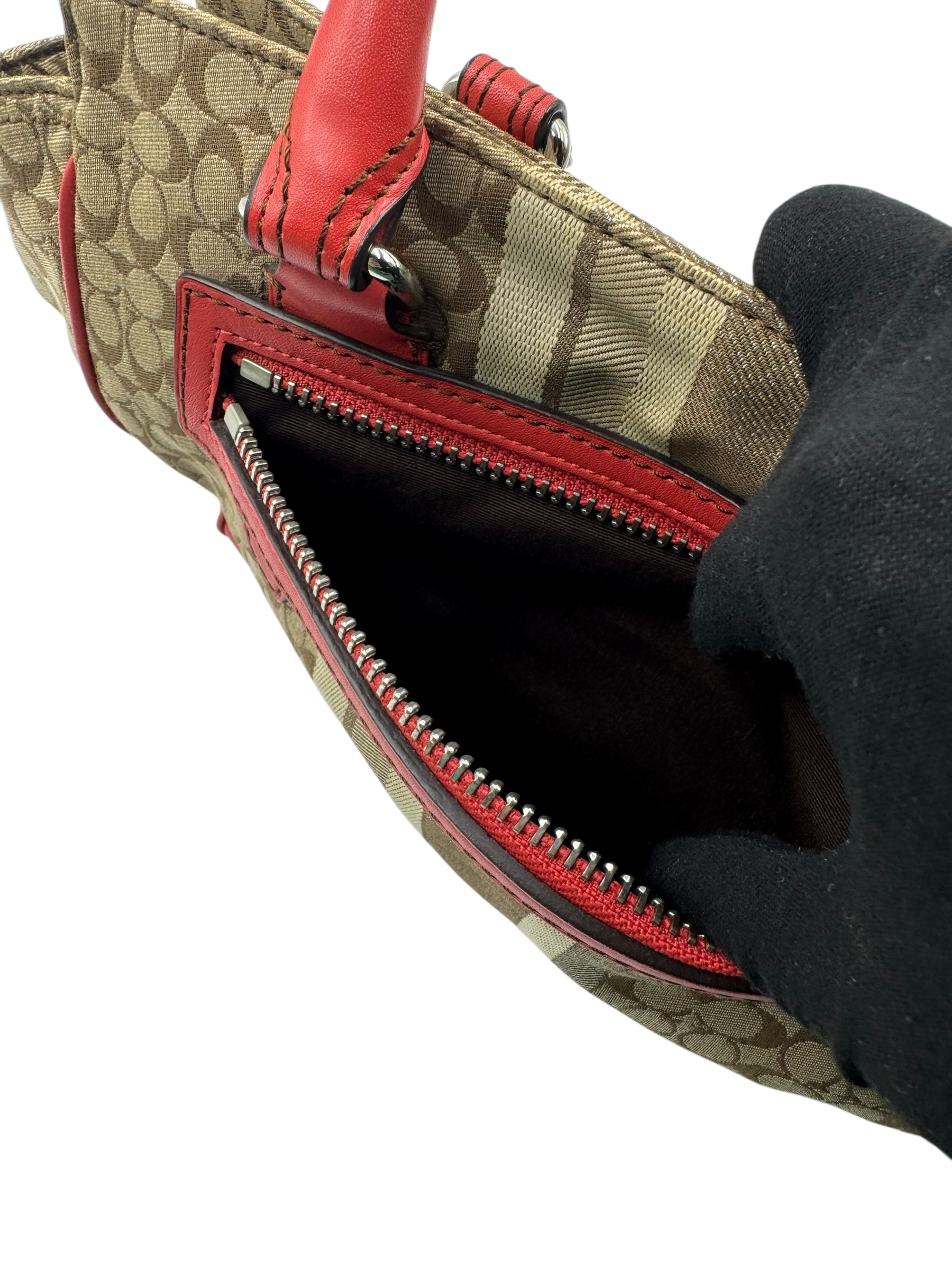 COACH SIGNATURE STRIPE RED LEATHER TOTE BAG