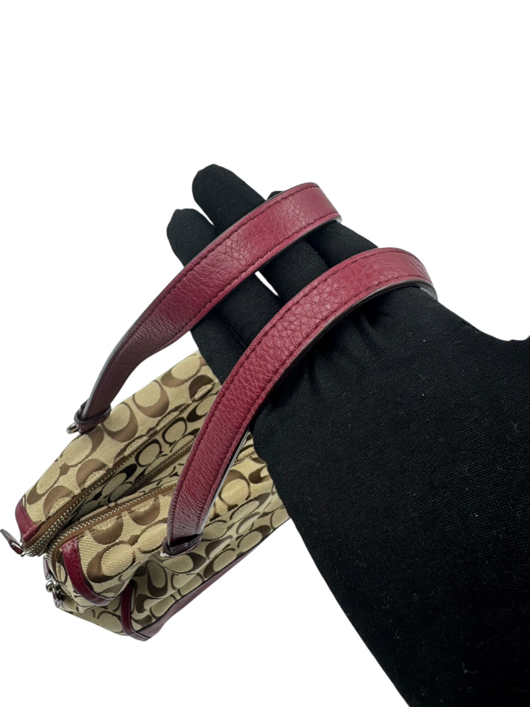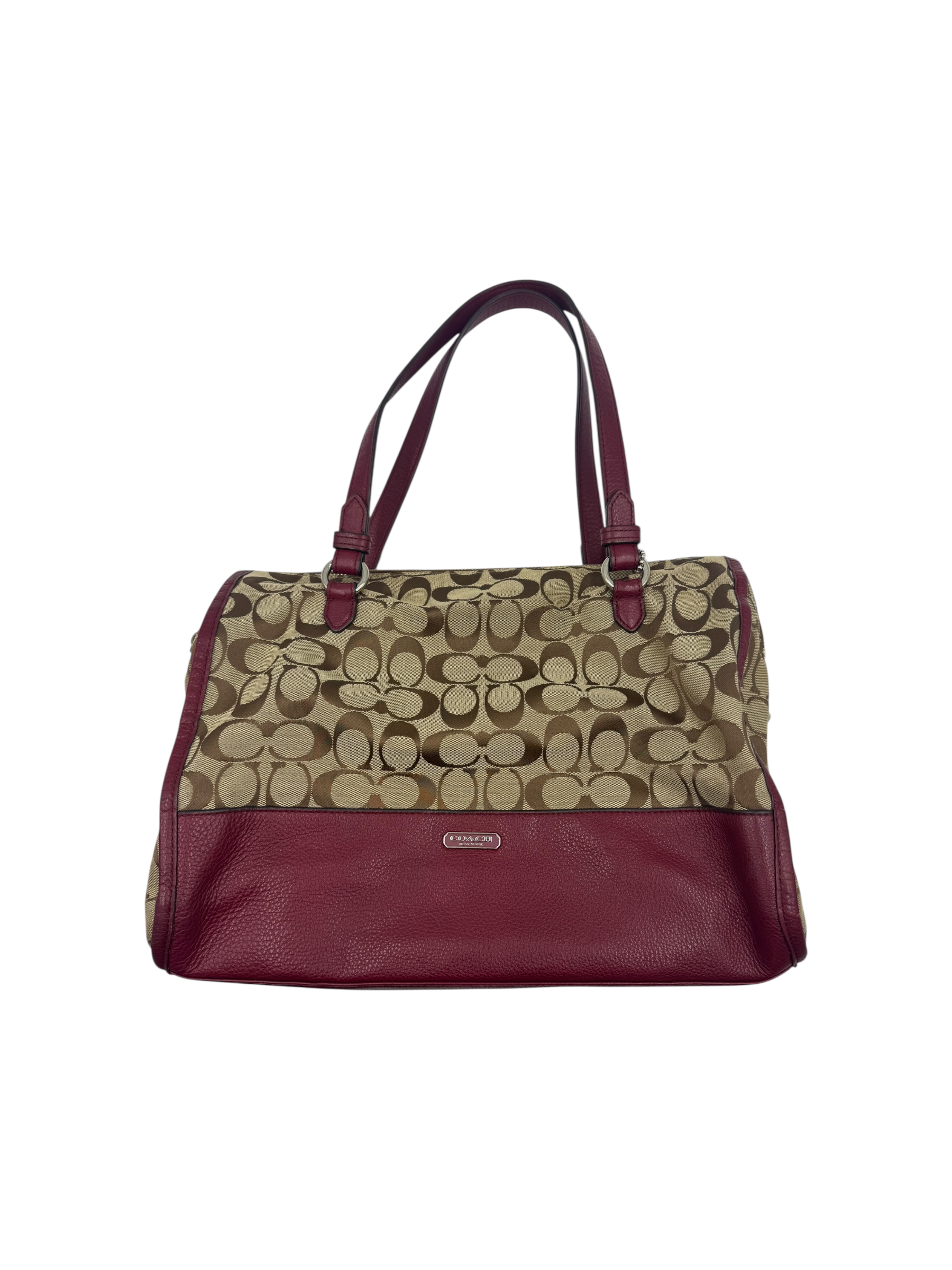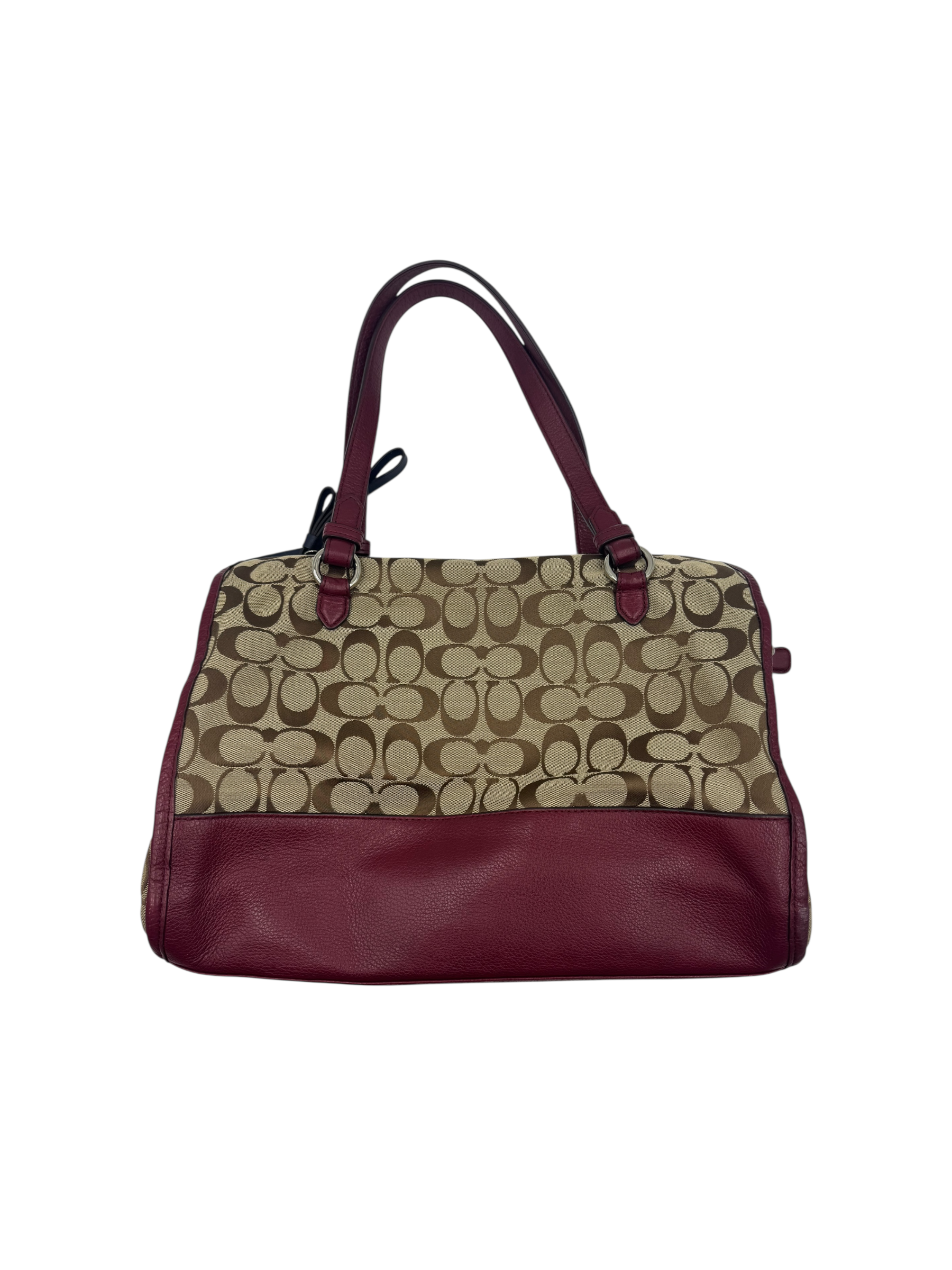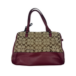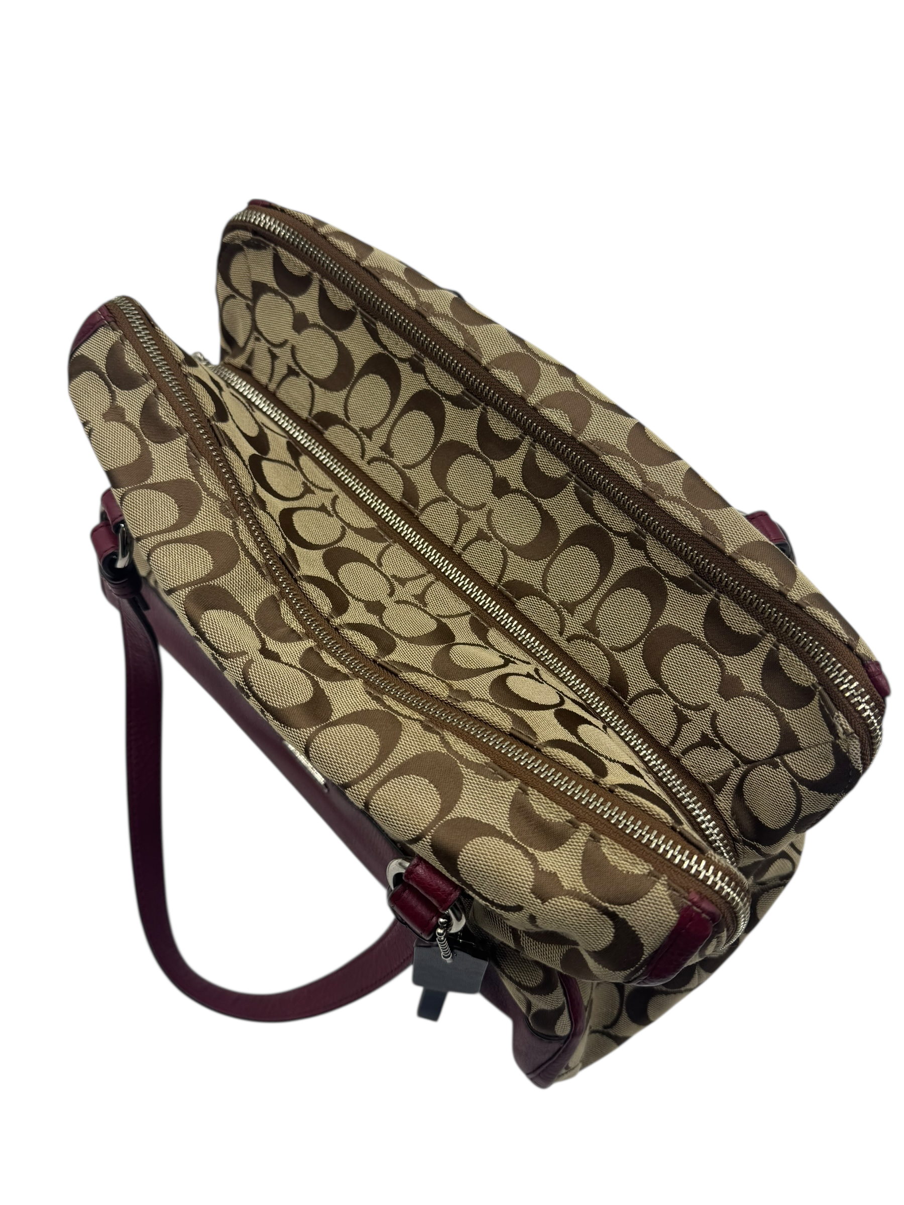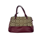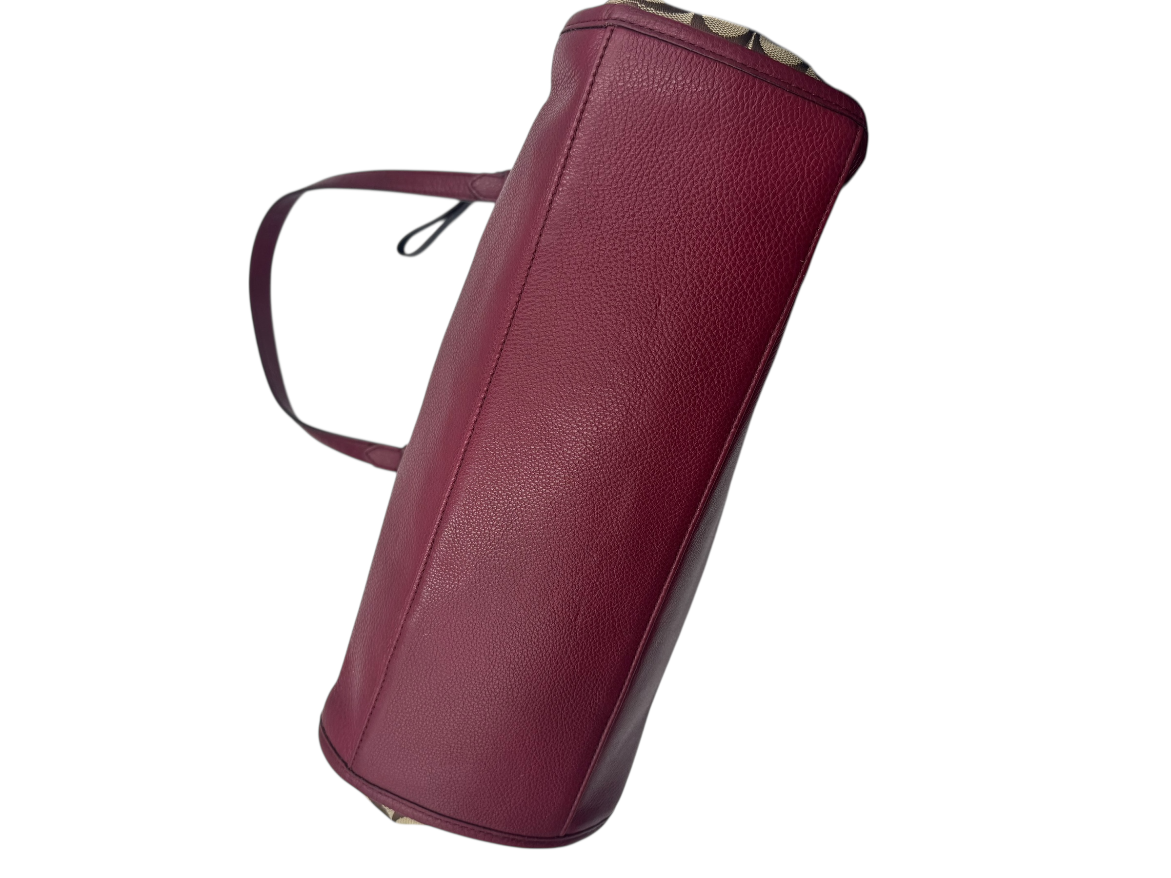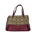 COACH SIGNATURE CANVAS BURGUNDY LEATHER TOTE BAG