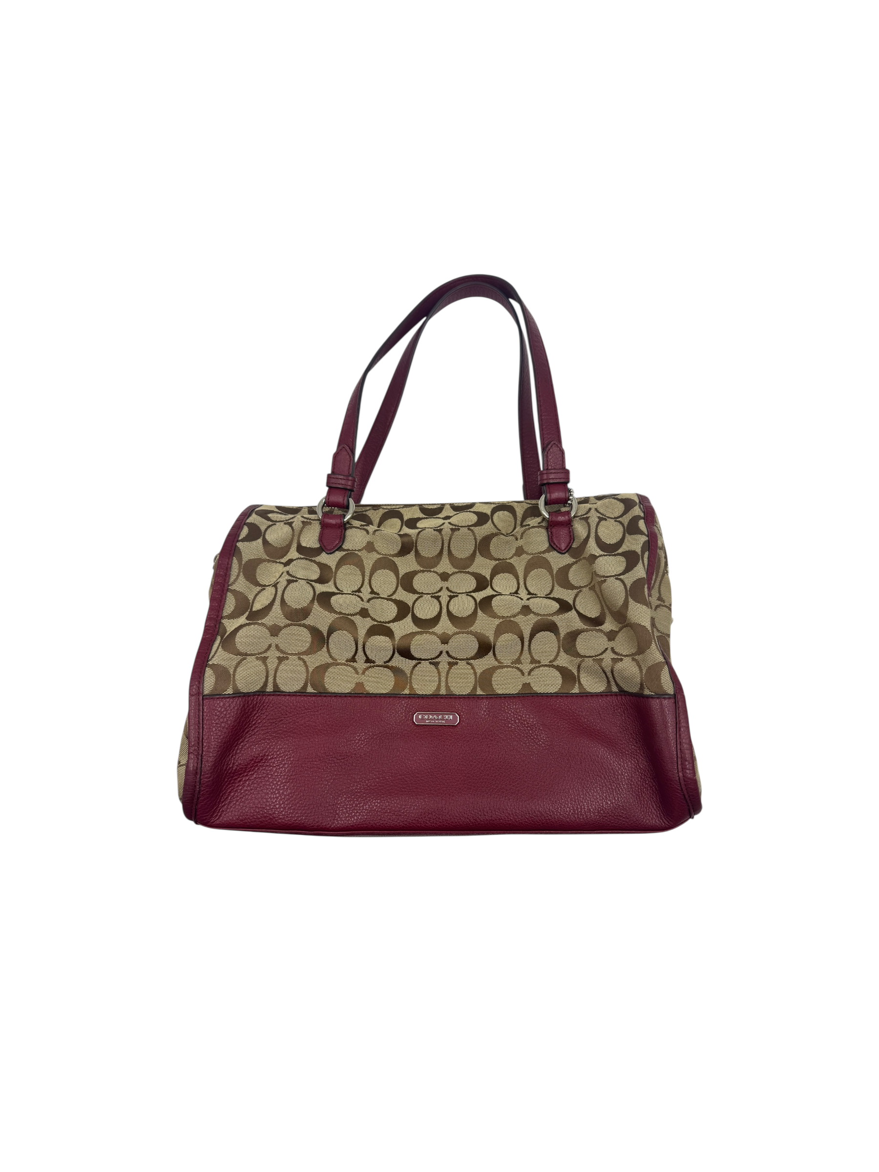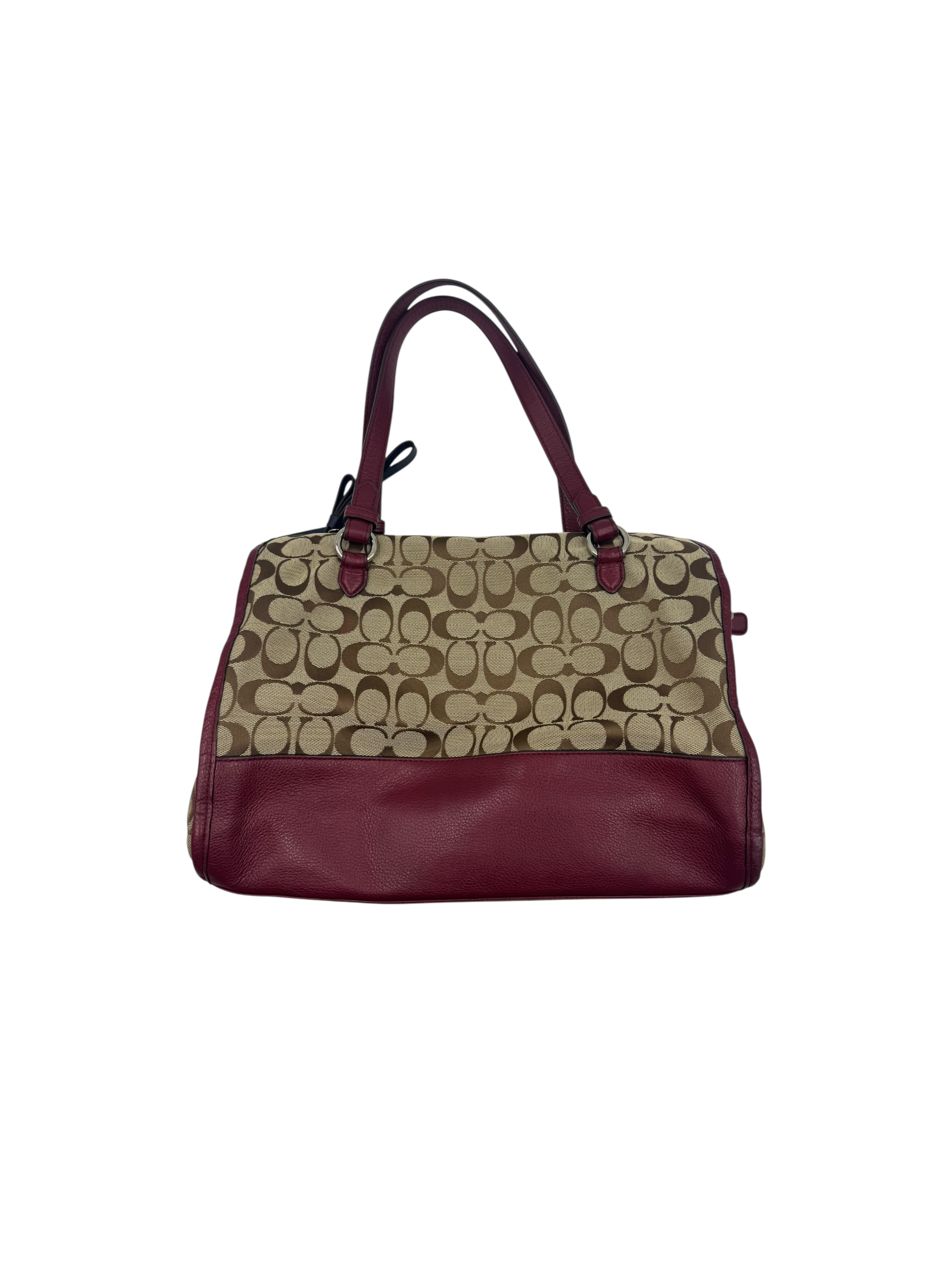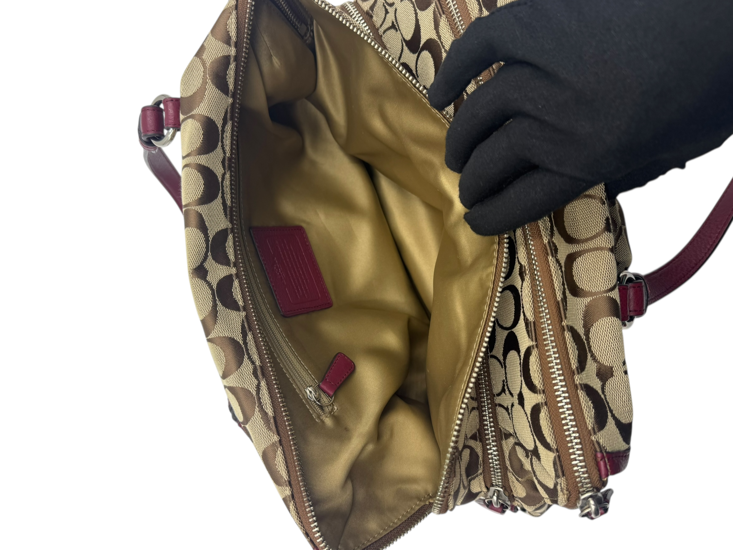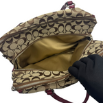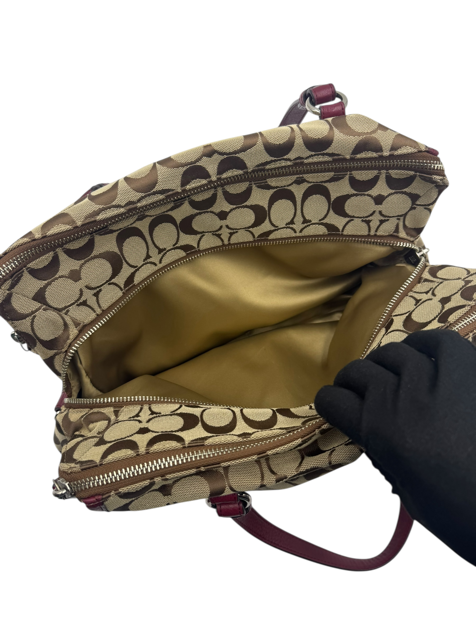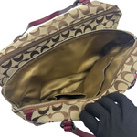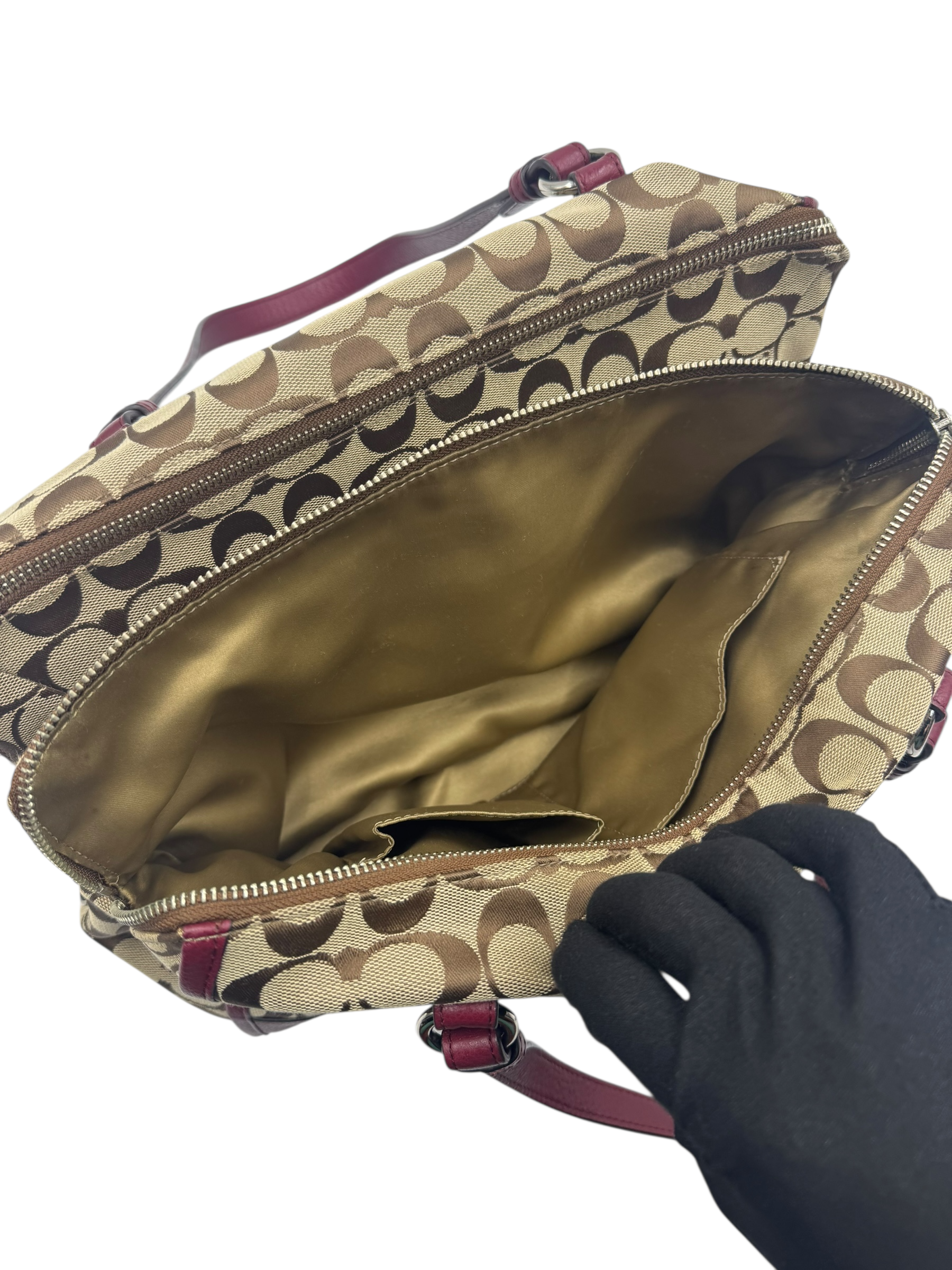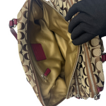 COACH SIGNATURE CANVAS BURGUNDY LEATHER TOTE BAG