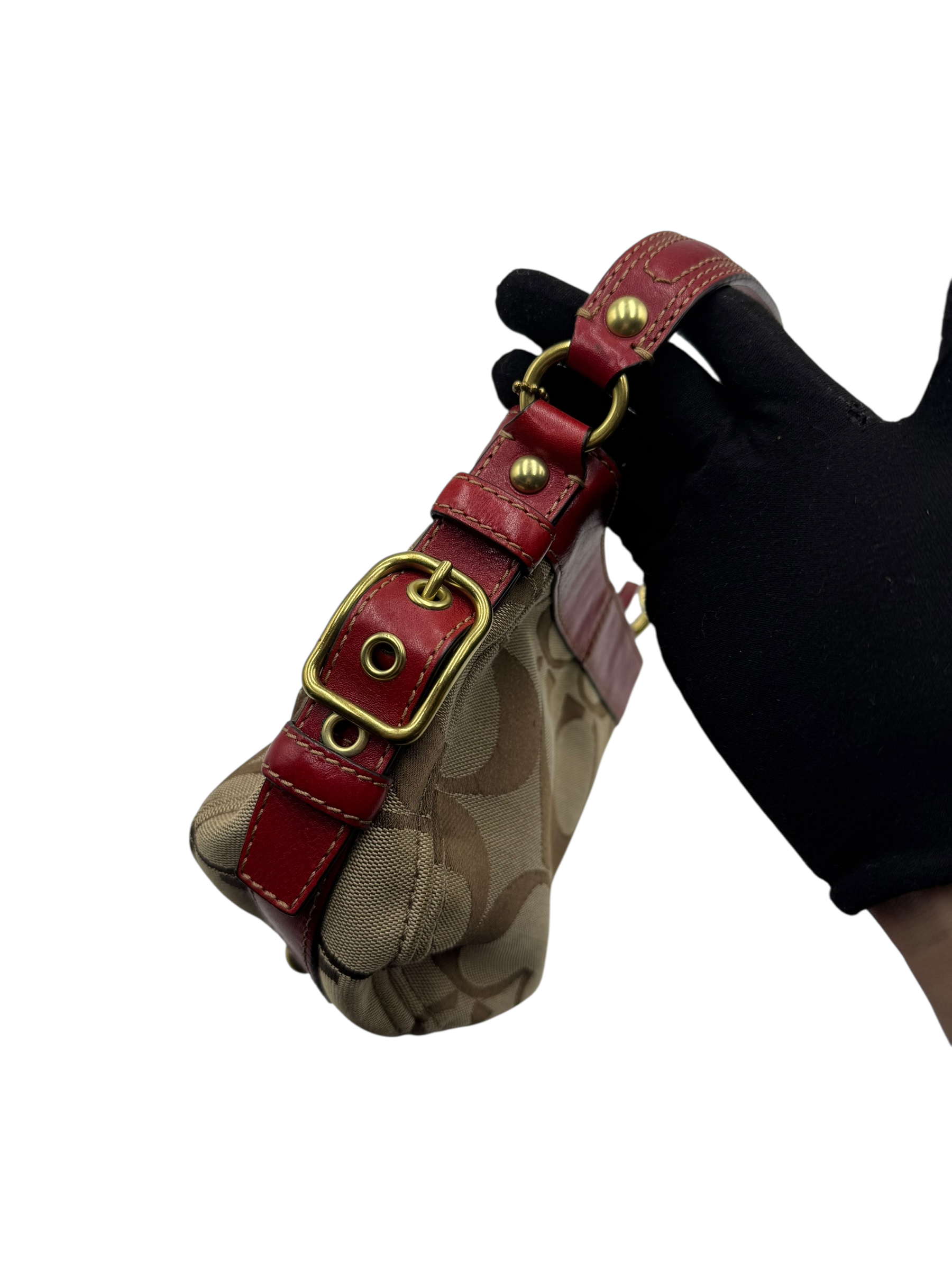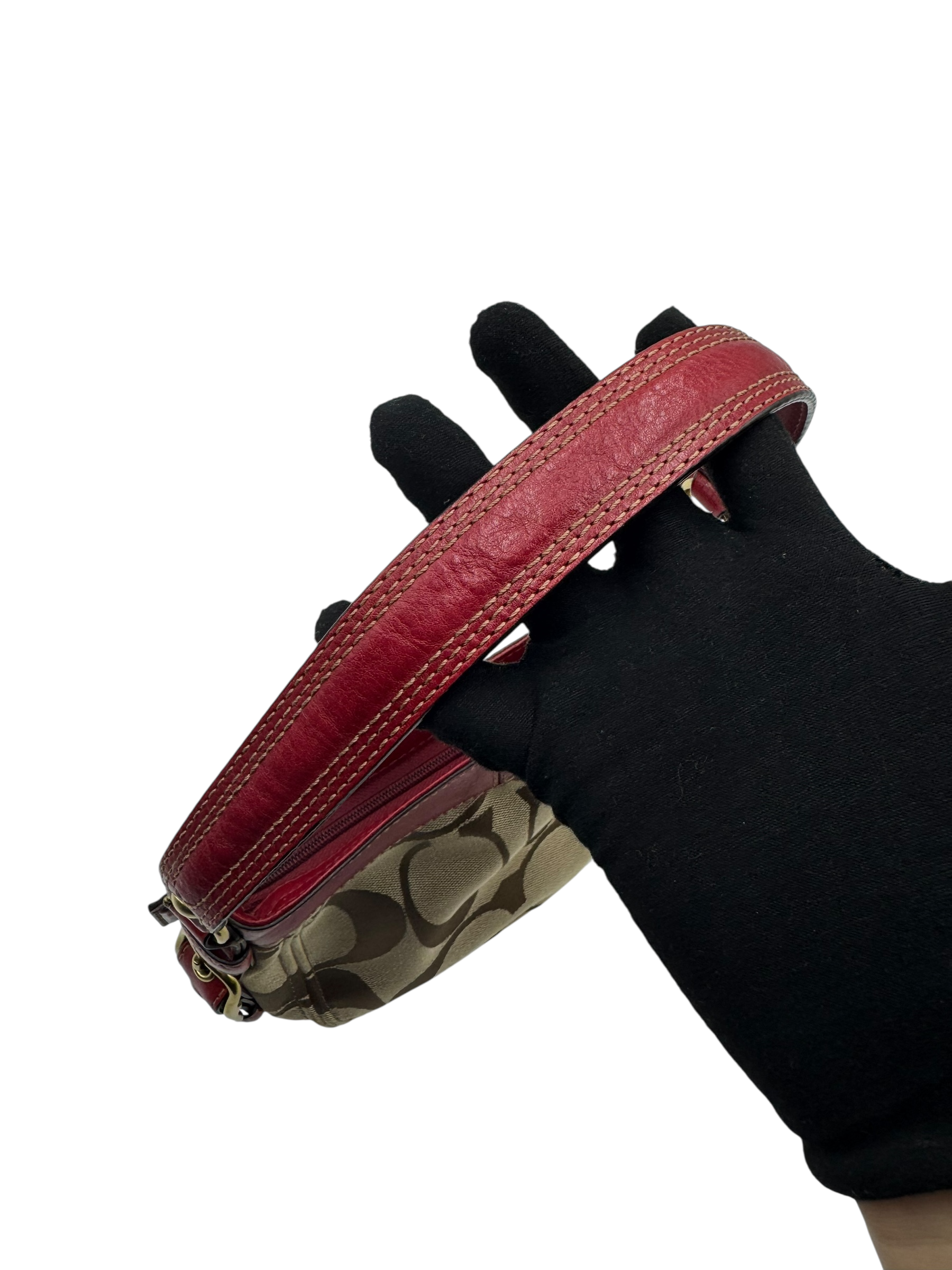 COACH MINI ZOE SIGNATURE C AND RED LEATHER BAG