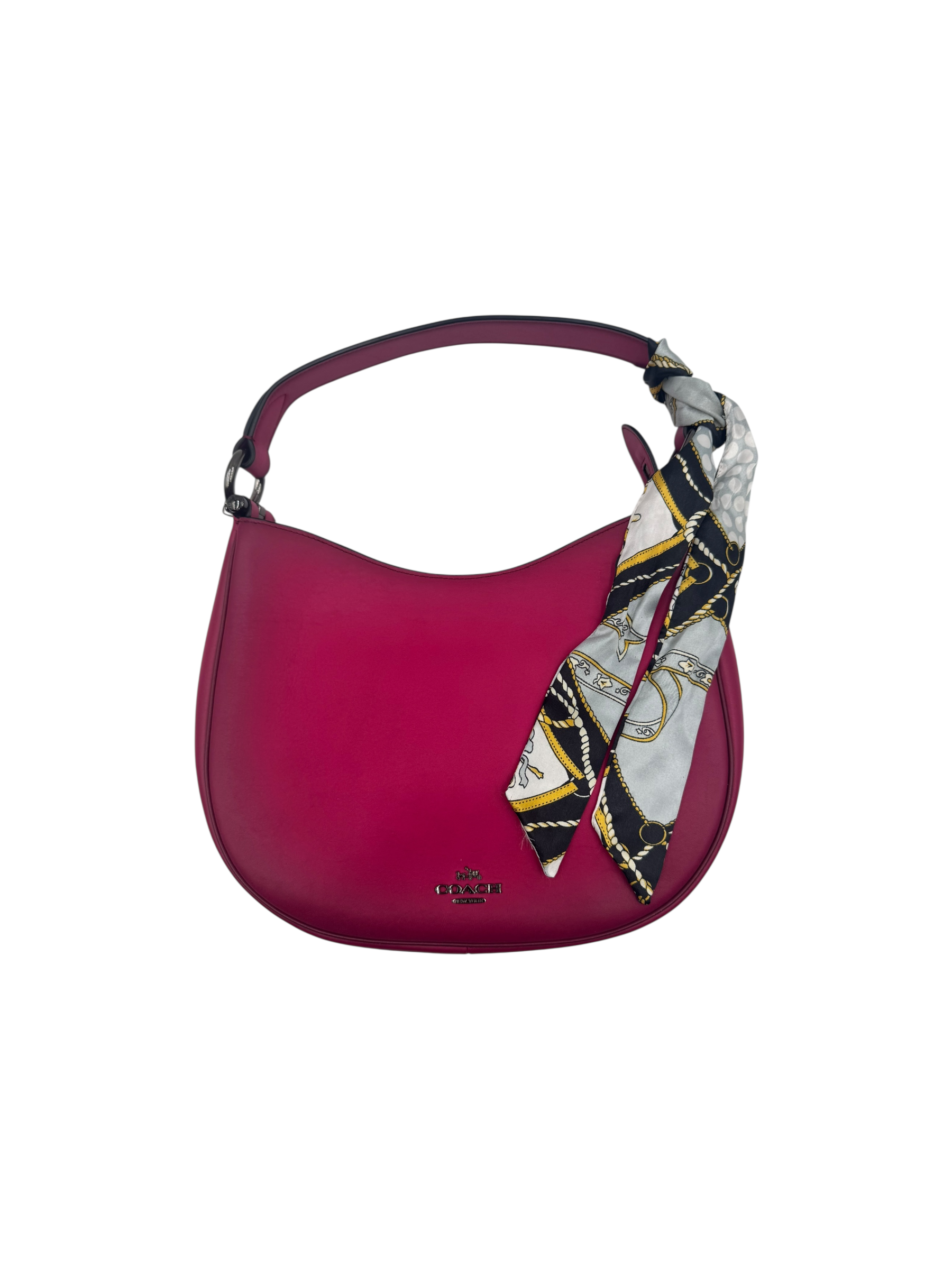 COACH MAGENTA LEATHER HOBO BAG WITH SCARF