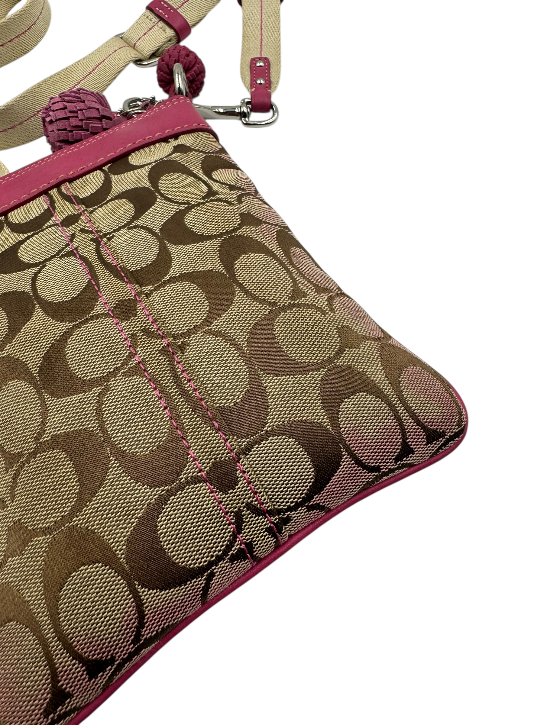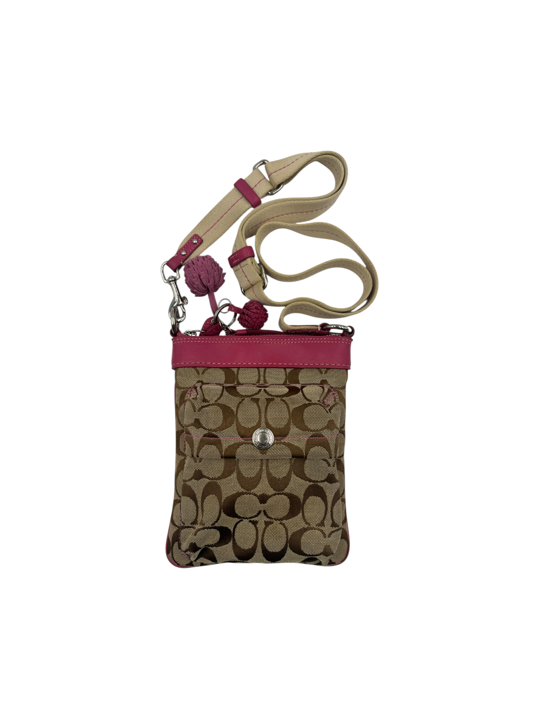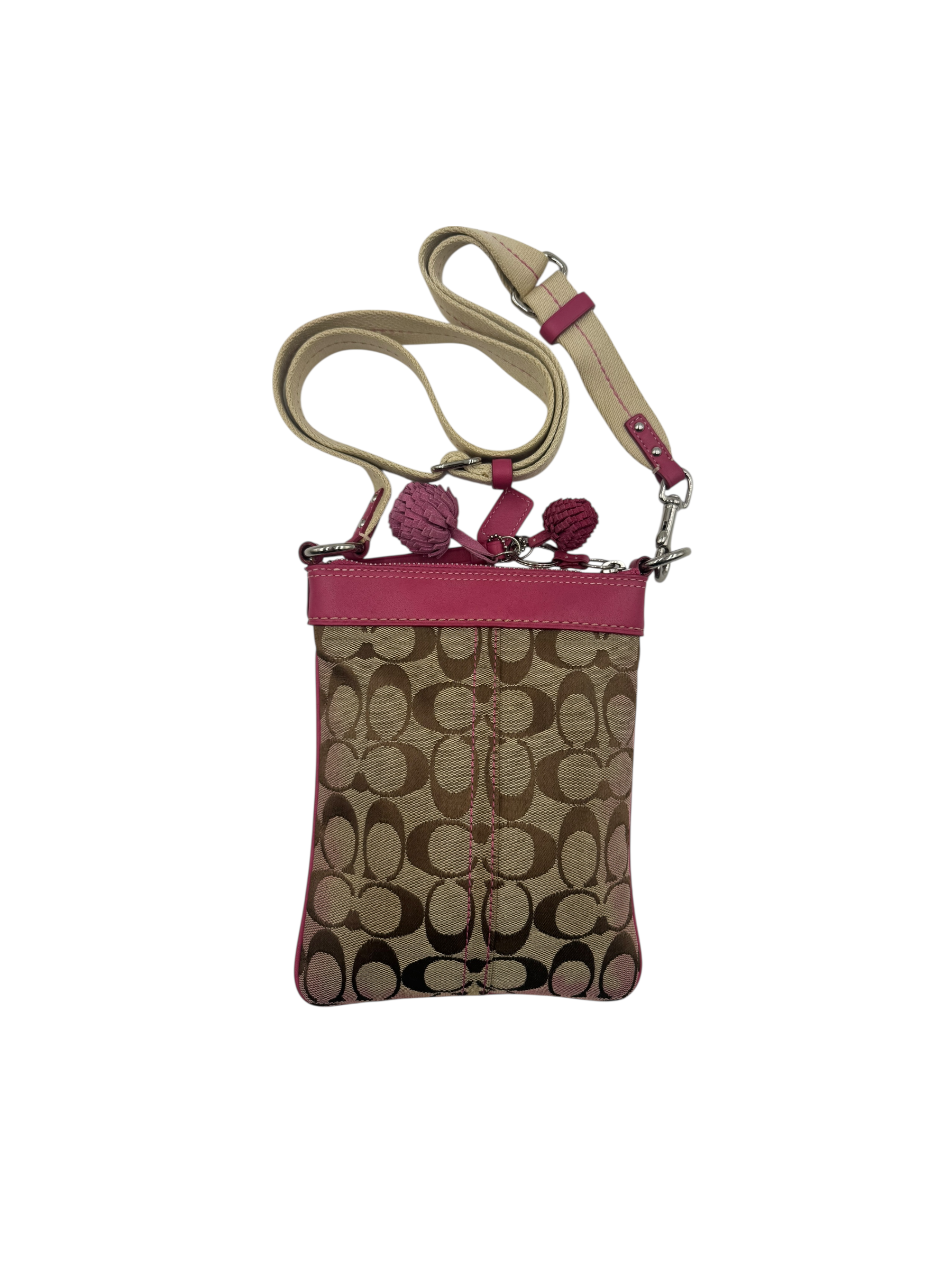 COACH SIGNATURE KHAKI & PINK CROSSBODY BAG