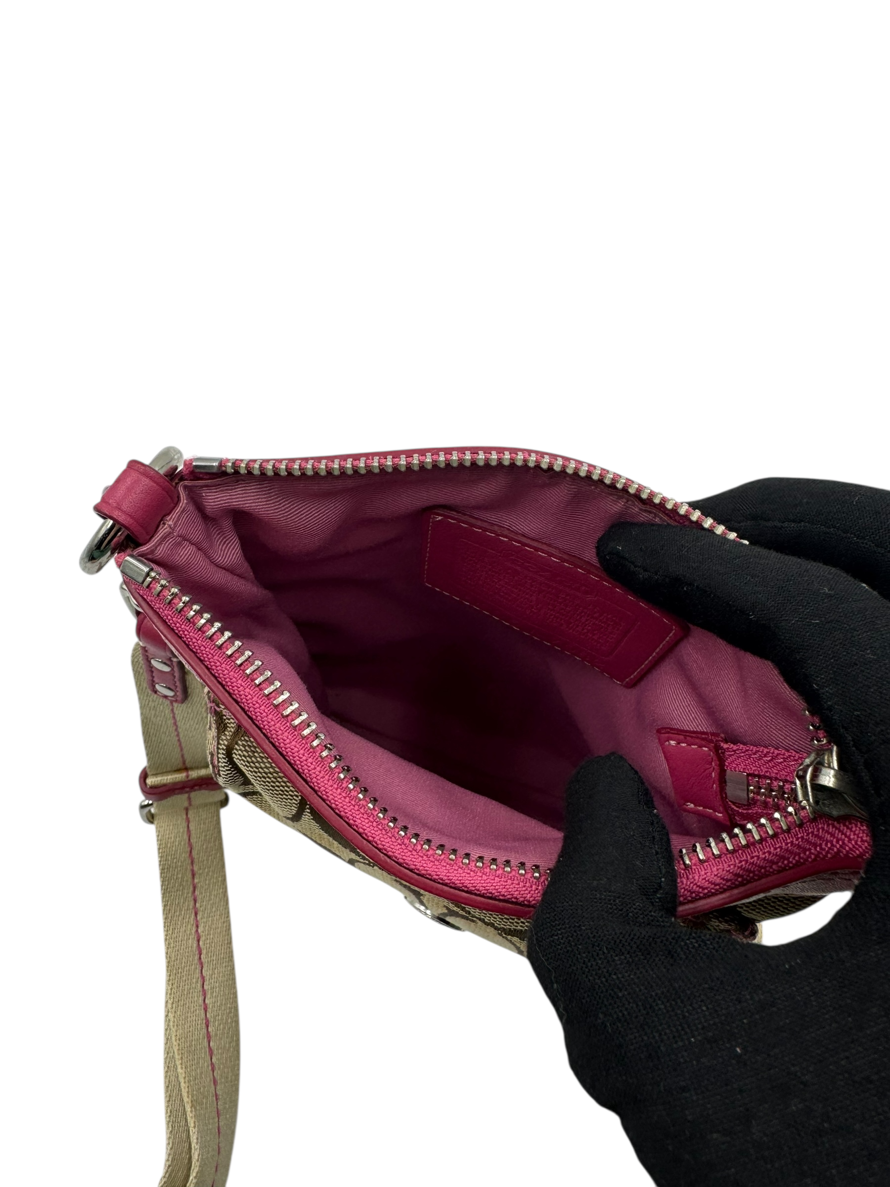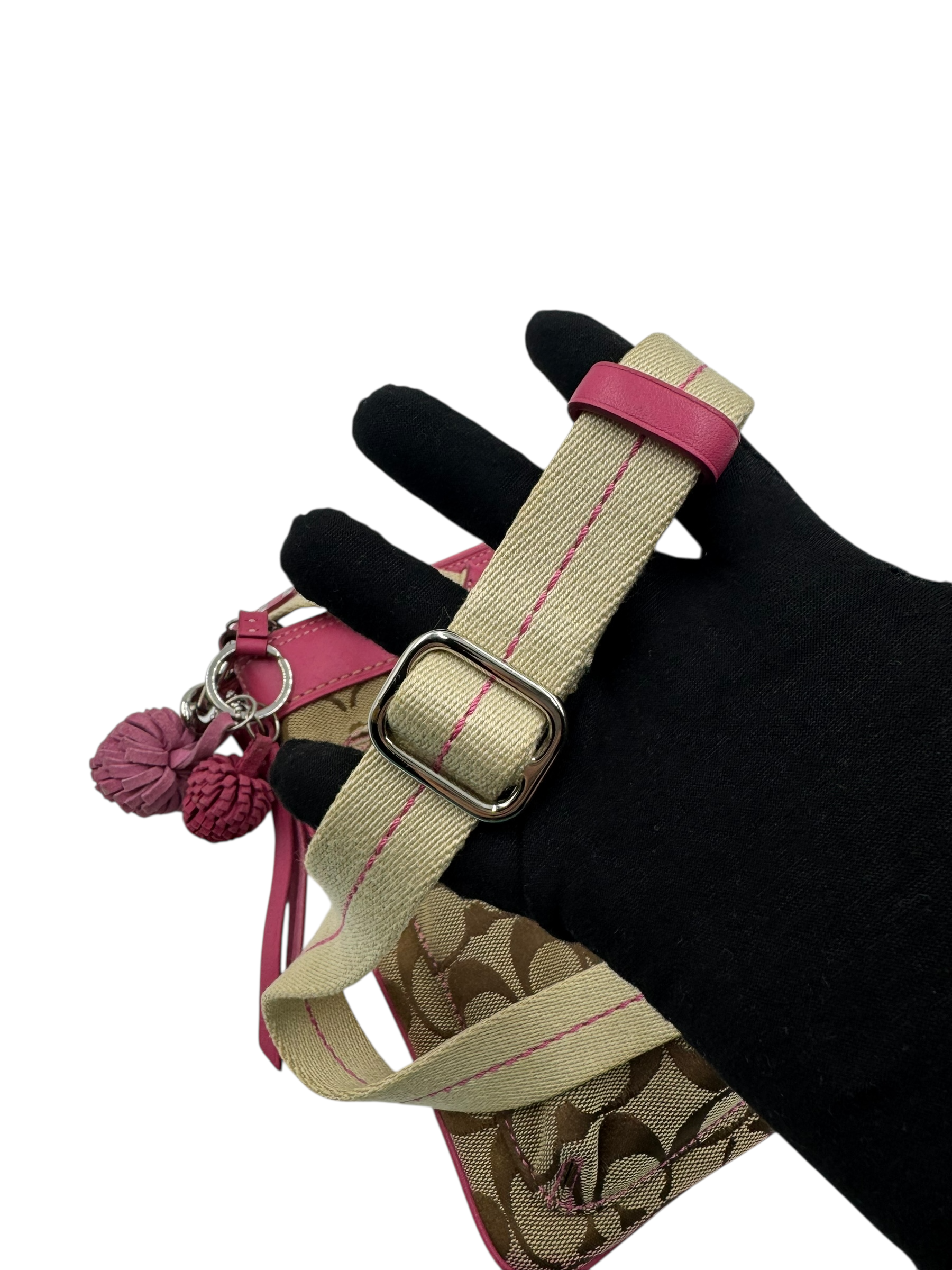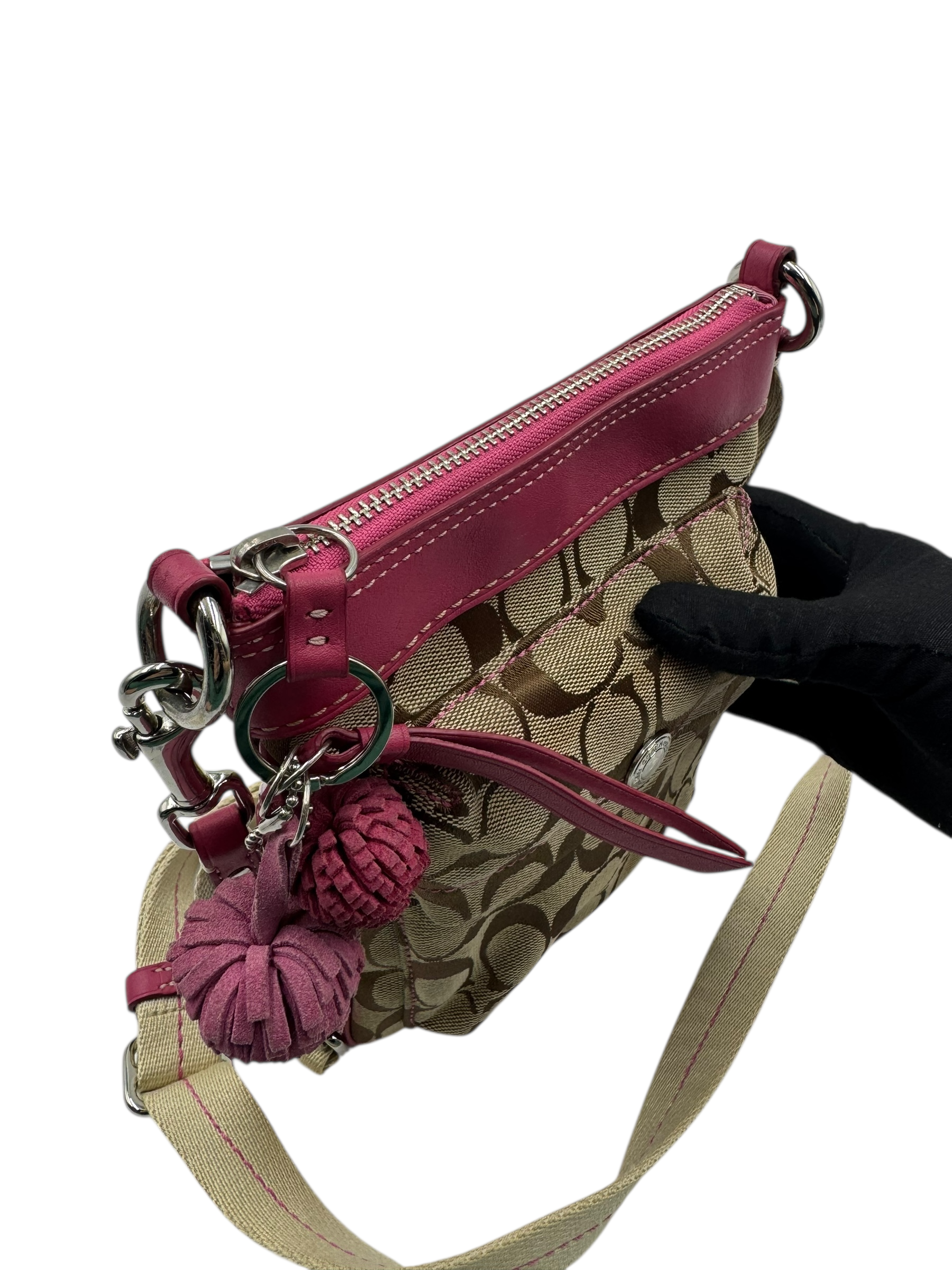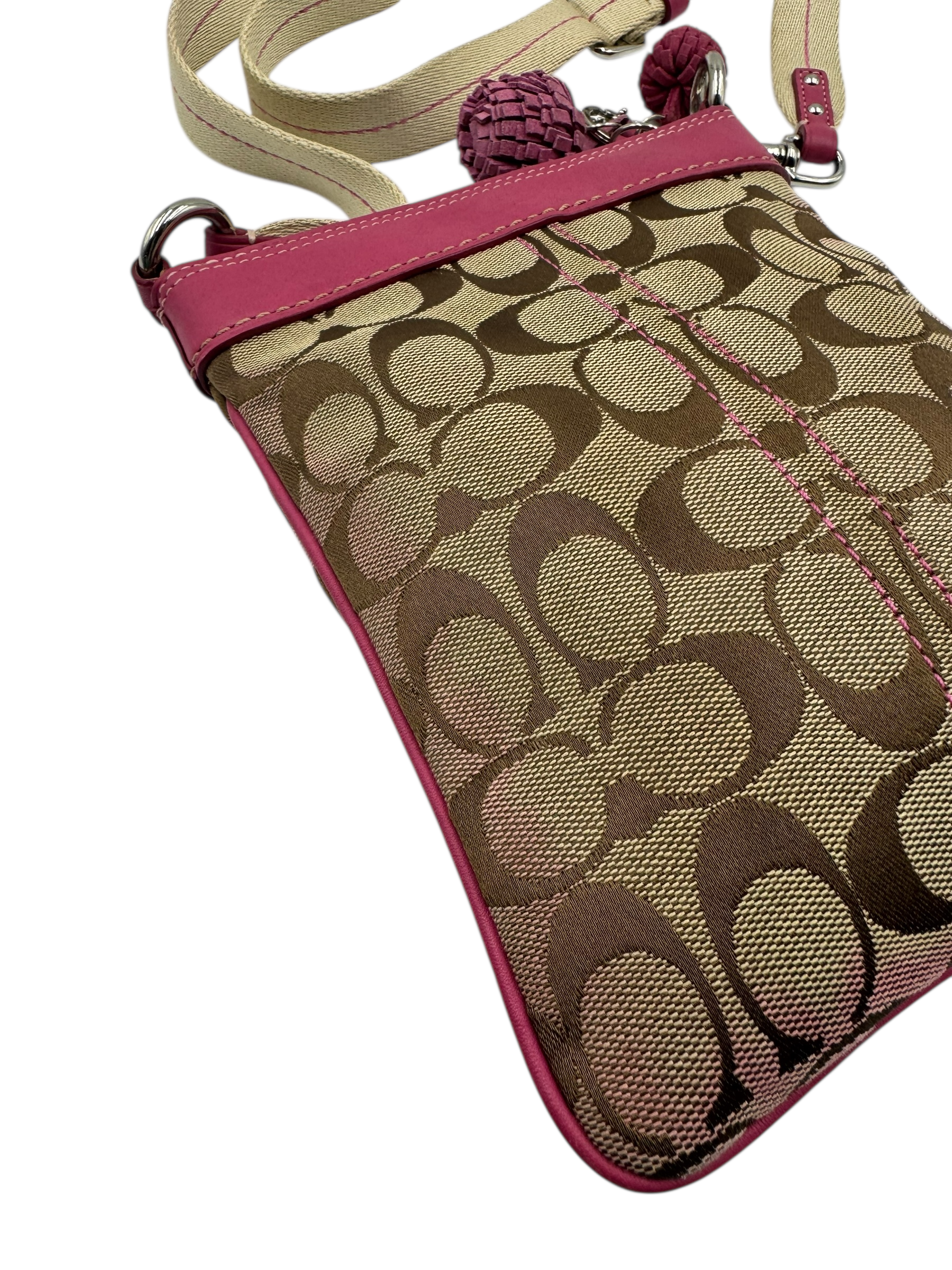 COACH SIGNATURE KHAKI & PINK CROSSBODY BAG