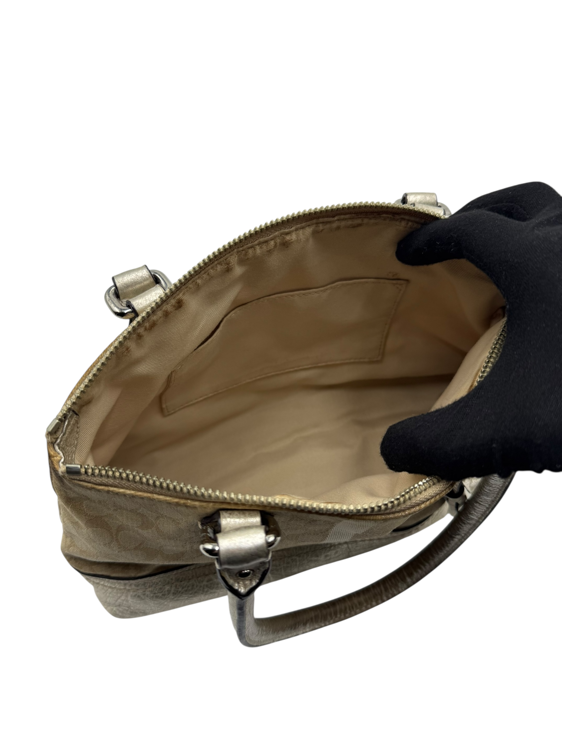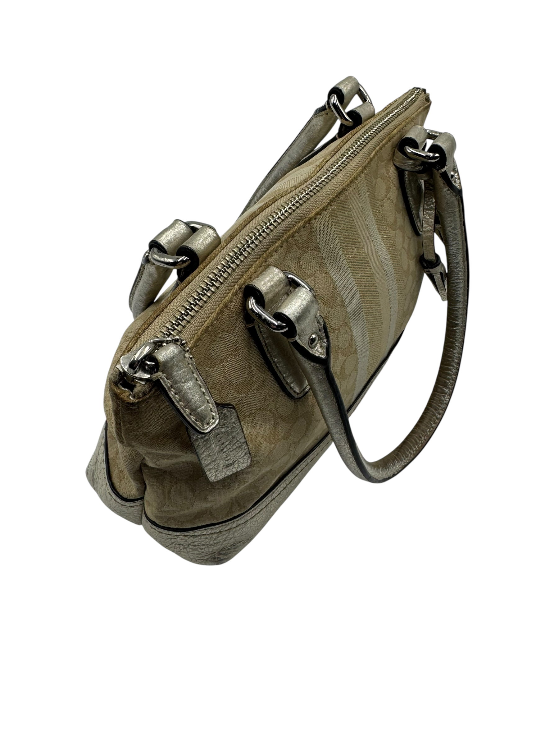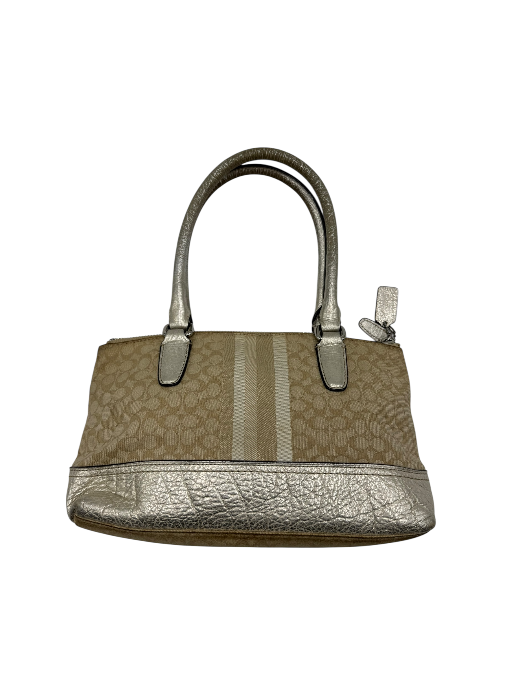 COACH SIGNATURE STRIPE TRIM HAND BAG