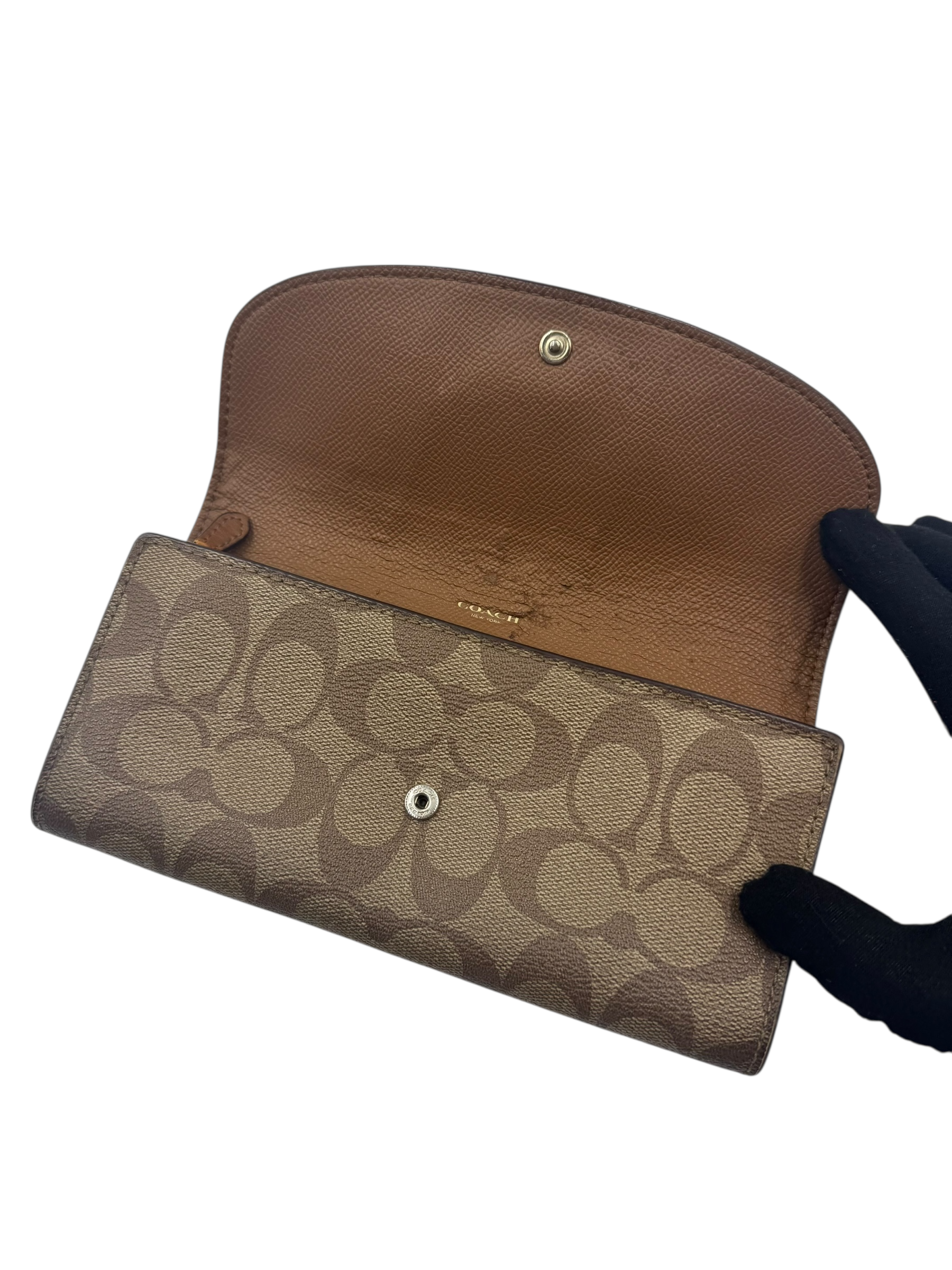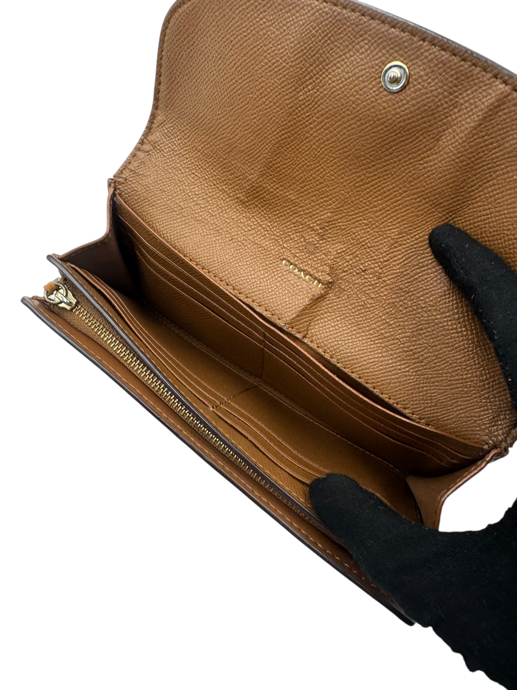 COACH BROWN LEATHER FLAP WALLET