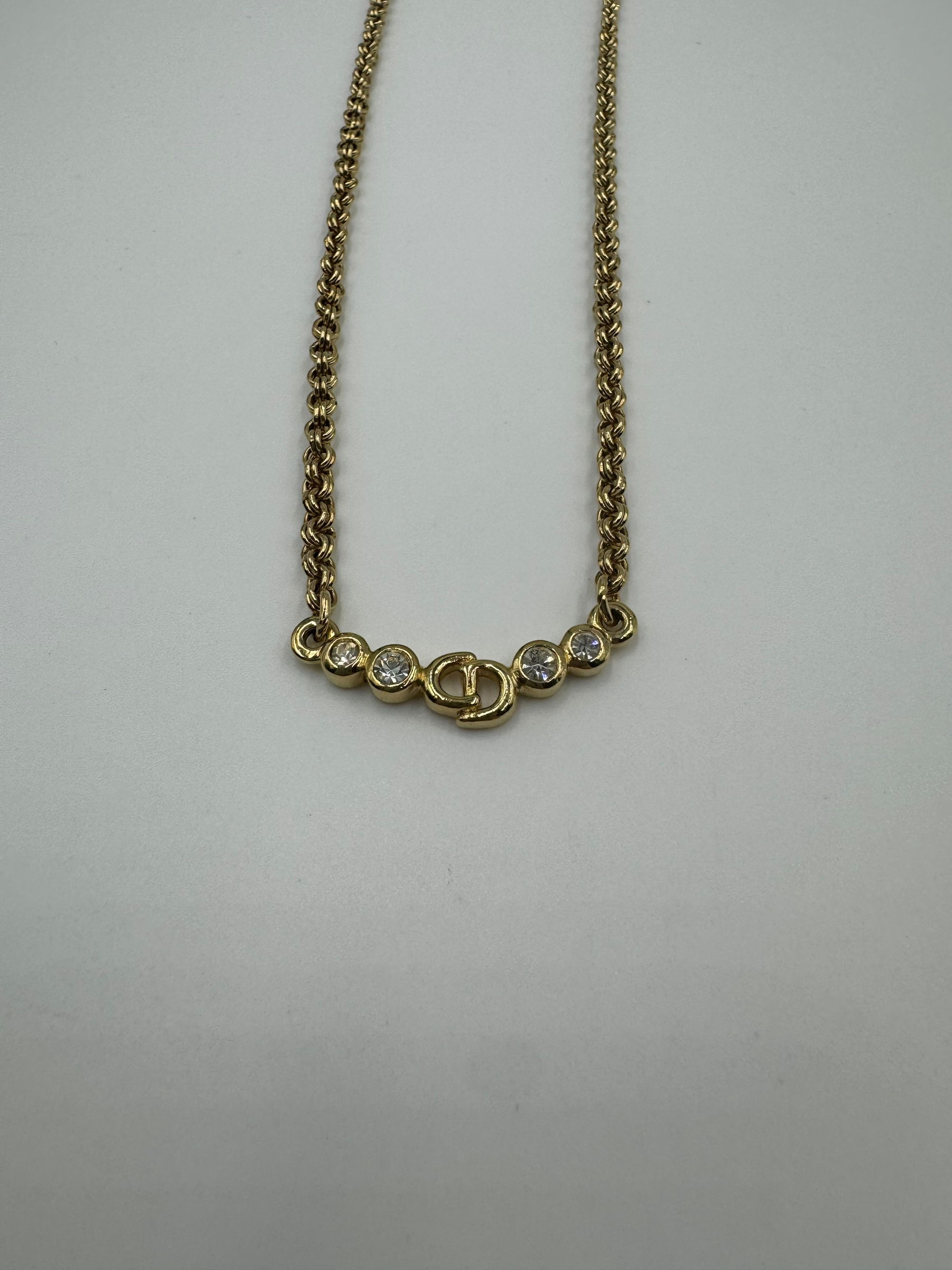 DIOR MINI CD CRYSTAL GOLD NECKLACE