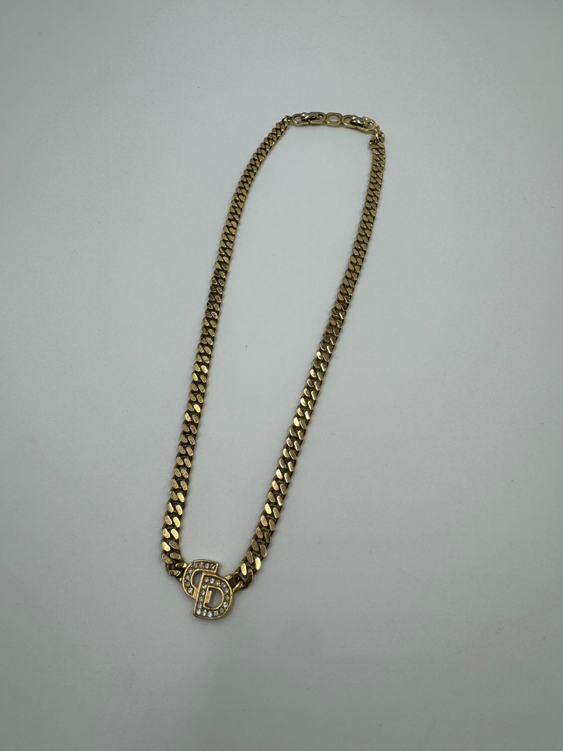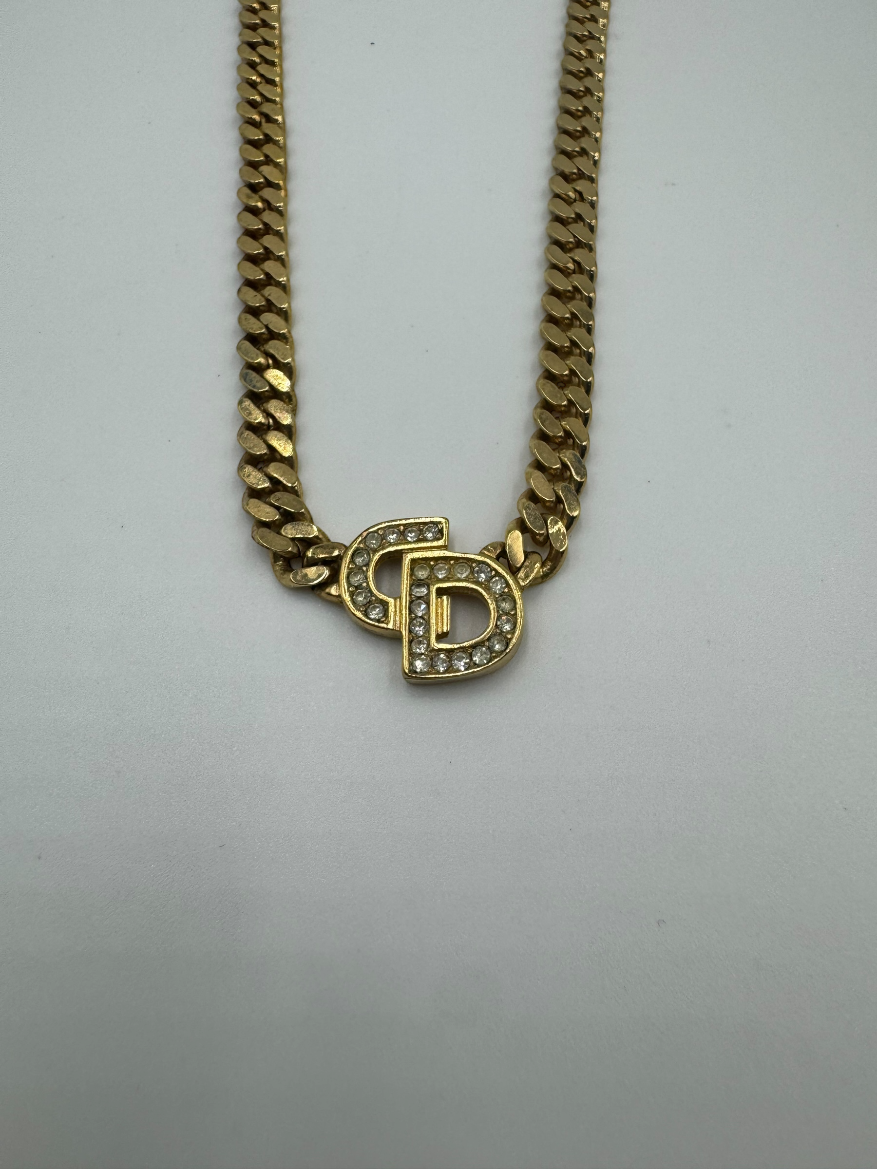 DIOR CD CRYSTAL THICK GOLD NECKLACE