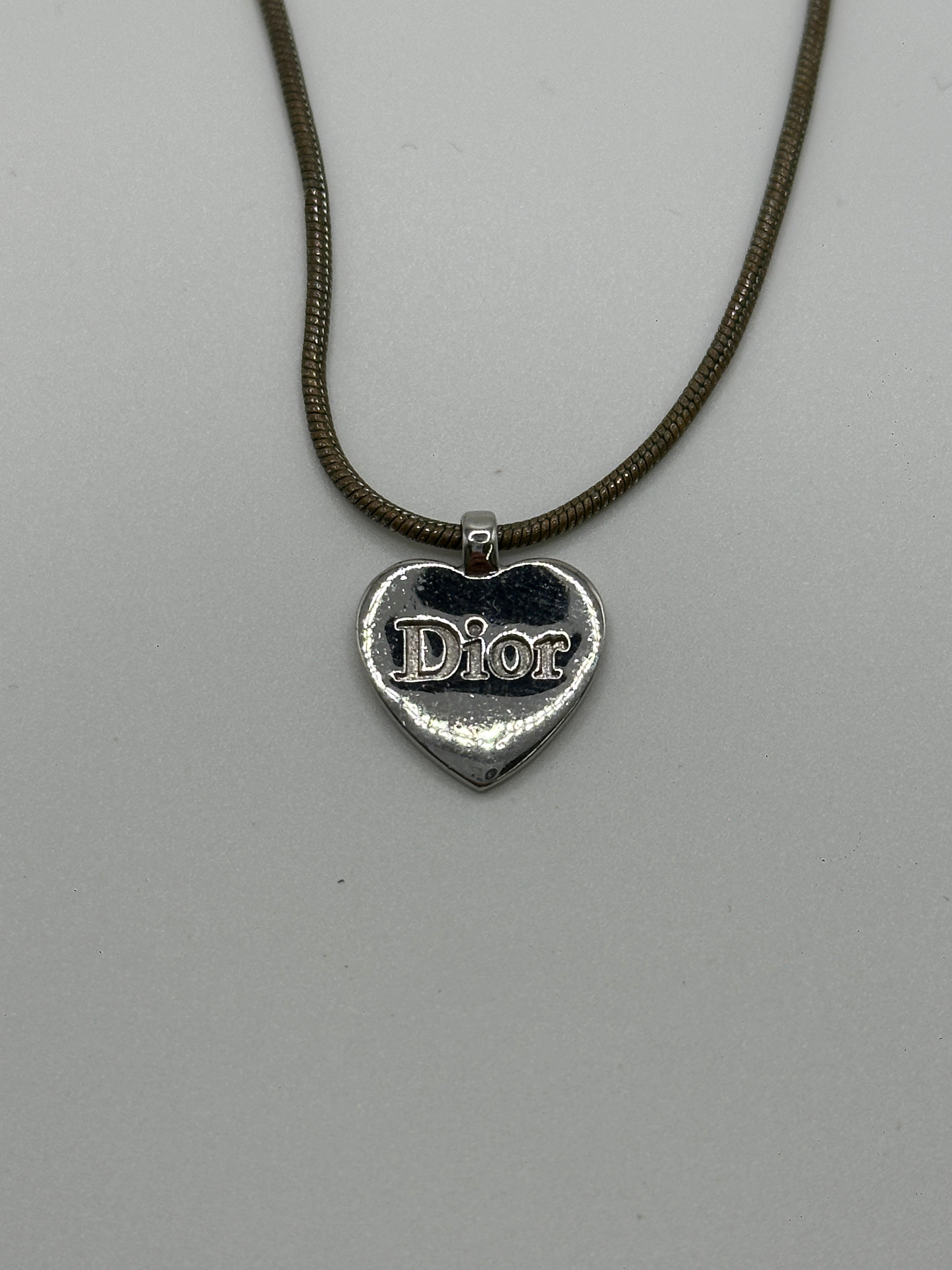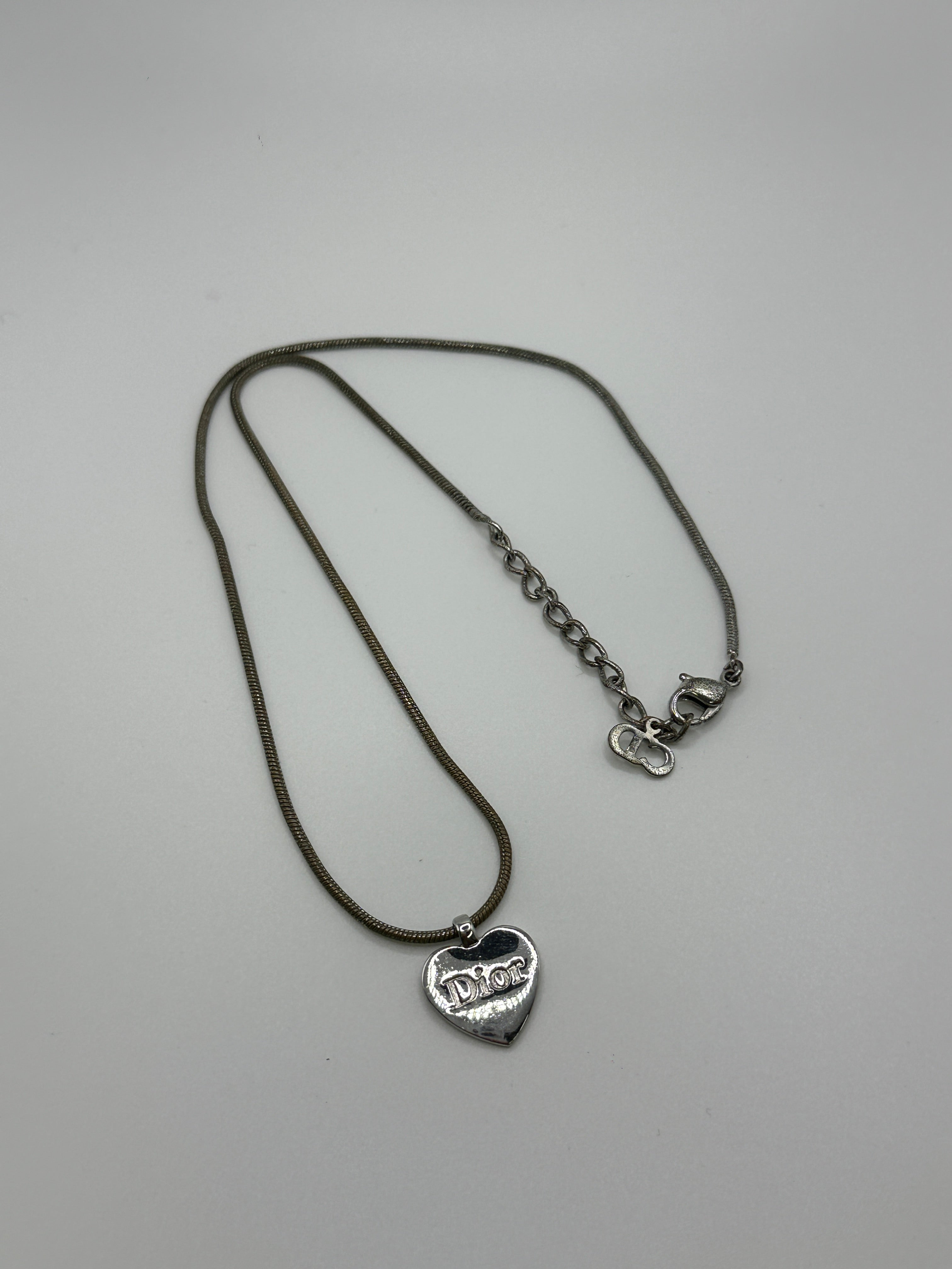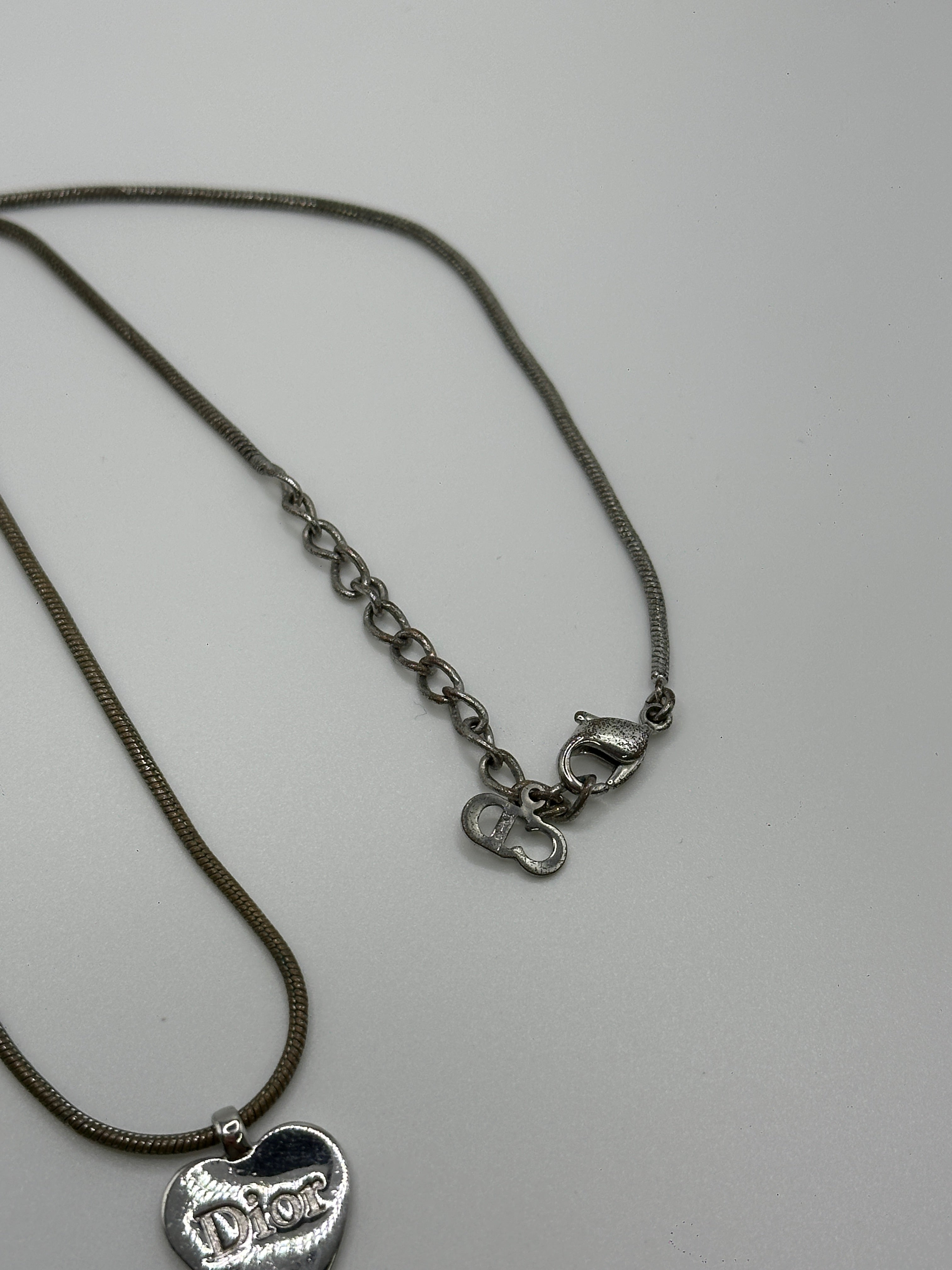 AUTHENTIC DIOR SPELLOUT SILVER HEART NECKLACE:
